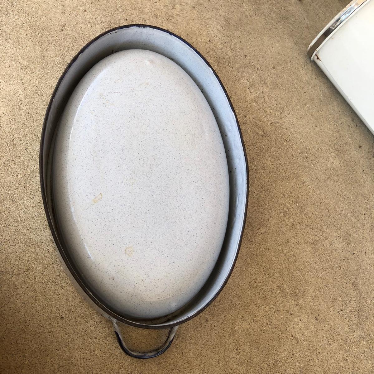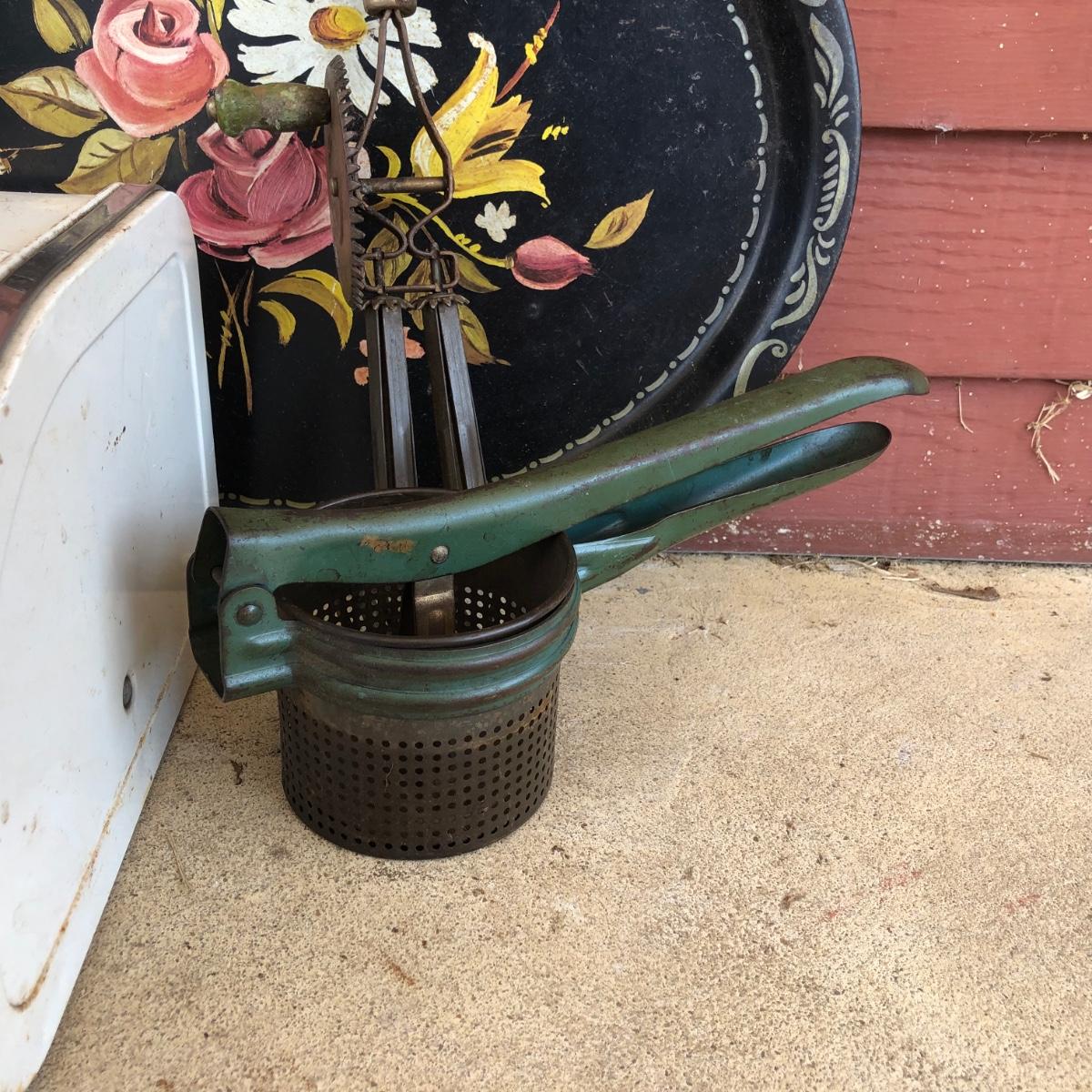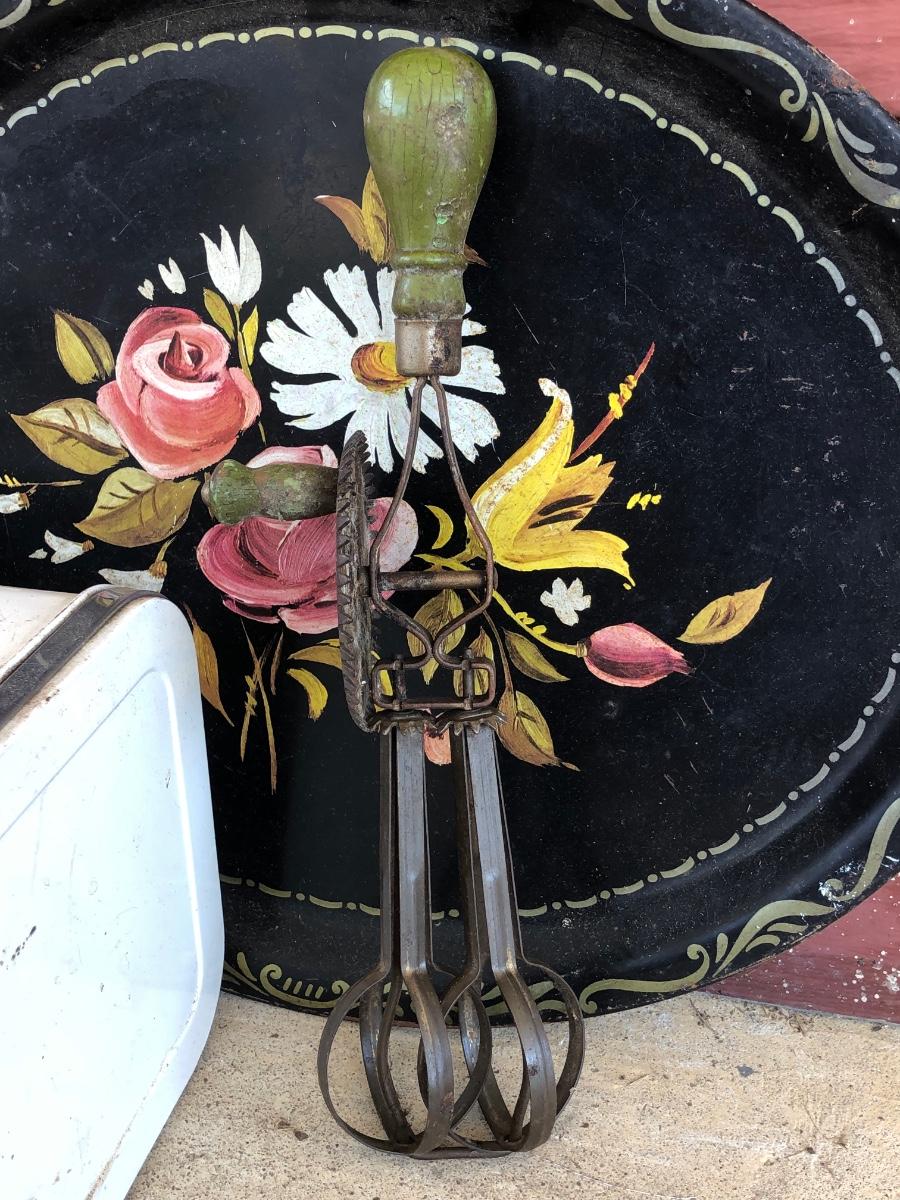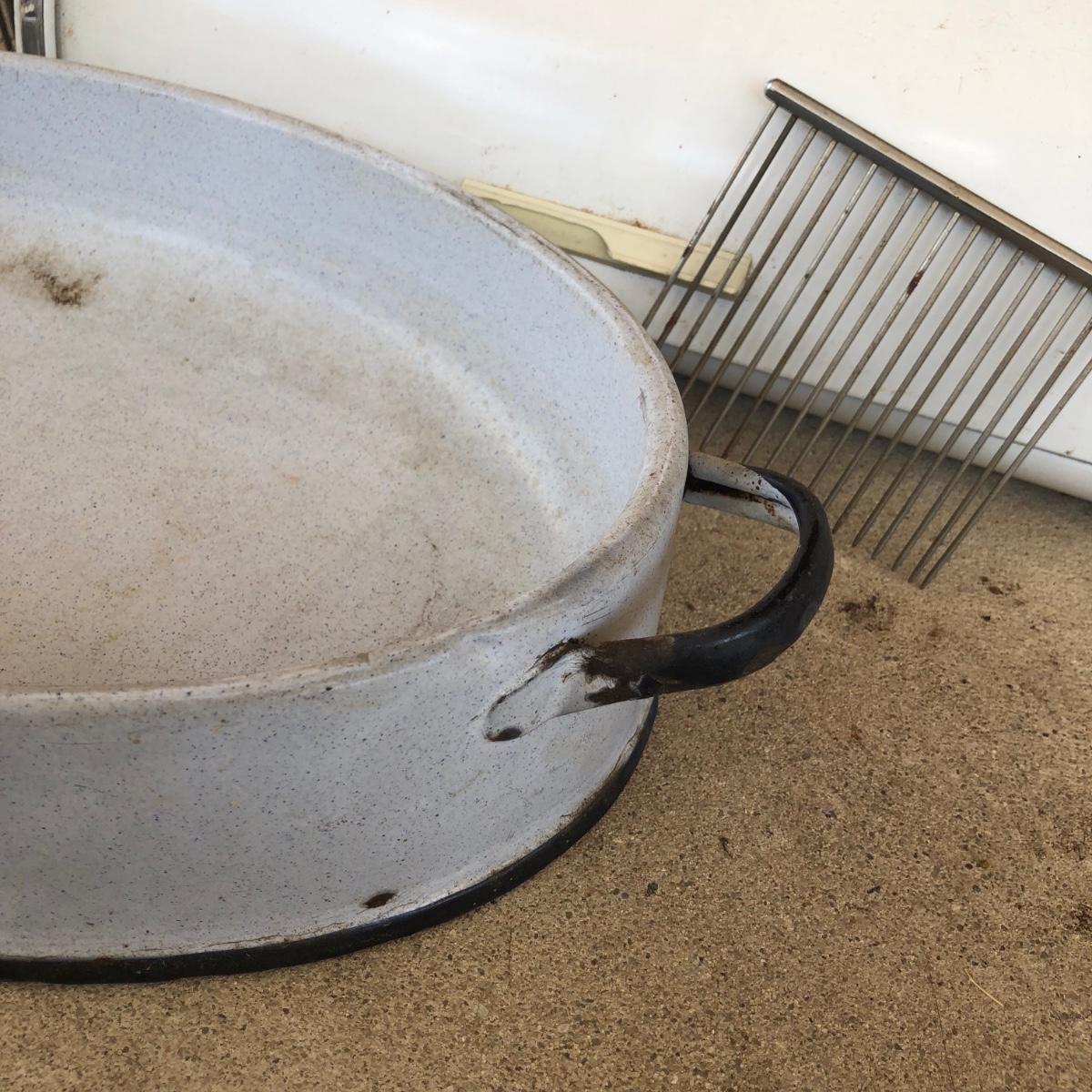 LOT 201M: Enamel "Savory" Dish, Bread Box, Collander, Kitchen Tools & More