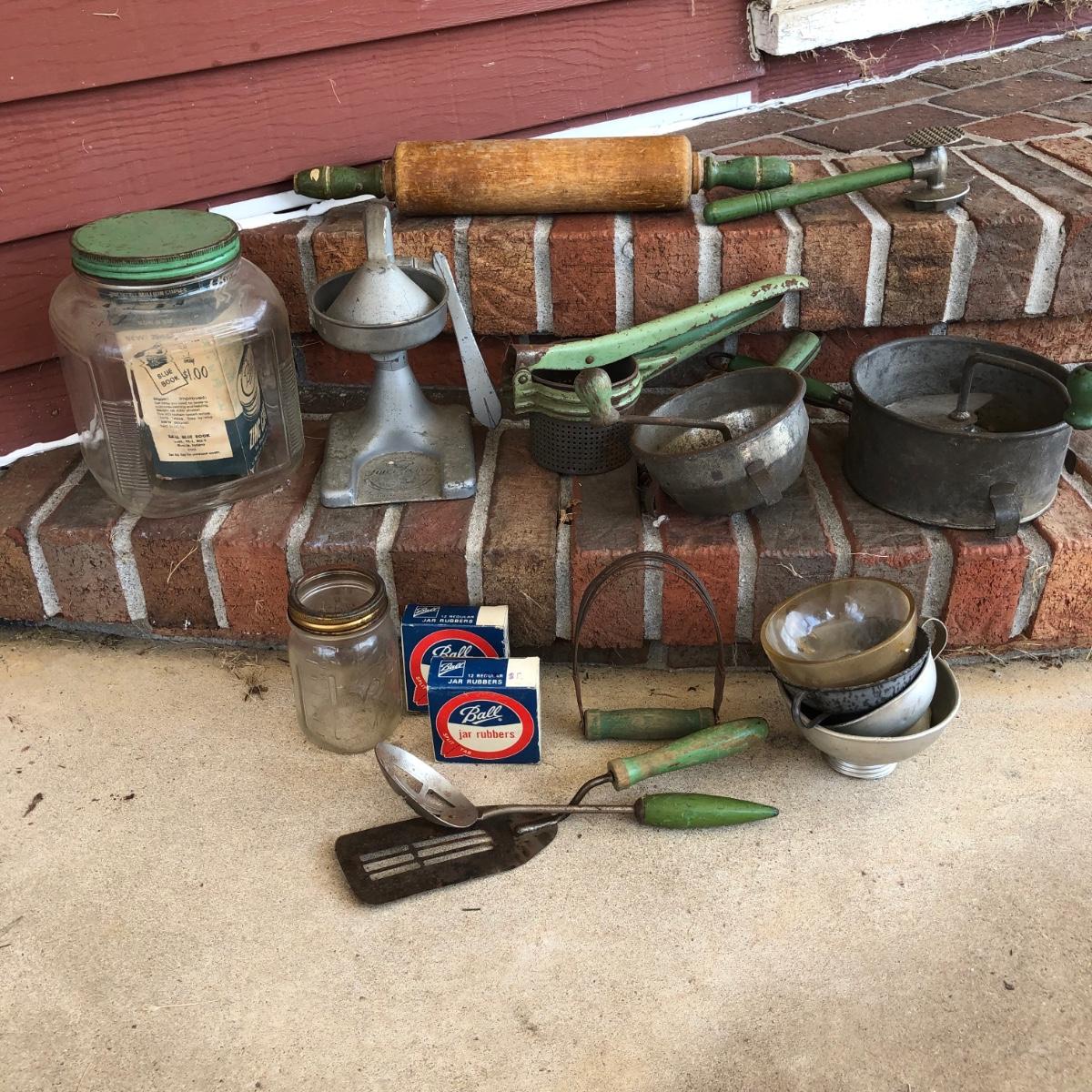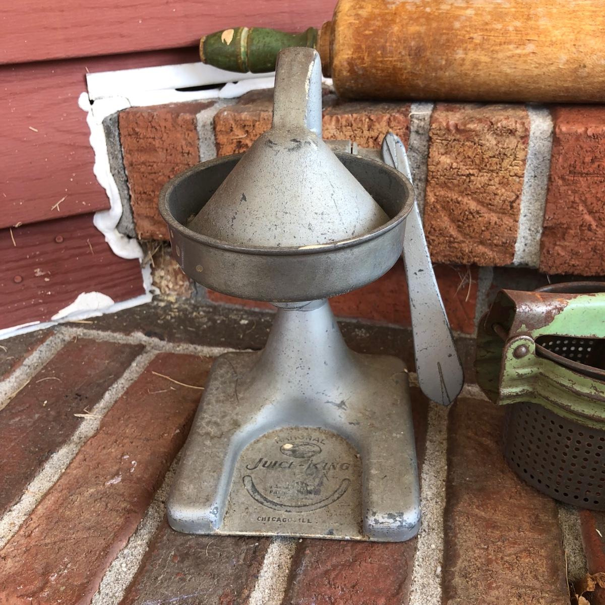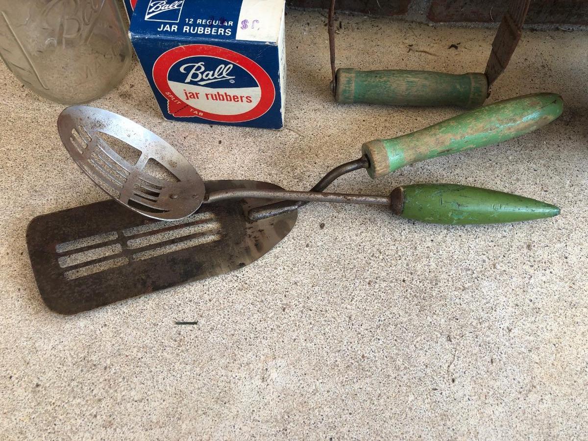 LOT 202M: Vintage Kitchen & Canning - Juice King Juicer, Ball Jar Rubbers/Caps, Green Handled Kitchen Tools & More