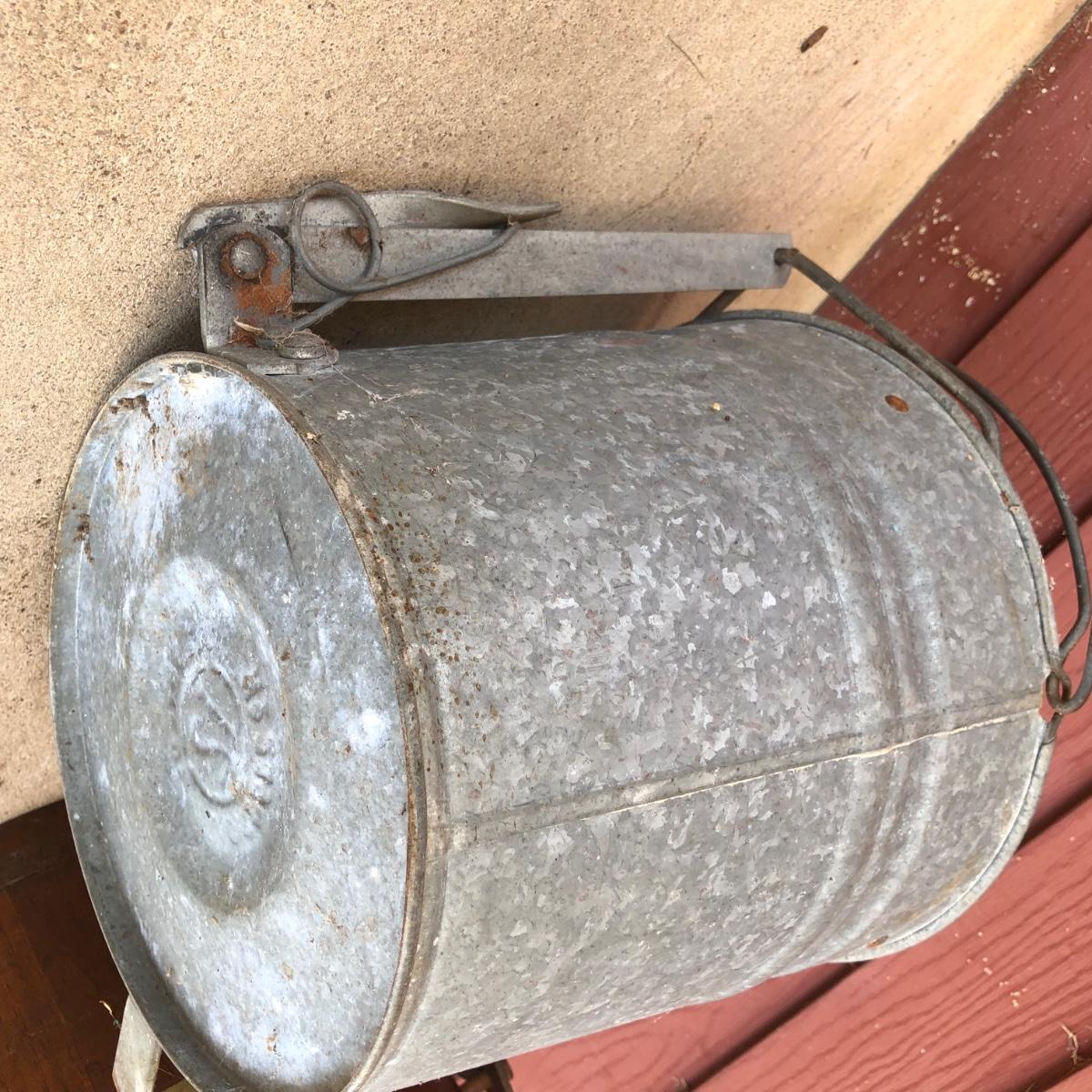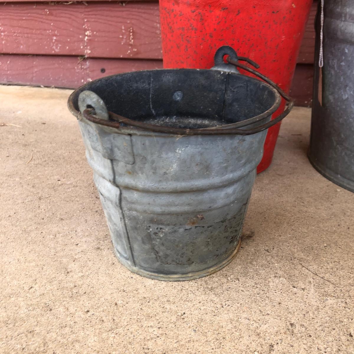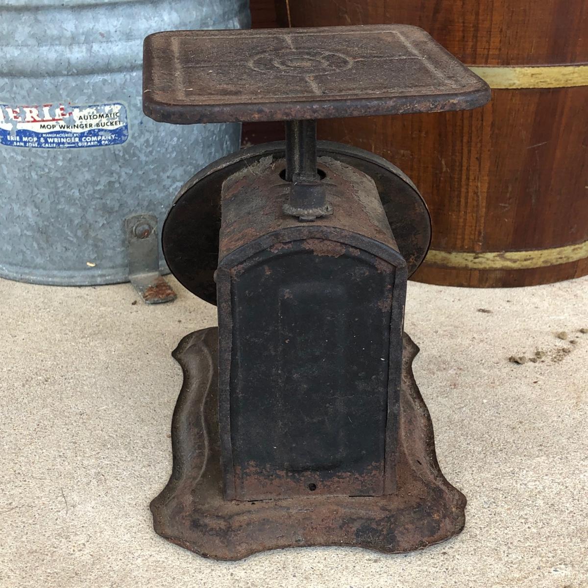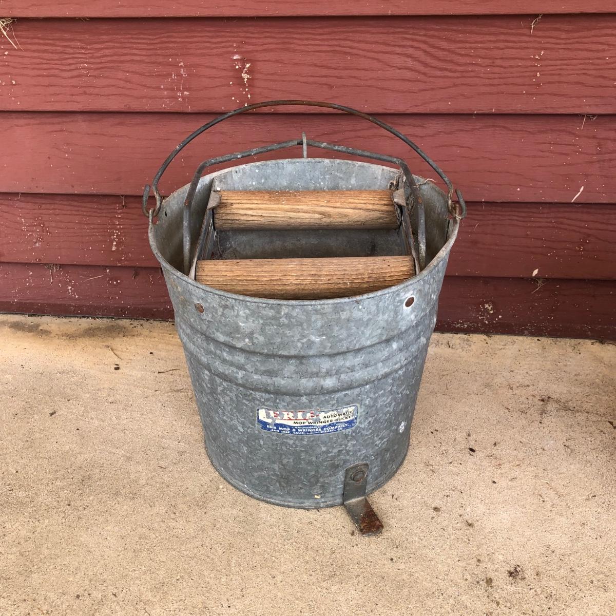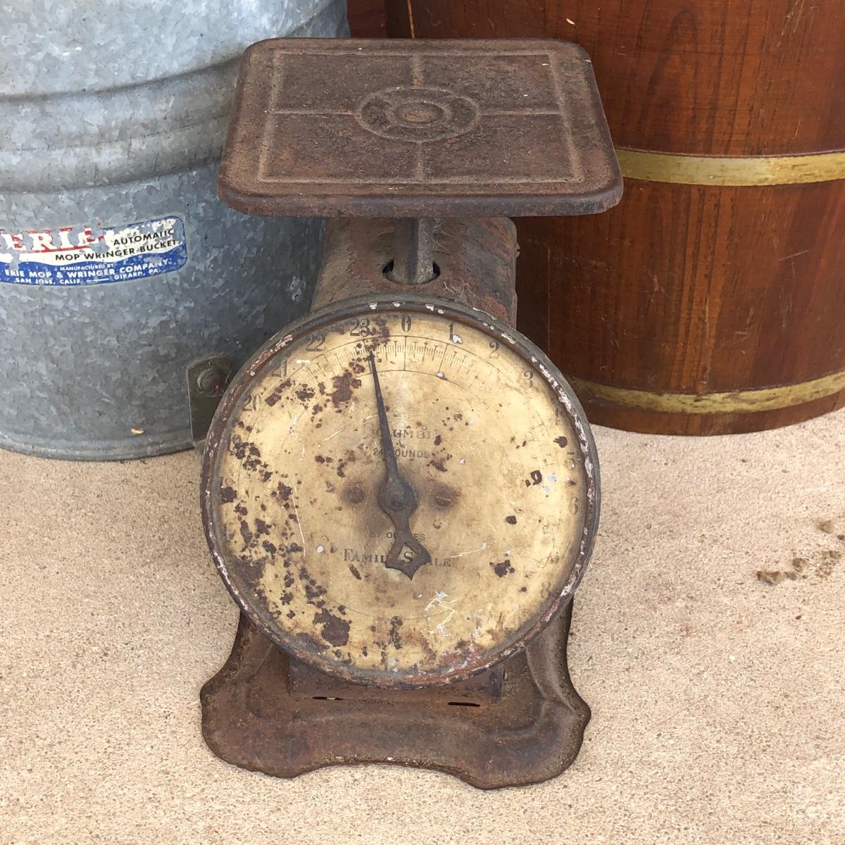 LOT 204M: Vintage Buckets & Columbia Scale w/ Penn Scale Mfg. Co. Scale Part & Erie Auto Mopwringer Bucket