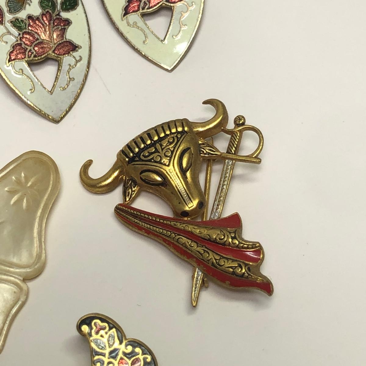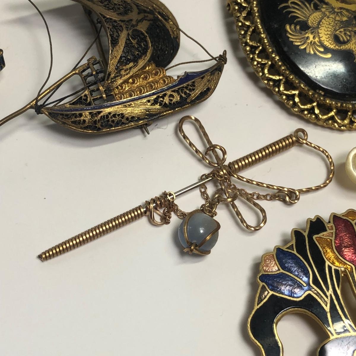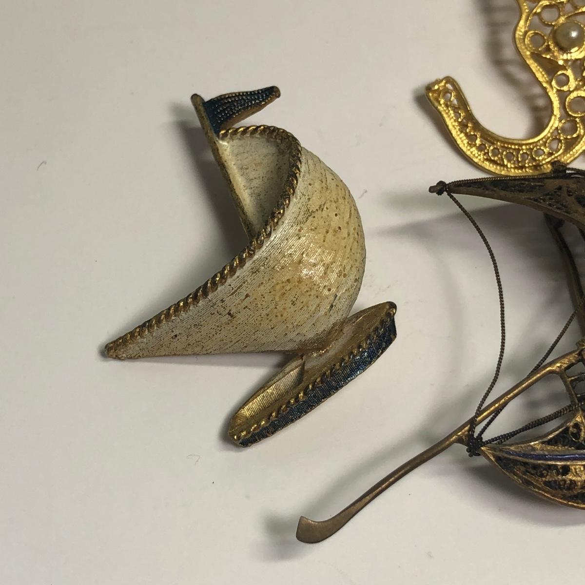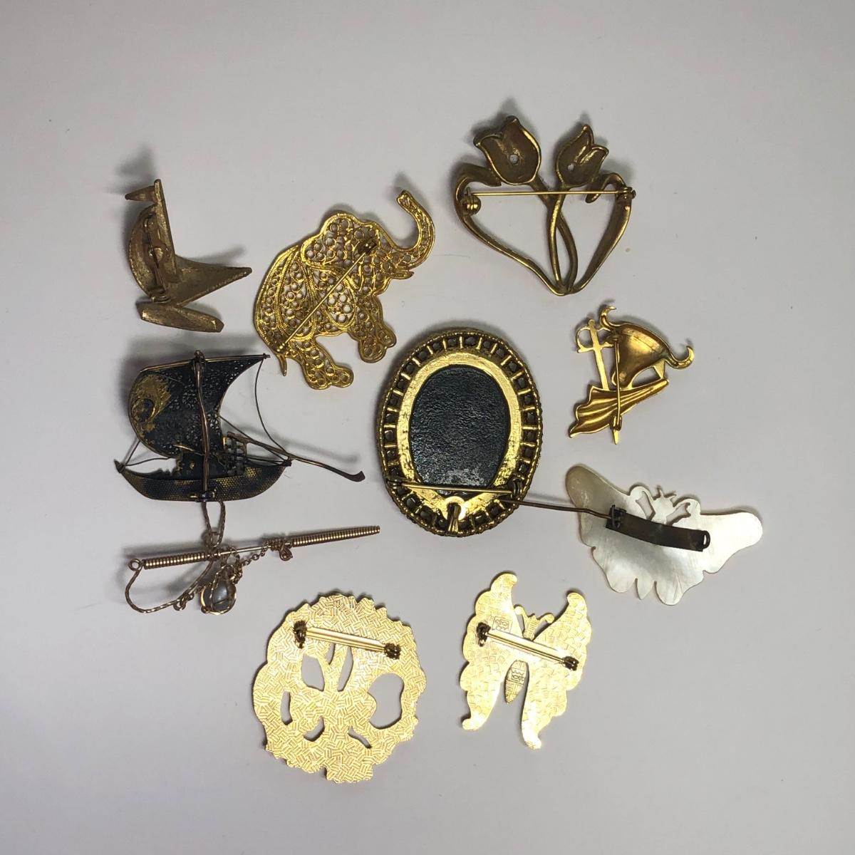 LOT 215: Brooches, Earrings: Filigree Elephant, Sailboats, Butterflies, & More