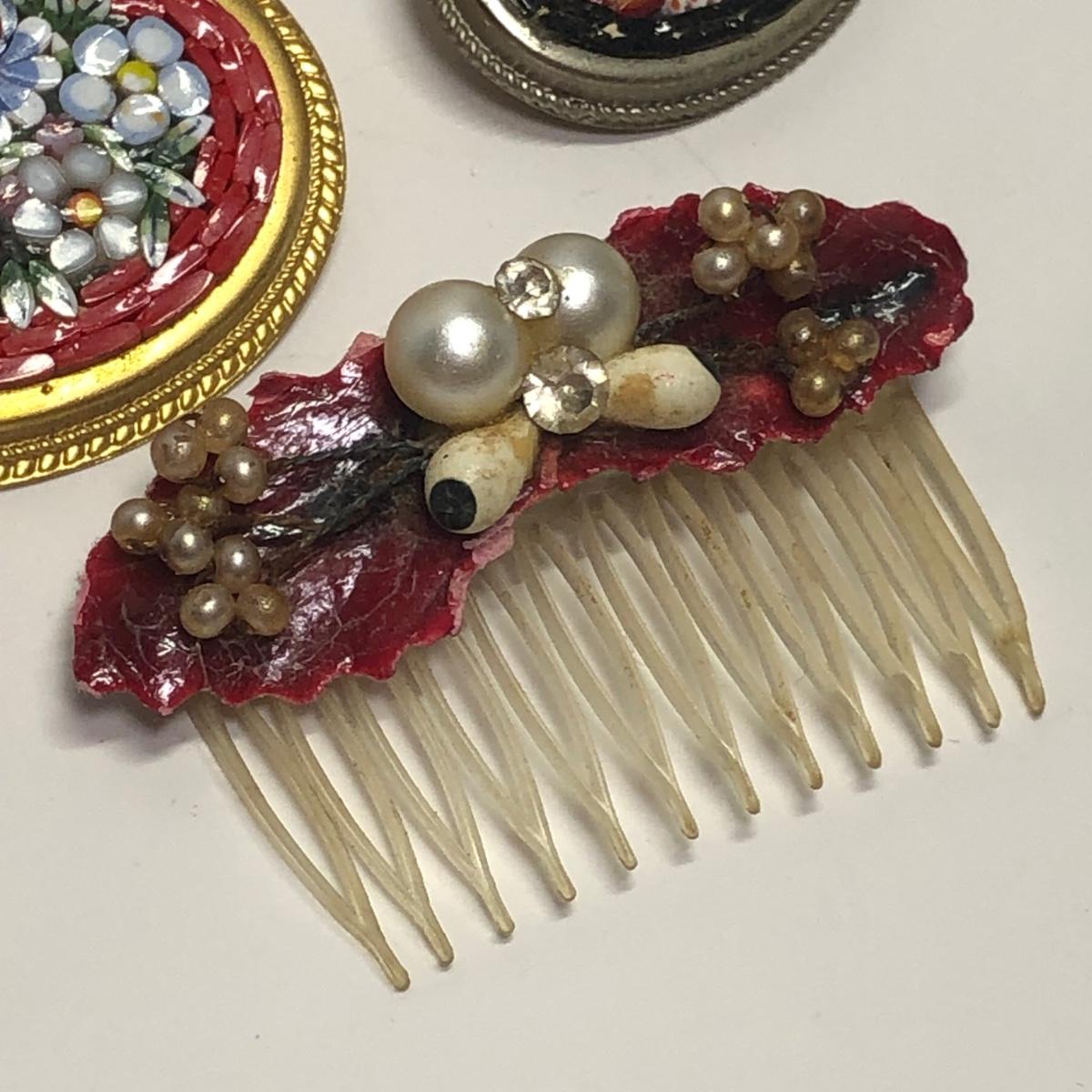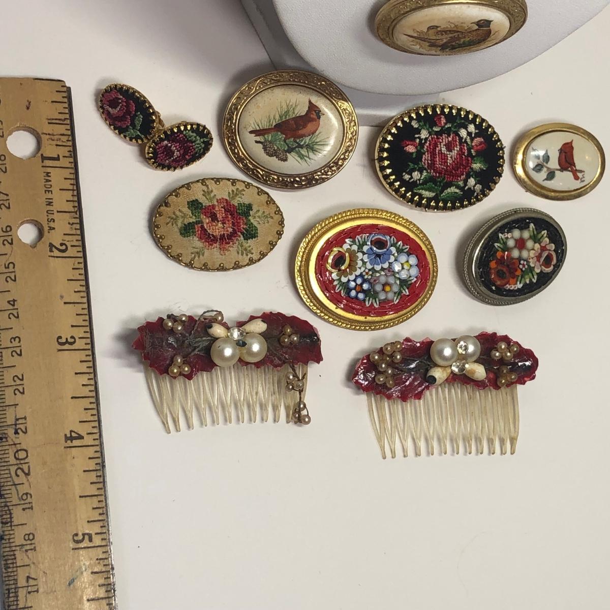 LOT 216: Victorian Style Floral Cameo Broaches, Pendants And Hair Clips