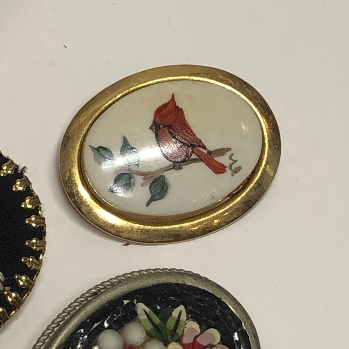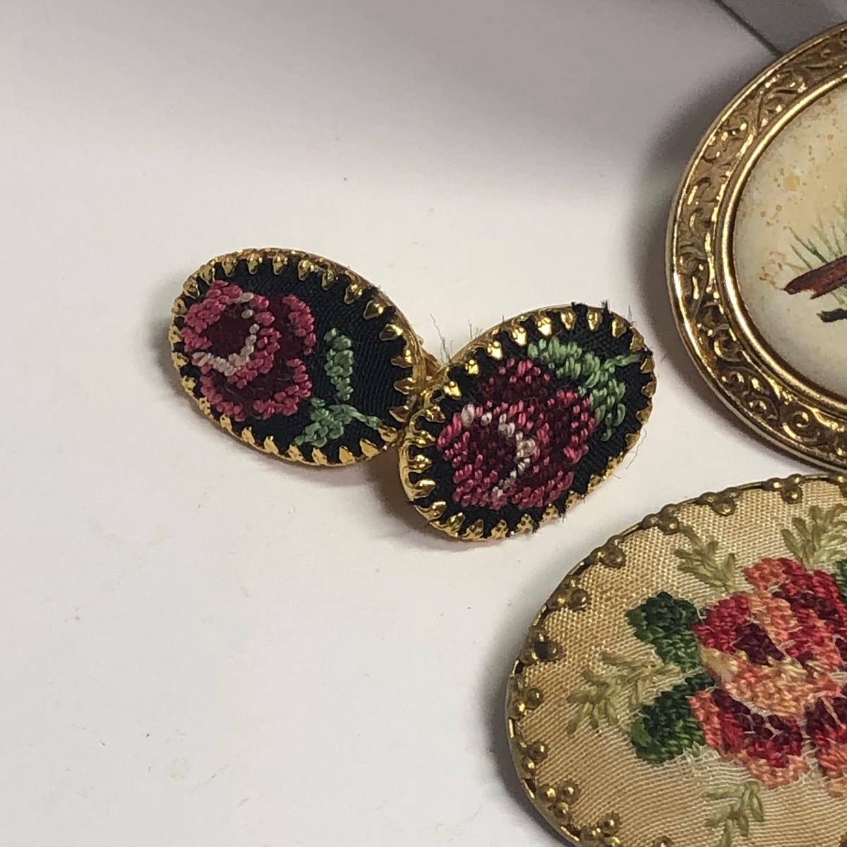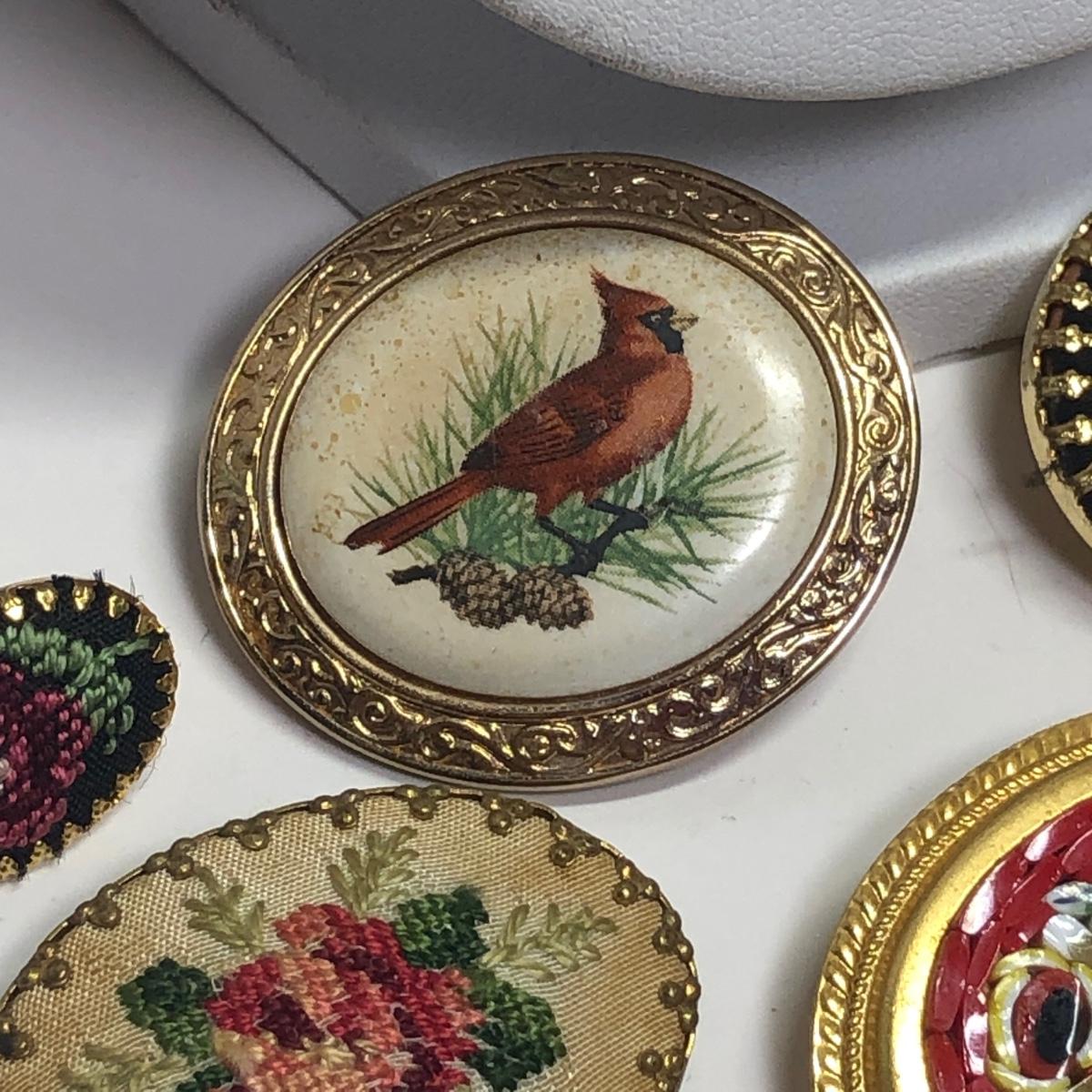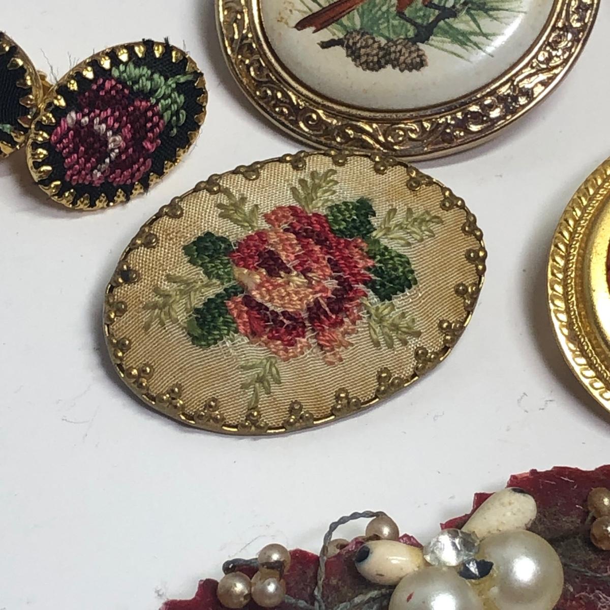 Floral cameo broaches, victorian style hair clips, rose earrings and pheasant pendant.