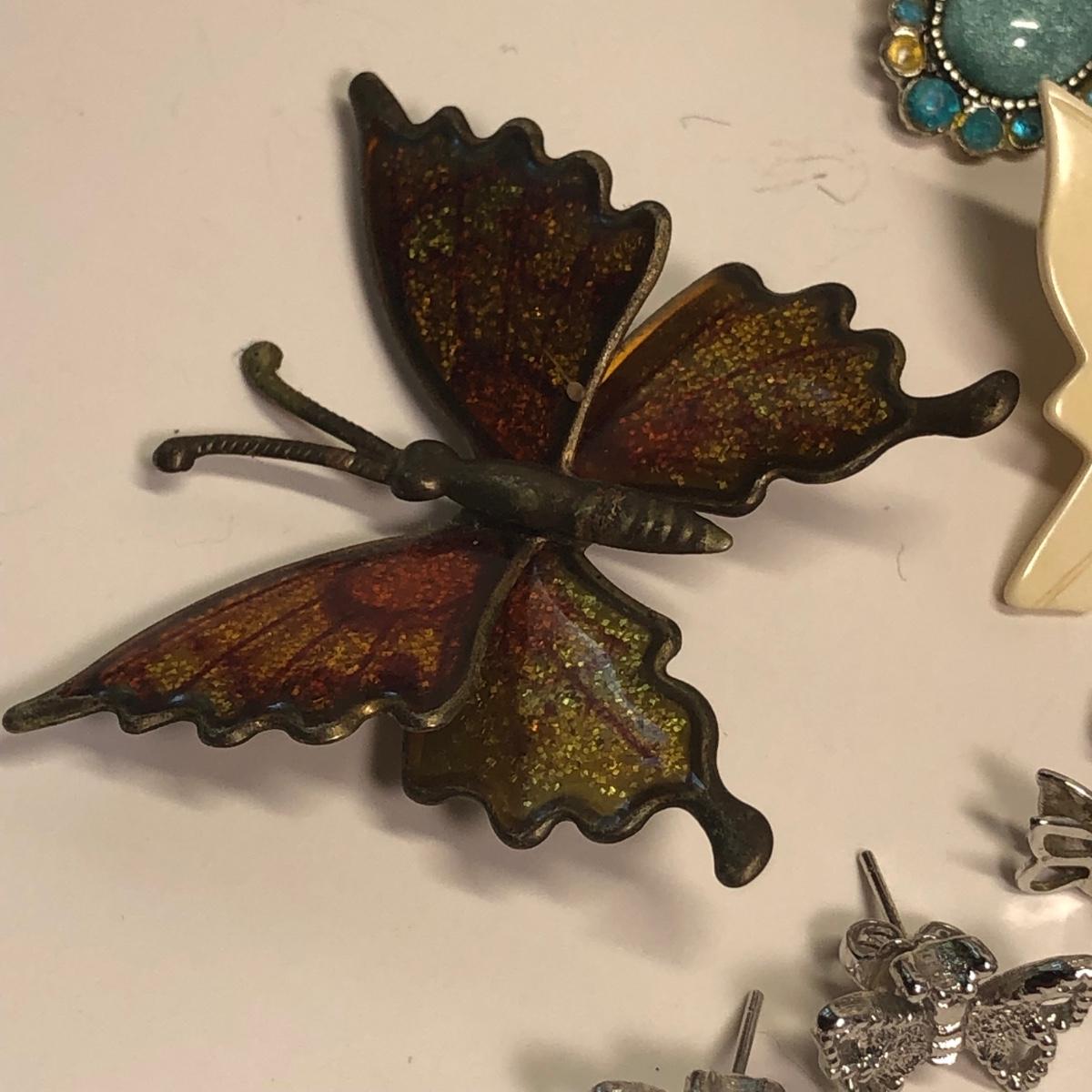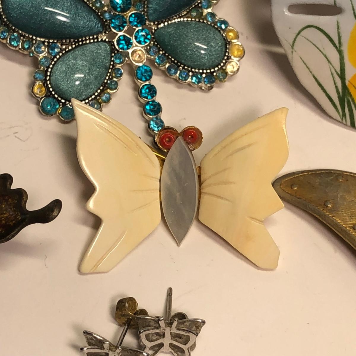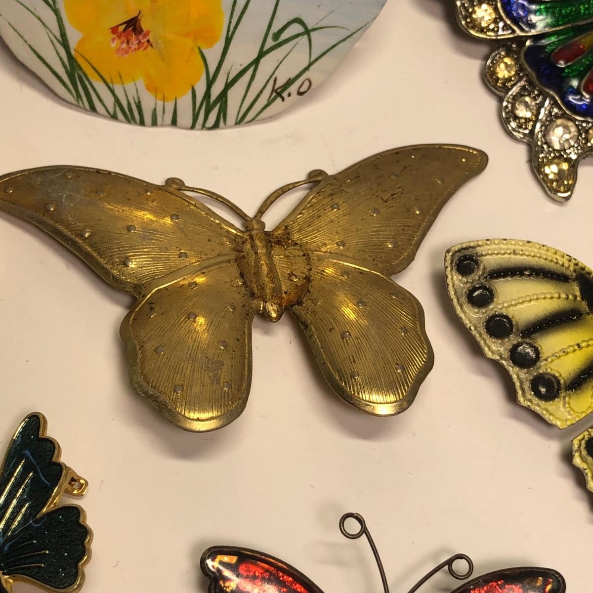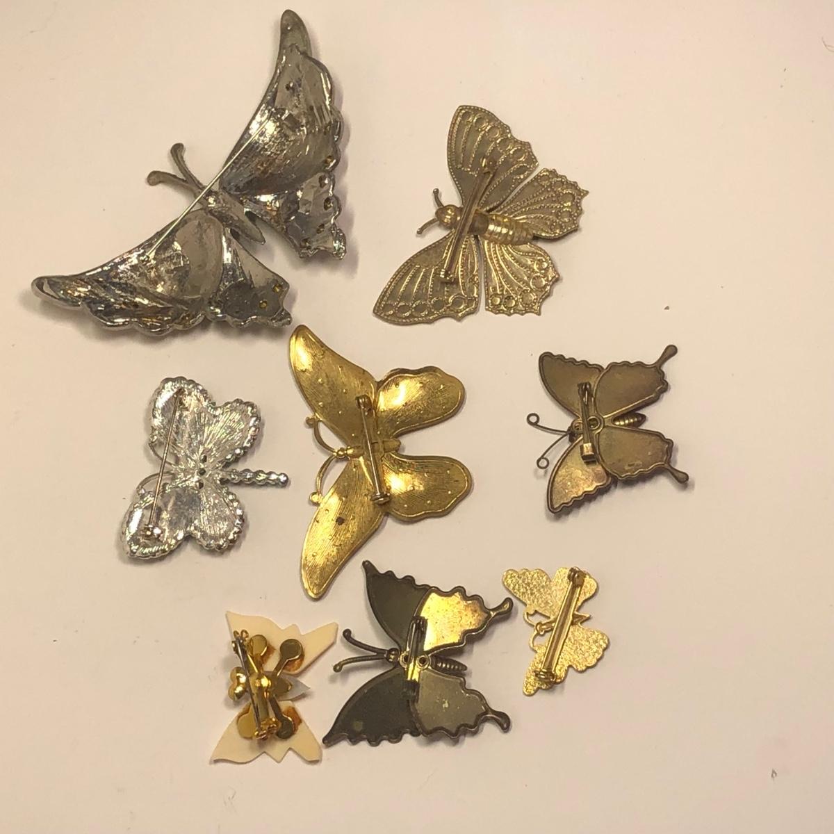 8 Butterfly pins, 3 butterfly necklaces, butterfly earrings and sterling toe ring.