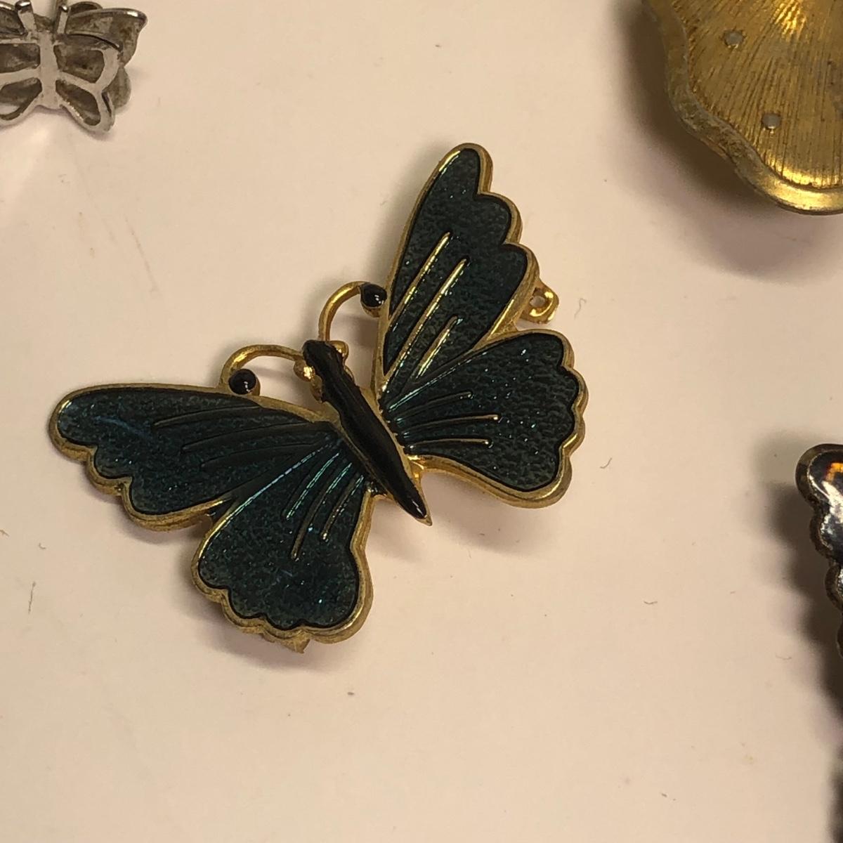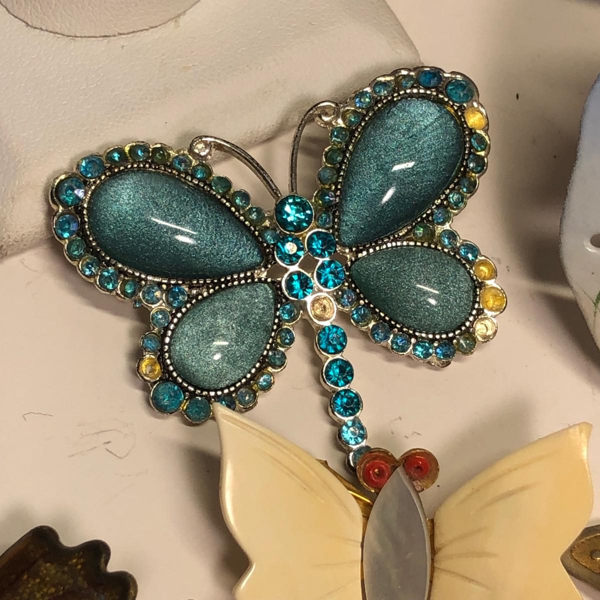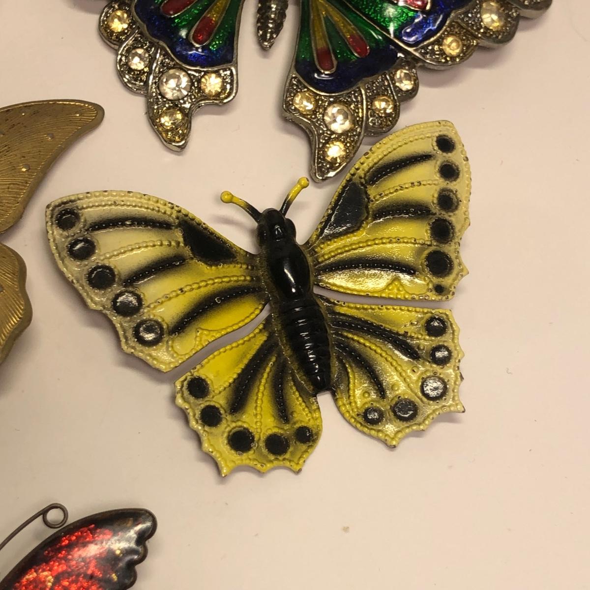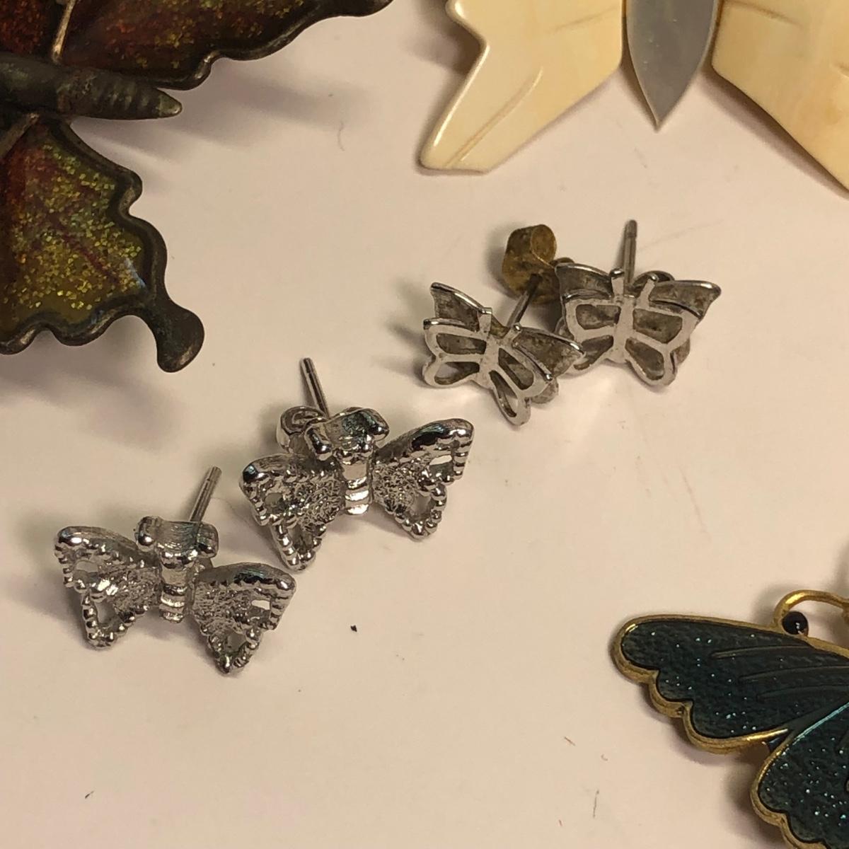 8 Butterfly pins, 3 butterfly necklaces, butterfly earrings and sterling toe ring.