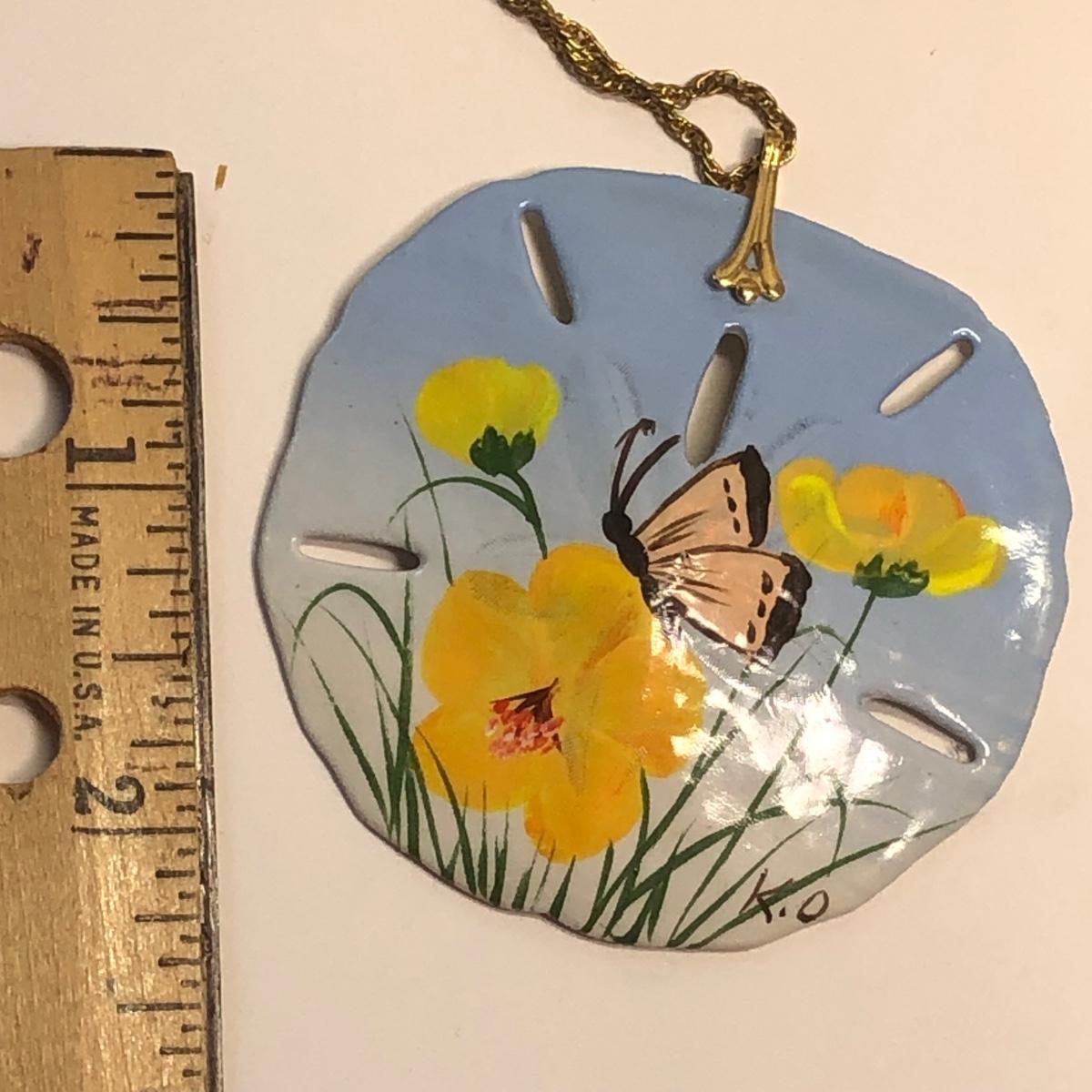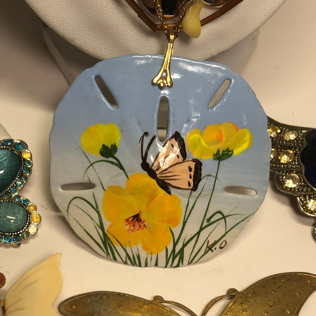 LOT 218: Hand Painted Sand Dollar Necklace, Butterfly Pins, Sterling Silver Toe Ring And More