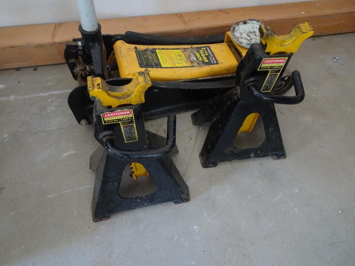 LOT 926   3 TON FLOOR JACK AND  TWO JACK STANDS