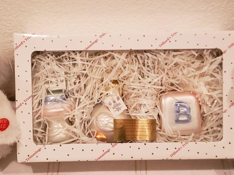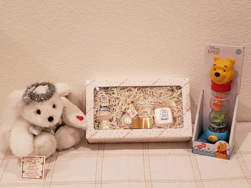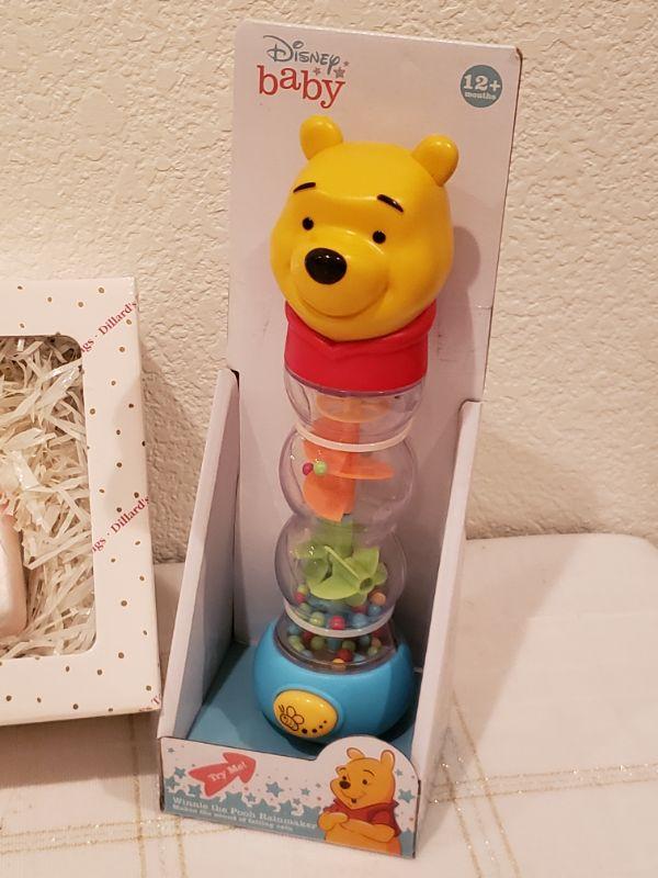 Lot 927: NEW Dillard's Baby Ornaments, Angel Bear and Winnie the Pooh Rattle Toy