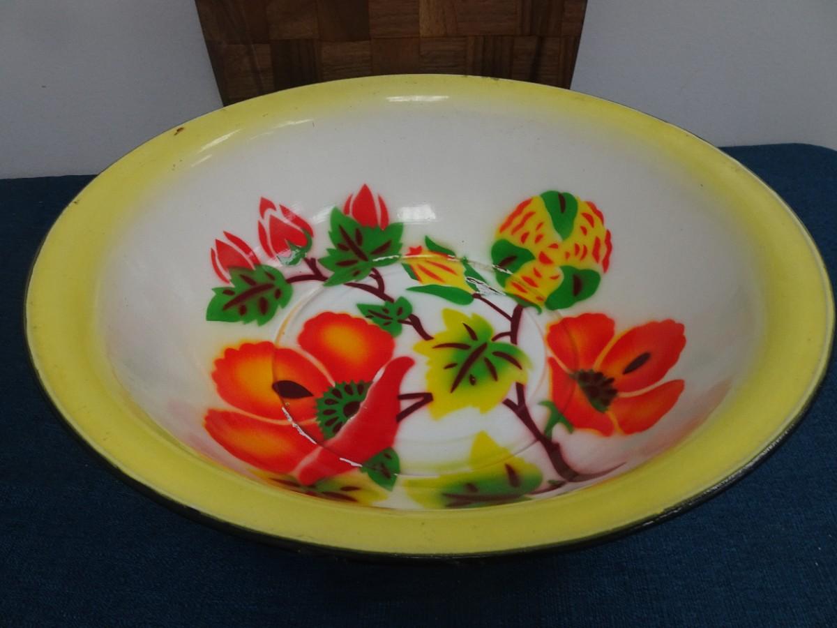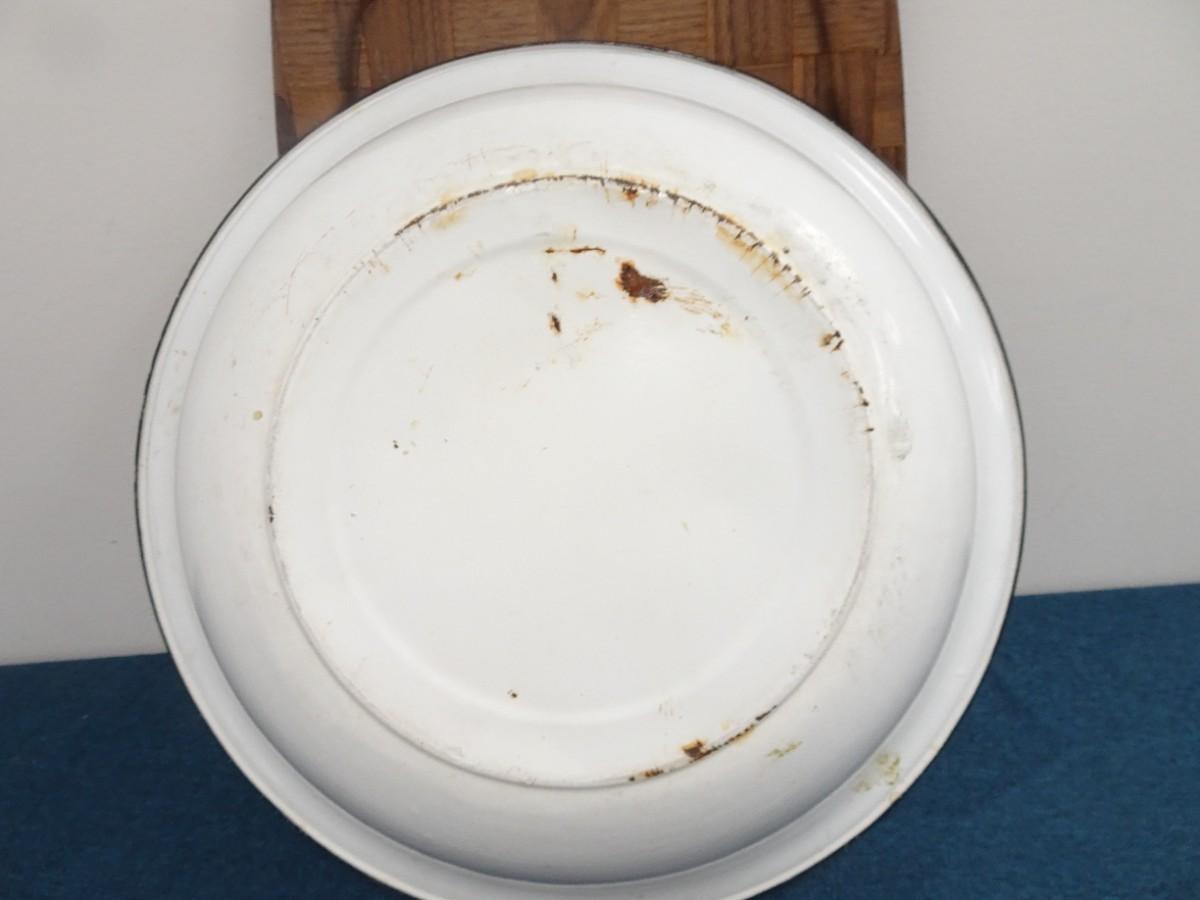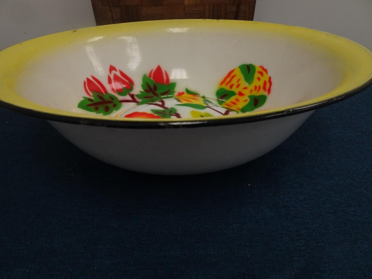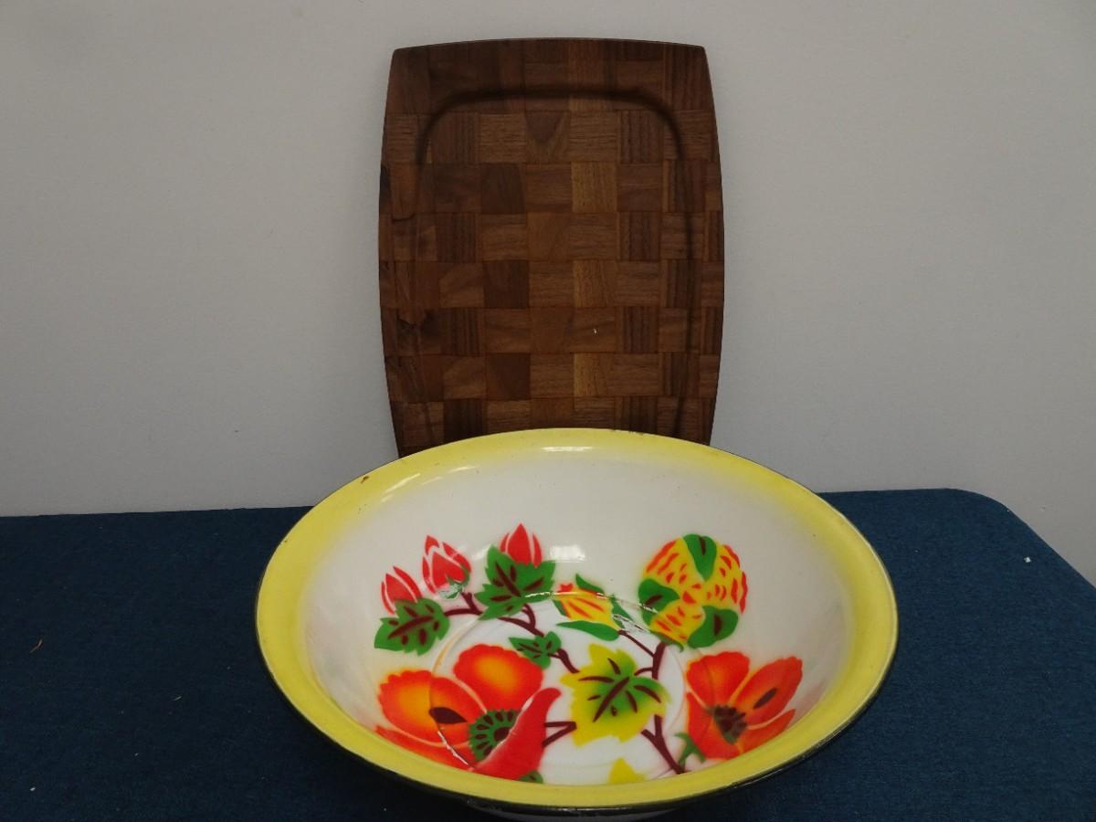 LOT 929 VINTAGE METAL BOWL AND WEAVEWOOD TRAY