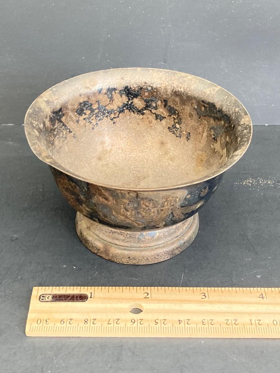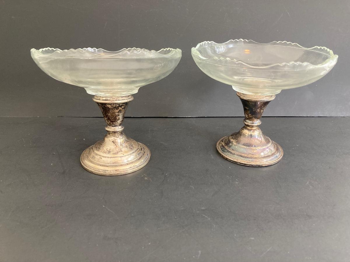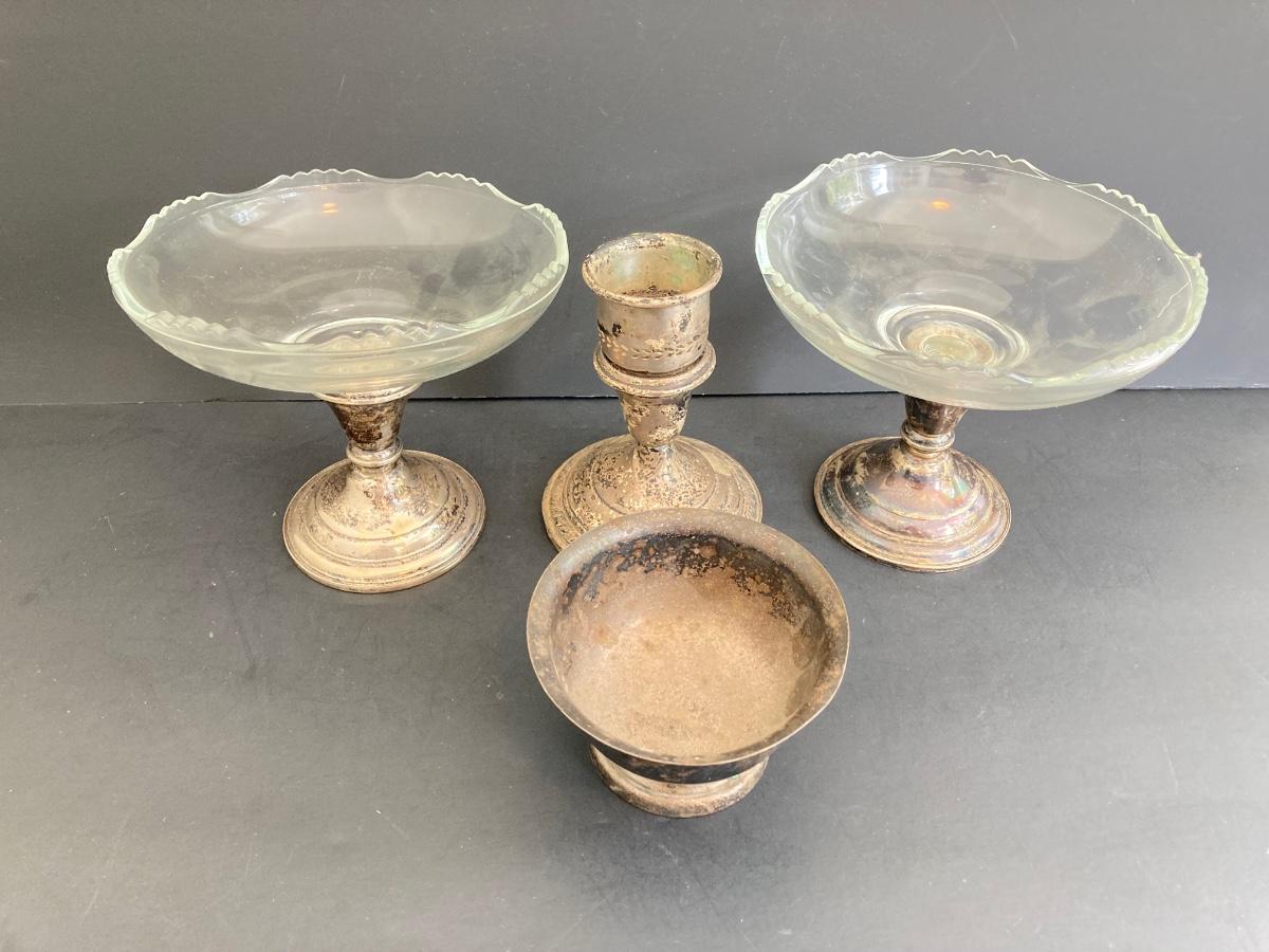 LOT 21D: Sterling Silver Bowl, Weighted Base Candle Holder and Glass Top Compote Dishes