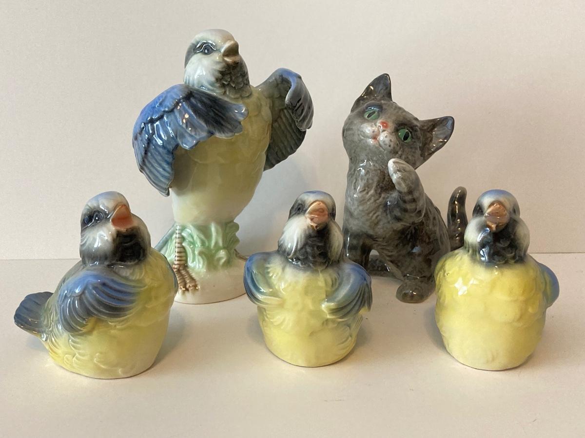 LOT 74H: Goebel Figurine Collection - Birds Singing and Cat