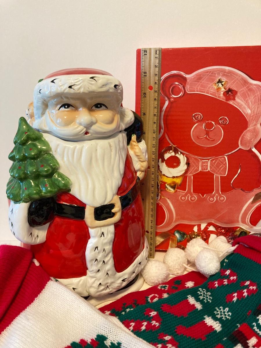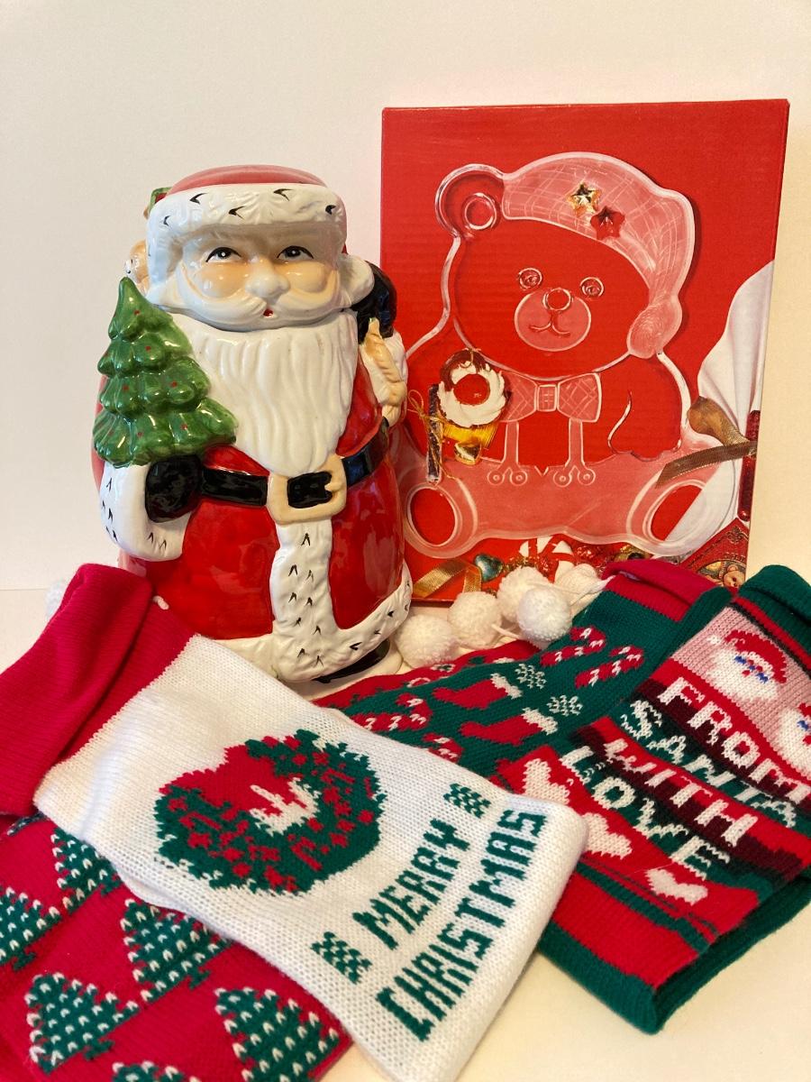 LOT 83H: Christmas Collection - Cookie Jar, Mikasa Dish and Stockings