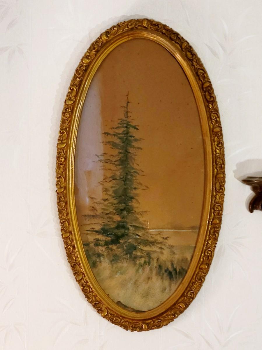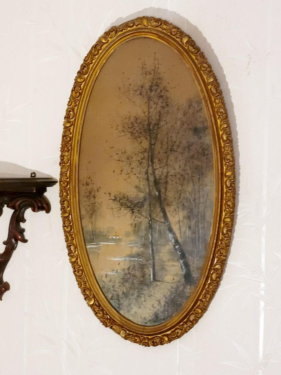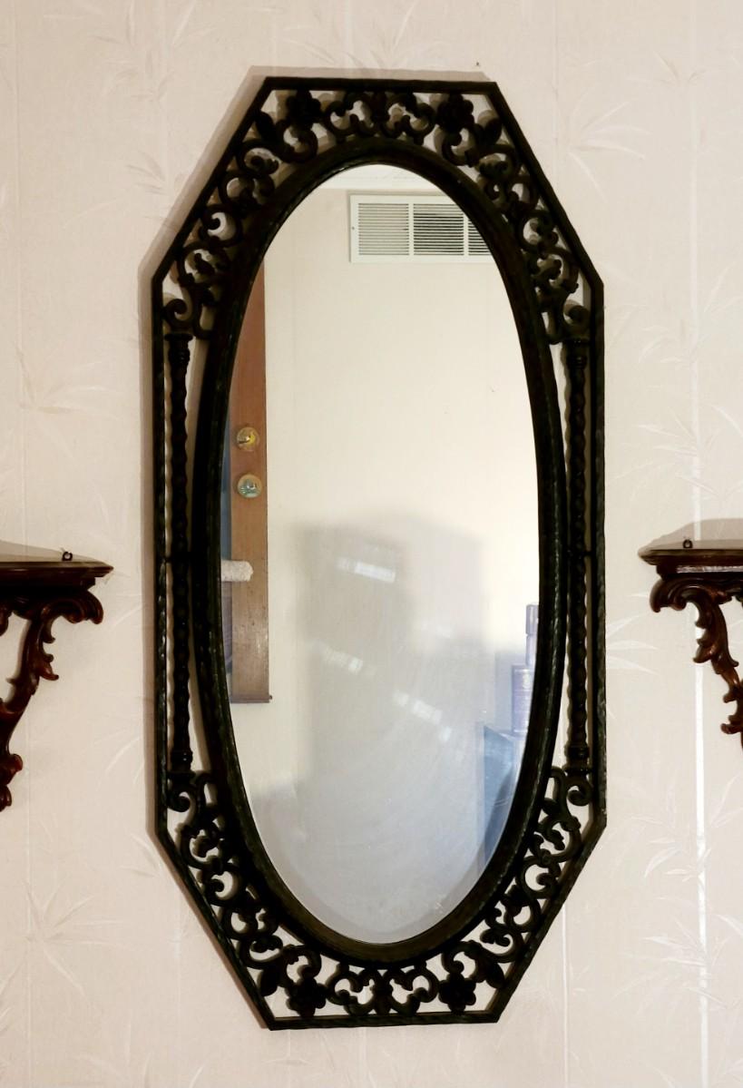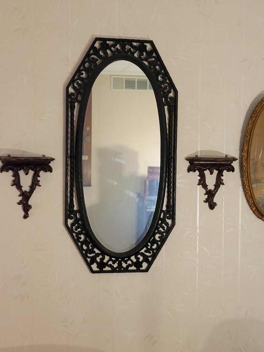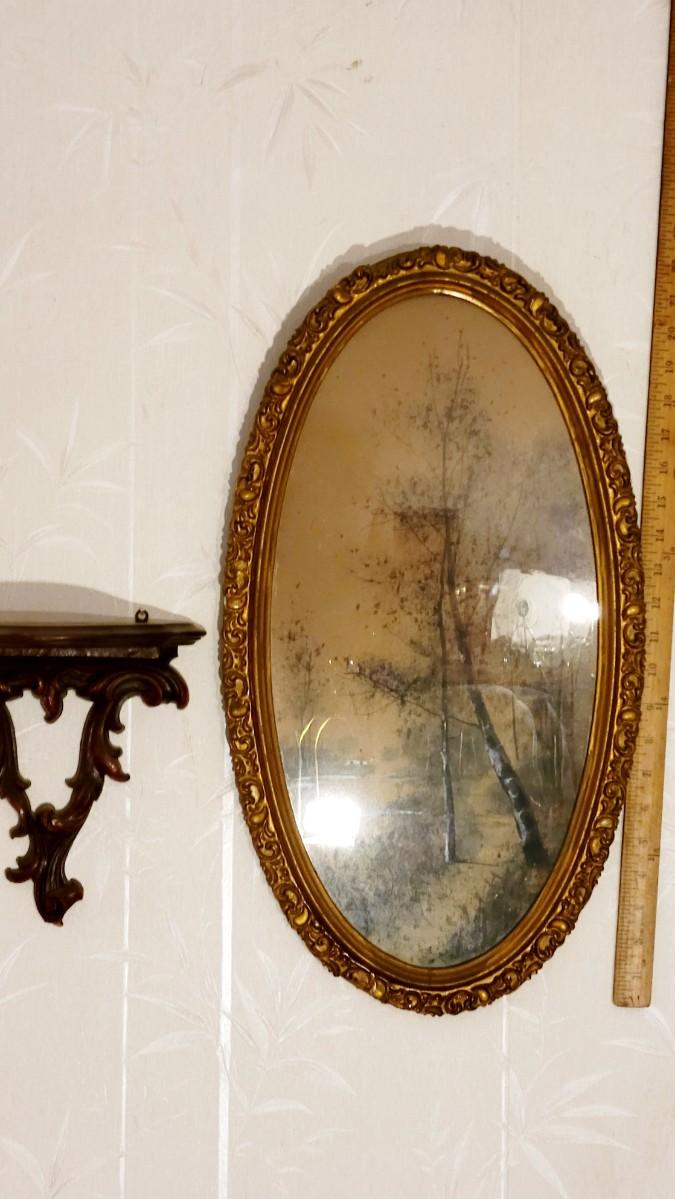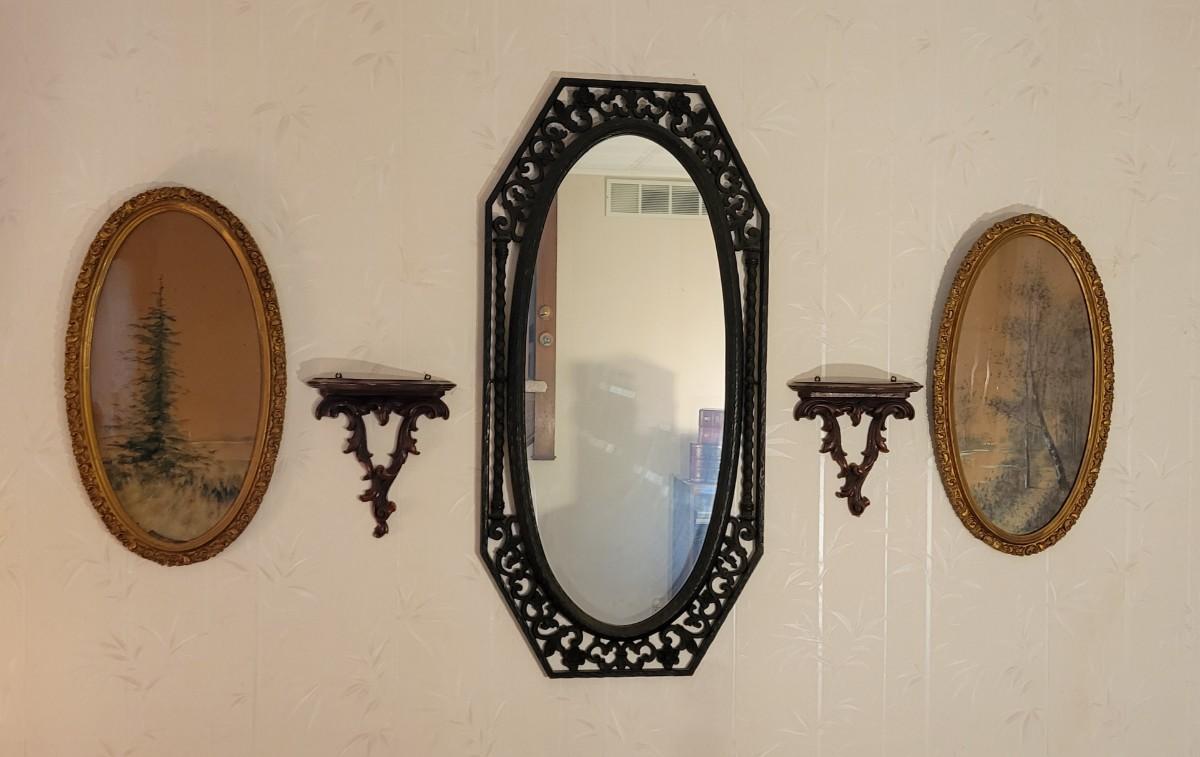 LOT 113L: Vintage Mirror (18" x 37") & Antique Pictures (14.5" x 12.5")