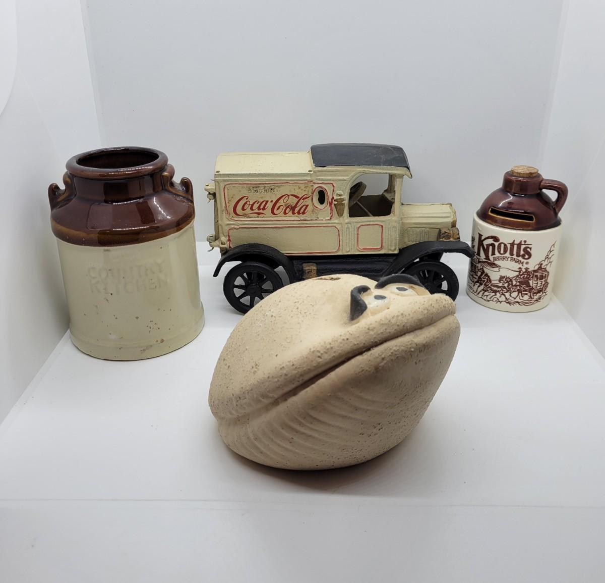 LOT 137T: Bank Lot - Cast Iron Coca Cola, Knott's, BIG Clam