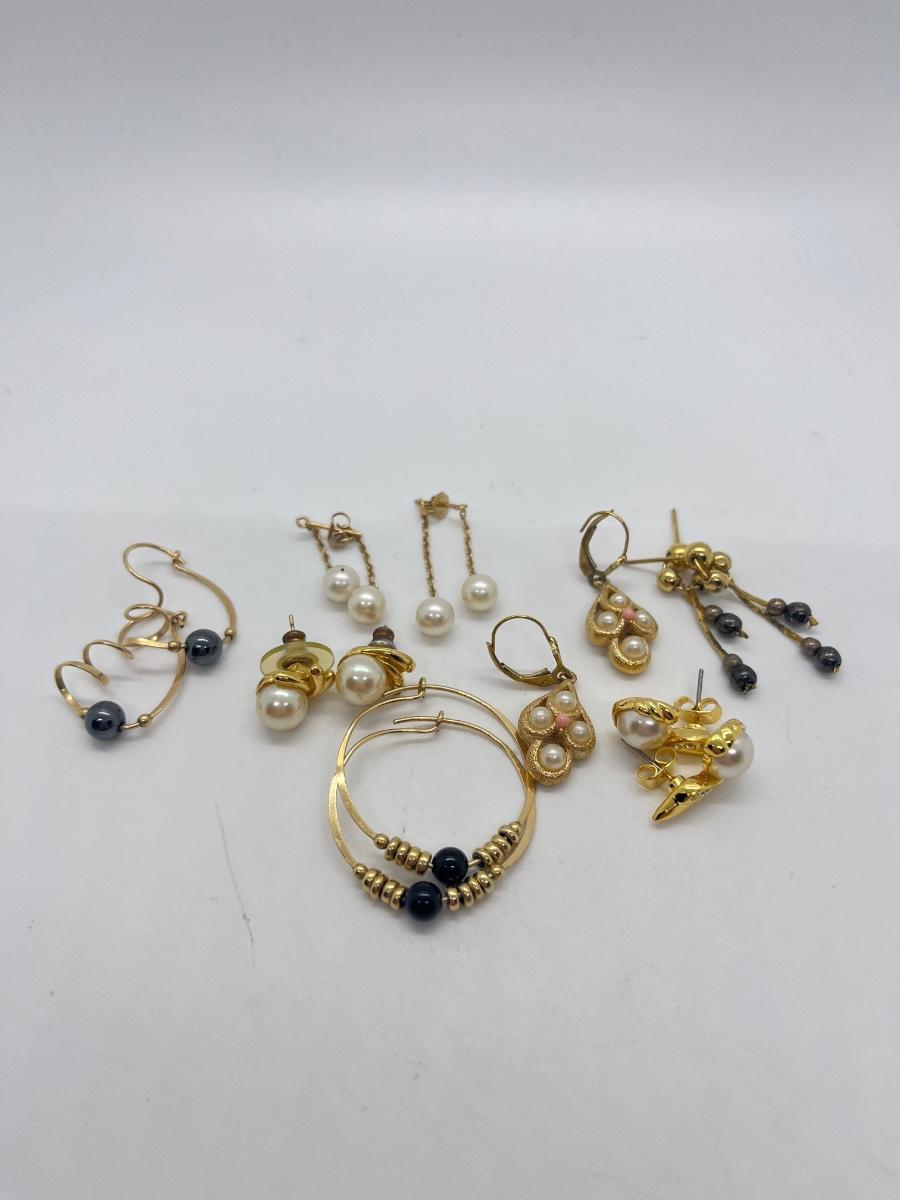LOT 154J: Goldtone & Faux Pearl Earrings