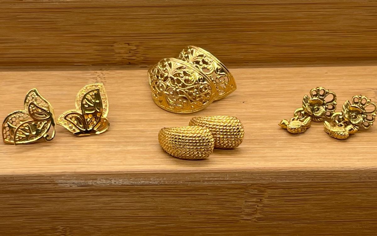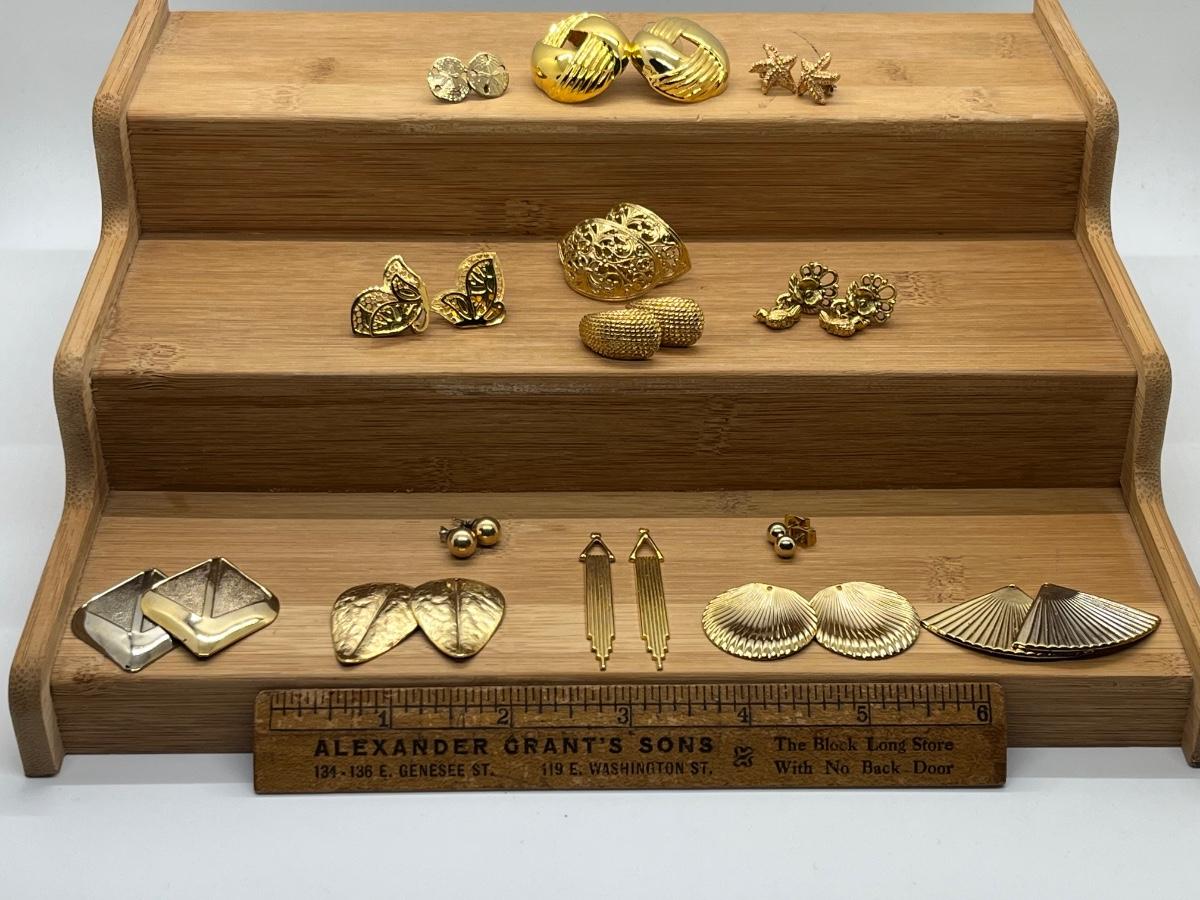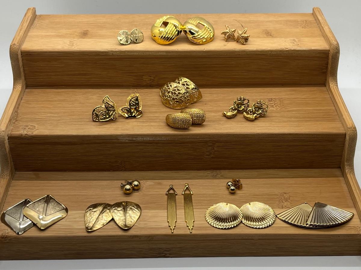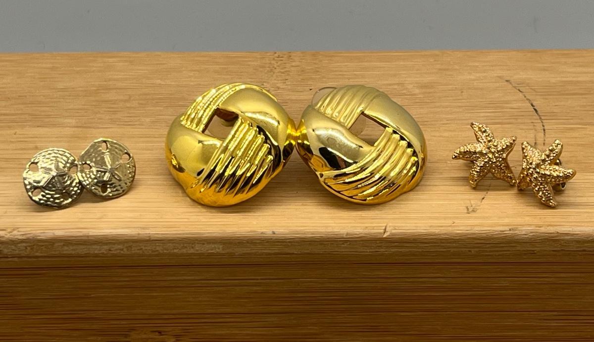 LOT 169J: Gold Tone Pierced Earrings with Set of Interchangeable Pieces