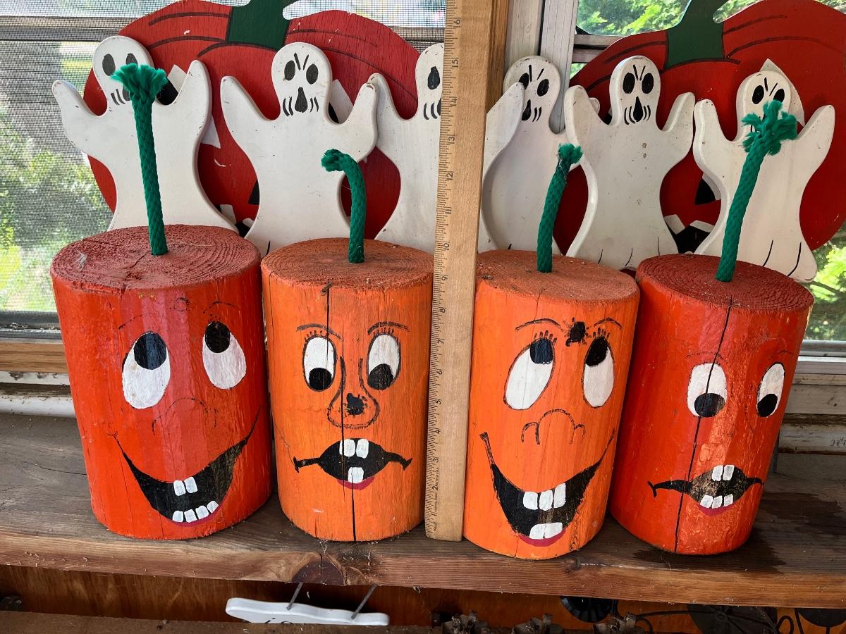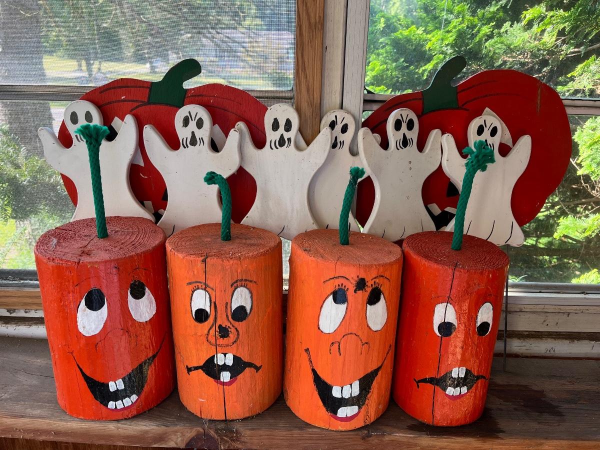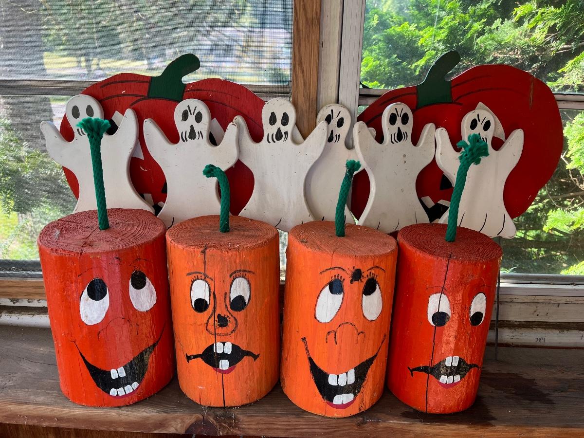 LOT 207P: Wooden Halloween Decorations - Fall Decor - Jack O'Lanterns, Ghosts