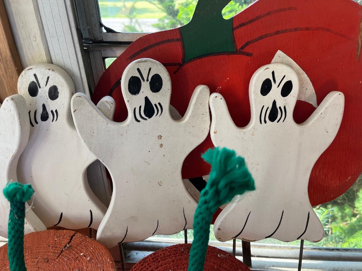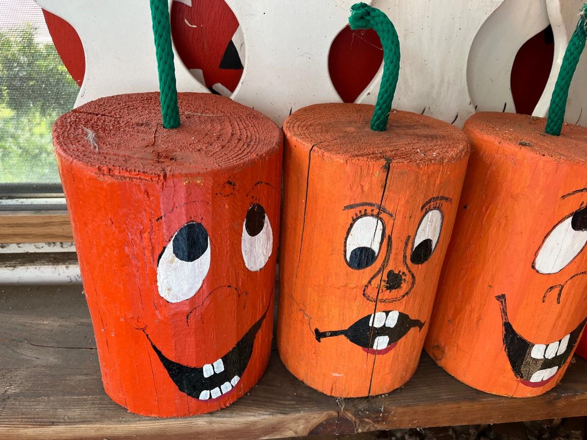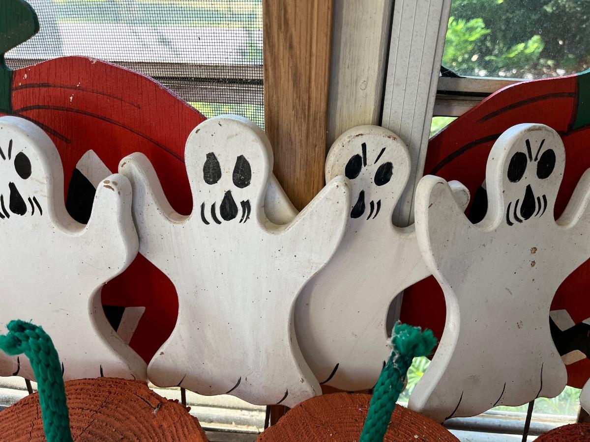 LOT 207P: Wooden Halloween Decorations - Fall Decor - Jack O'Lanterns, Ghosts