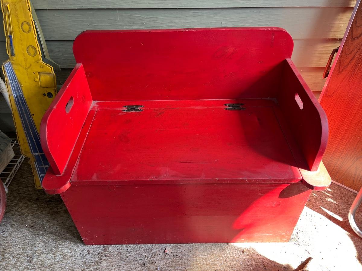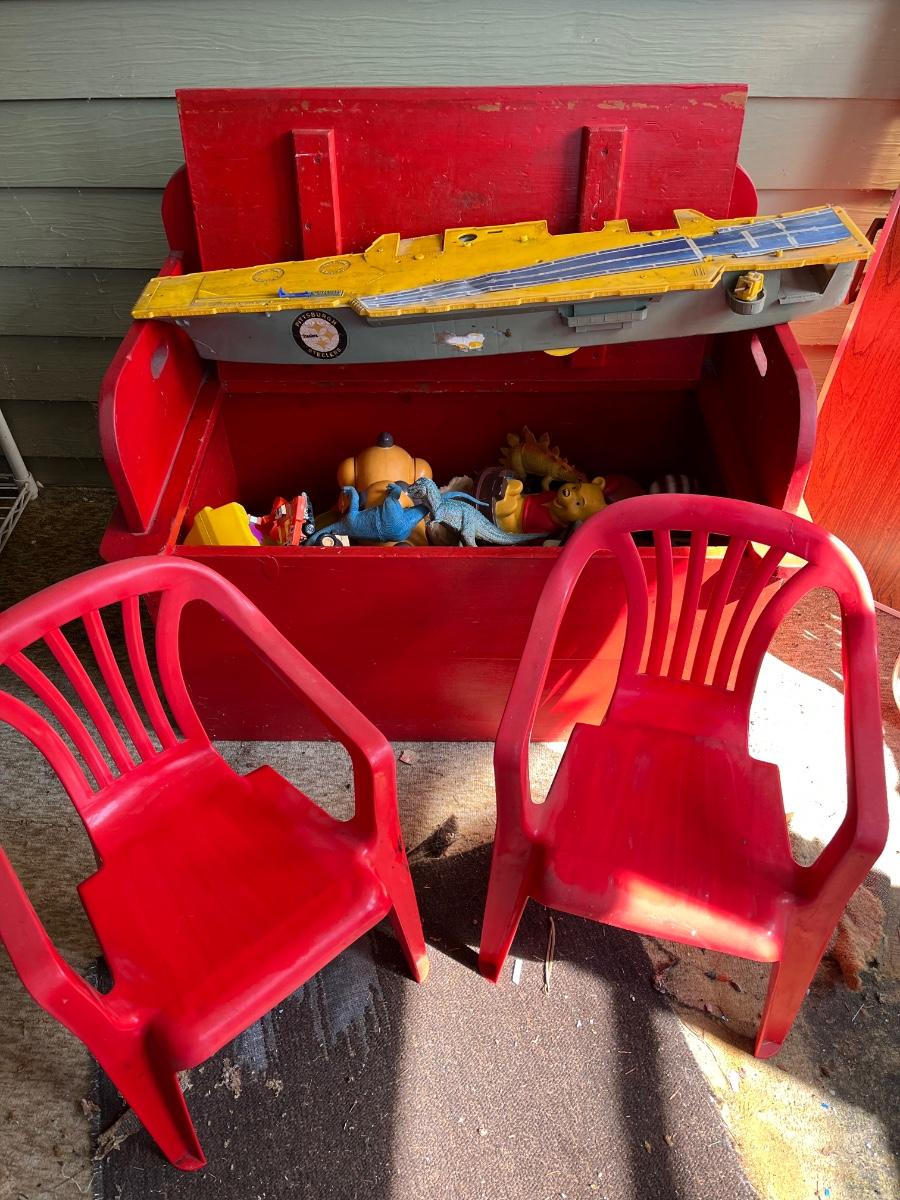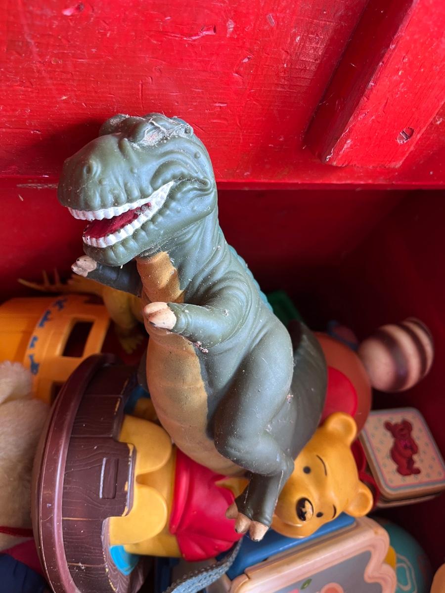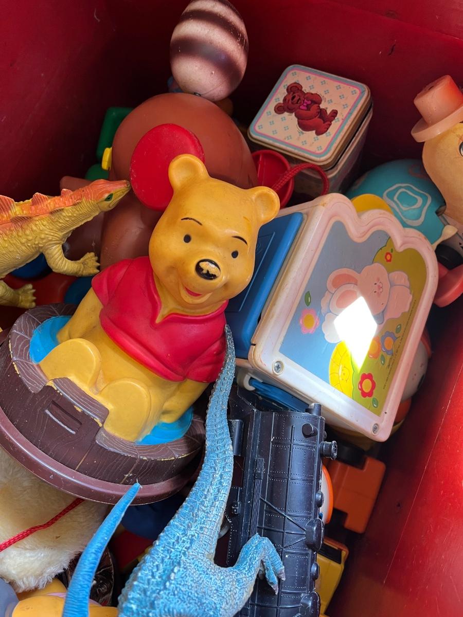 LOT 210P: Toy Box / Bench Full of Vintage Toys