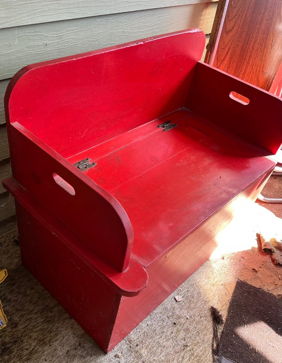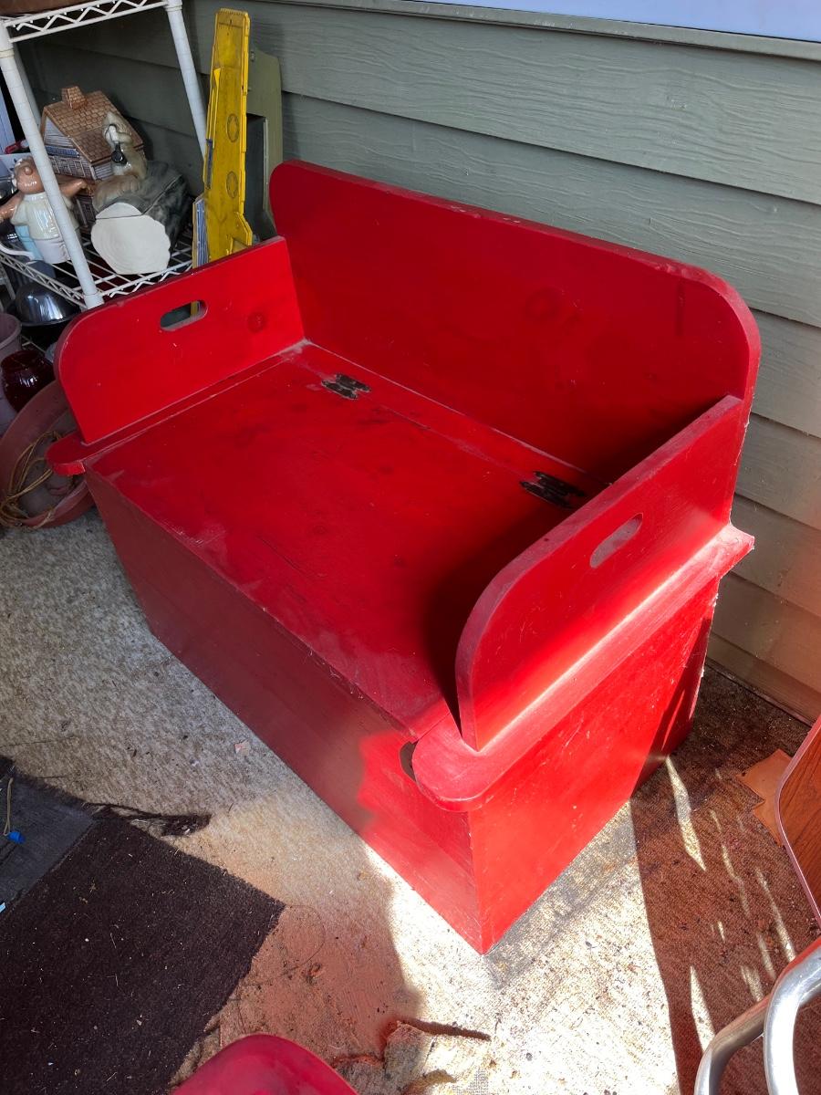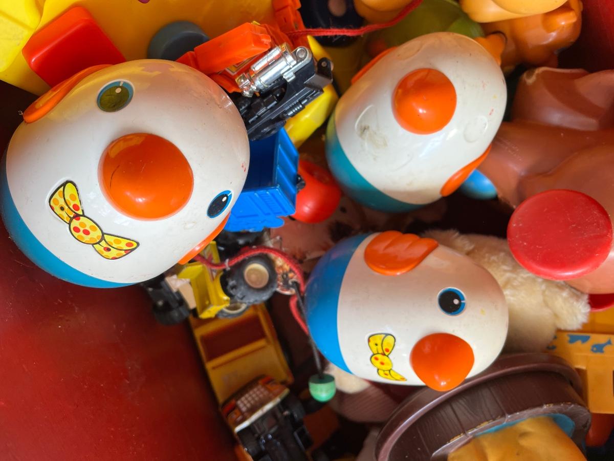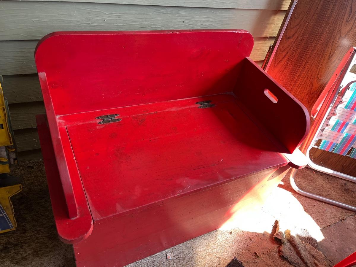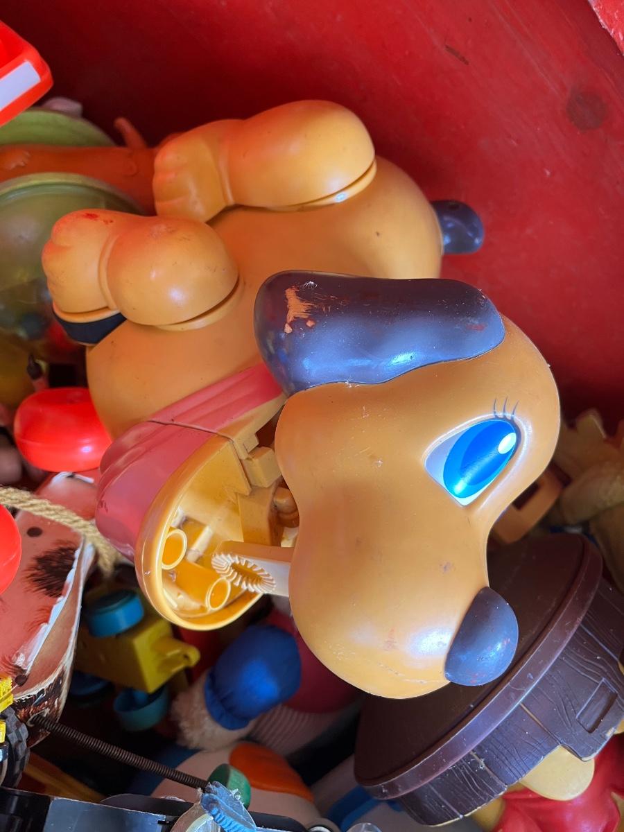 LOT 210P: Toy Box / Bench Full of Vintage Toys