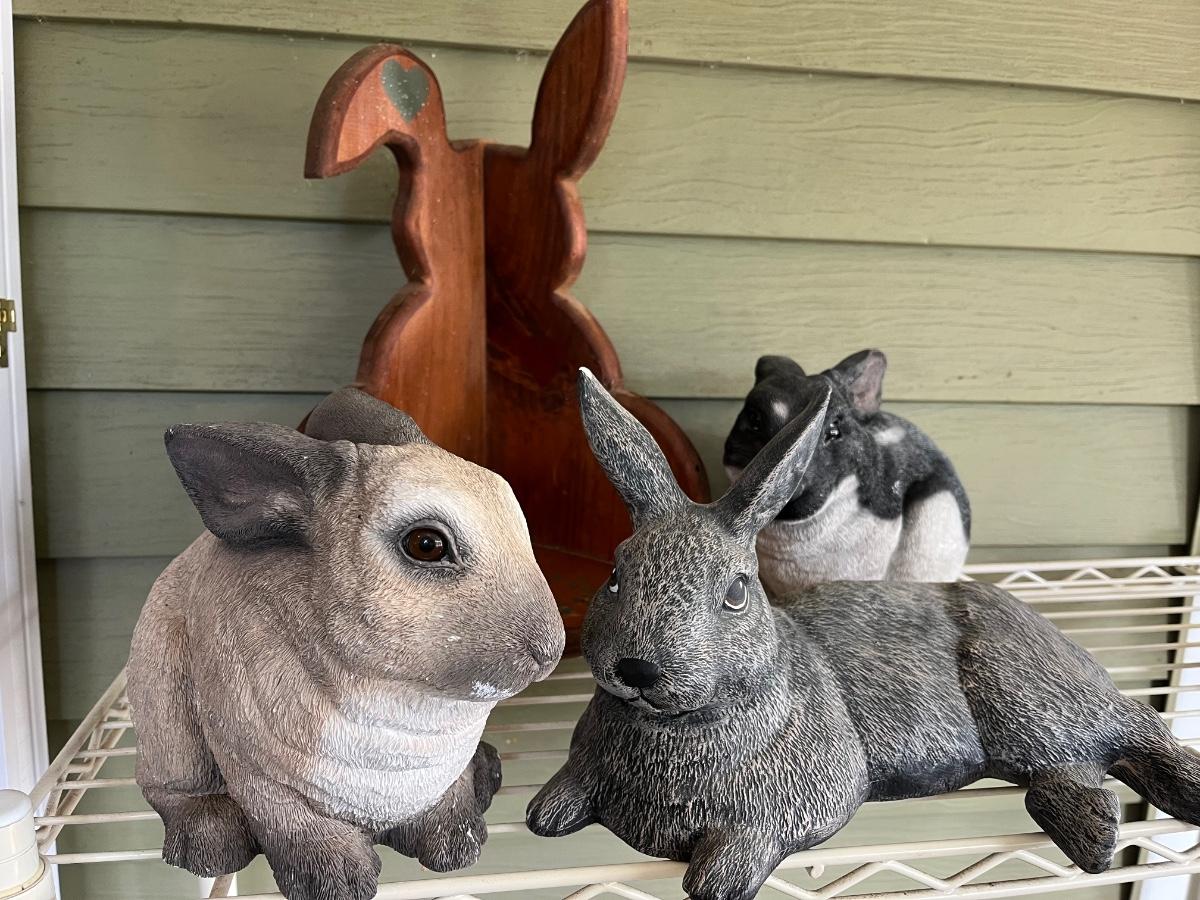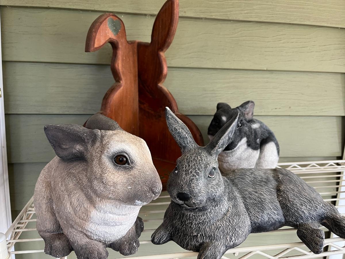 LOT 211P: Large Bunny Rabbit Decor Pieces - Statues, Shelf