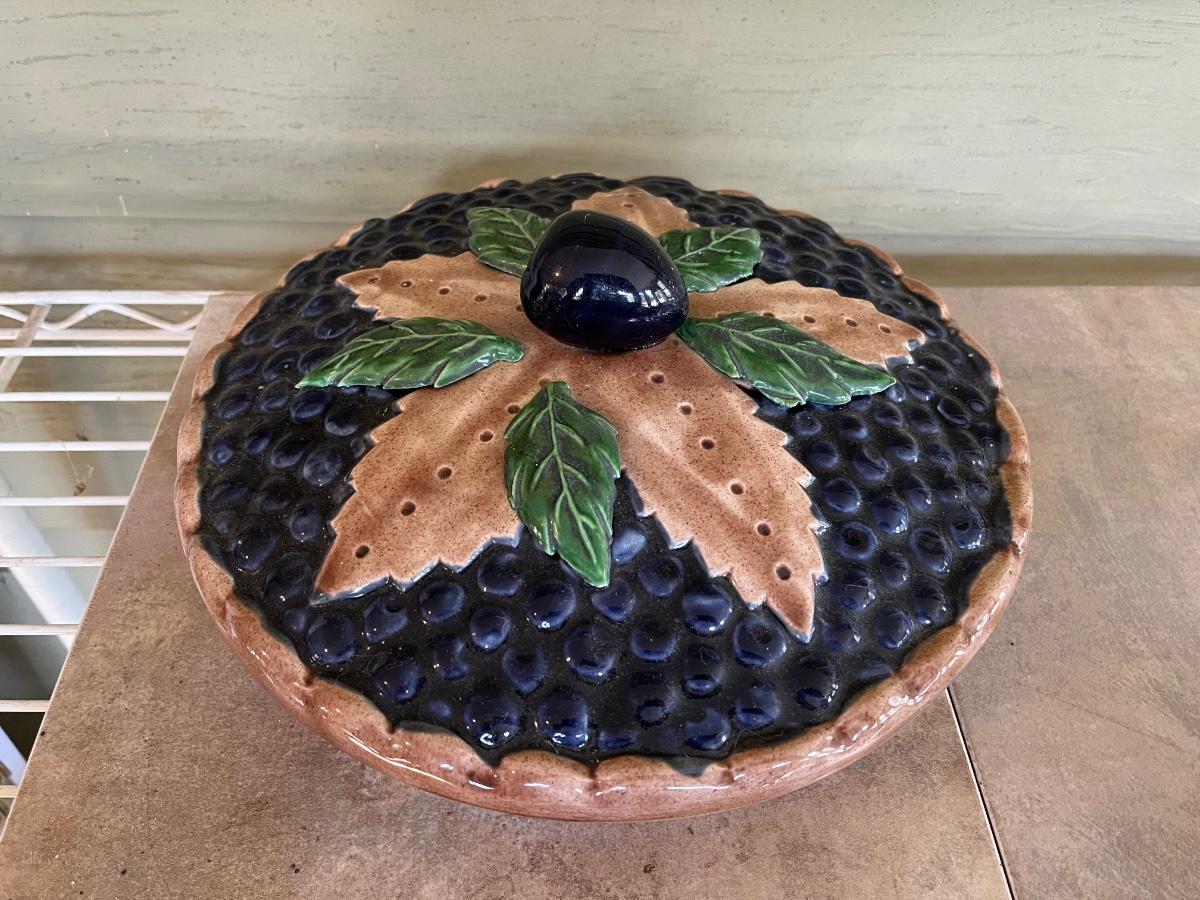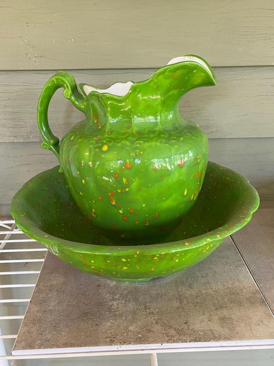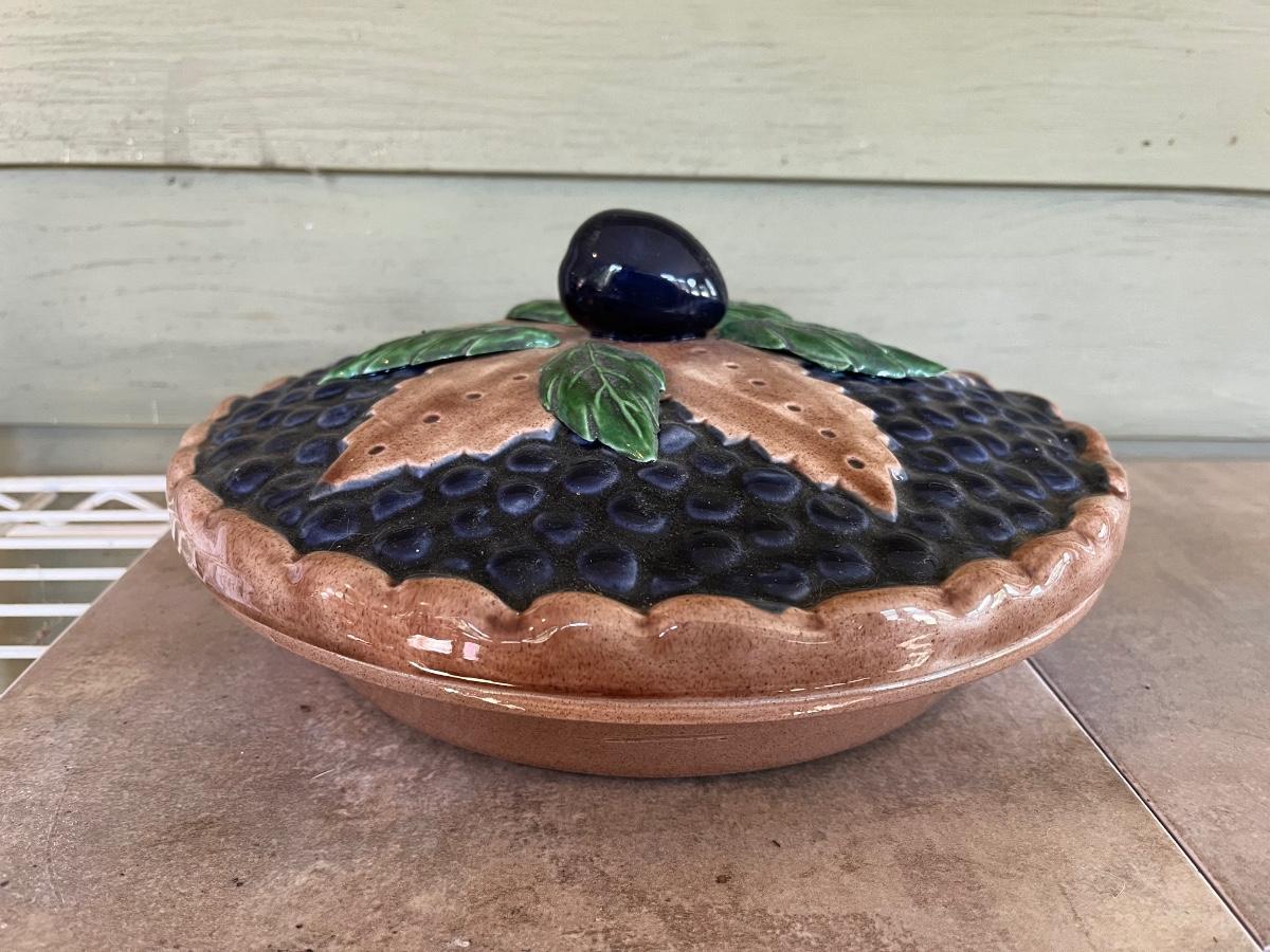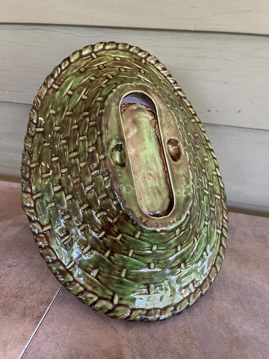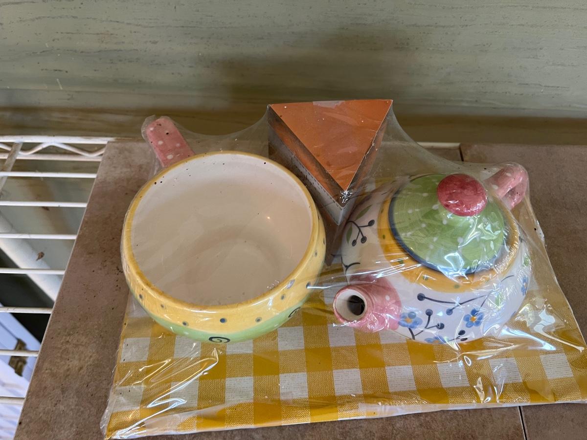 LOT 216P: Ceramic Pieces - Large Basin and Pitcher, Covered Pie Dish, Basket, Sealed Tea Set