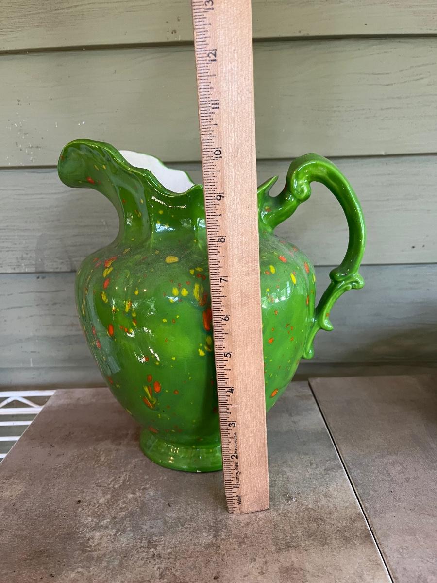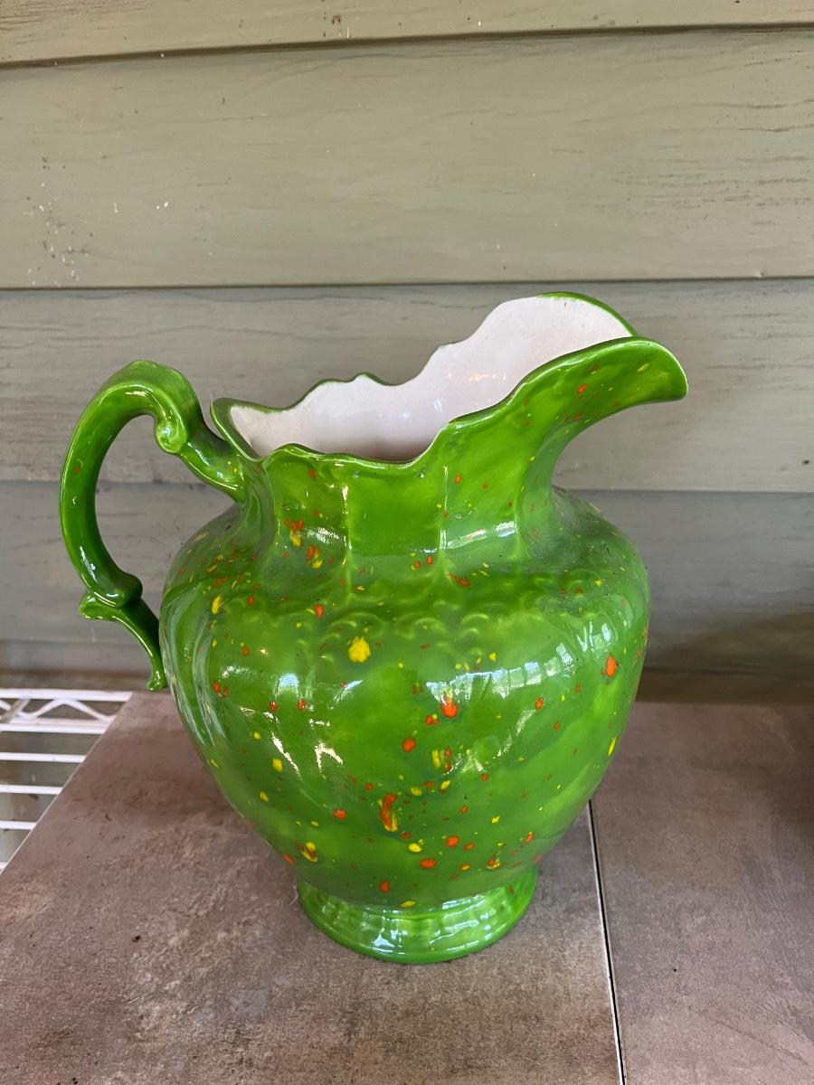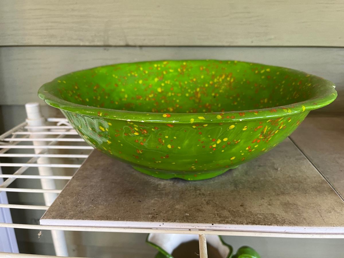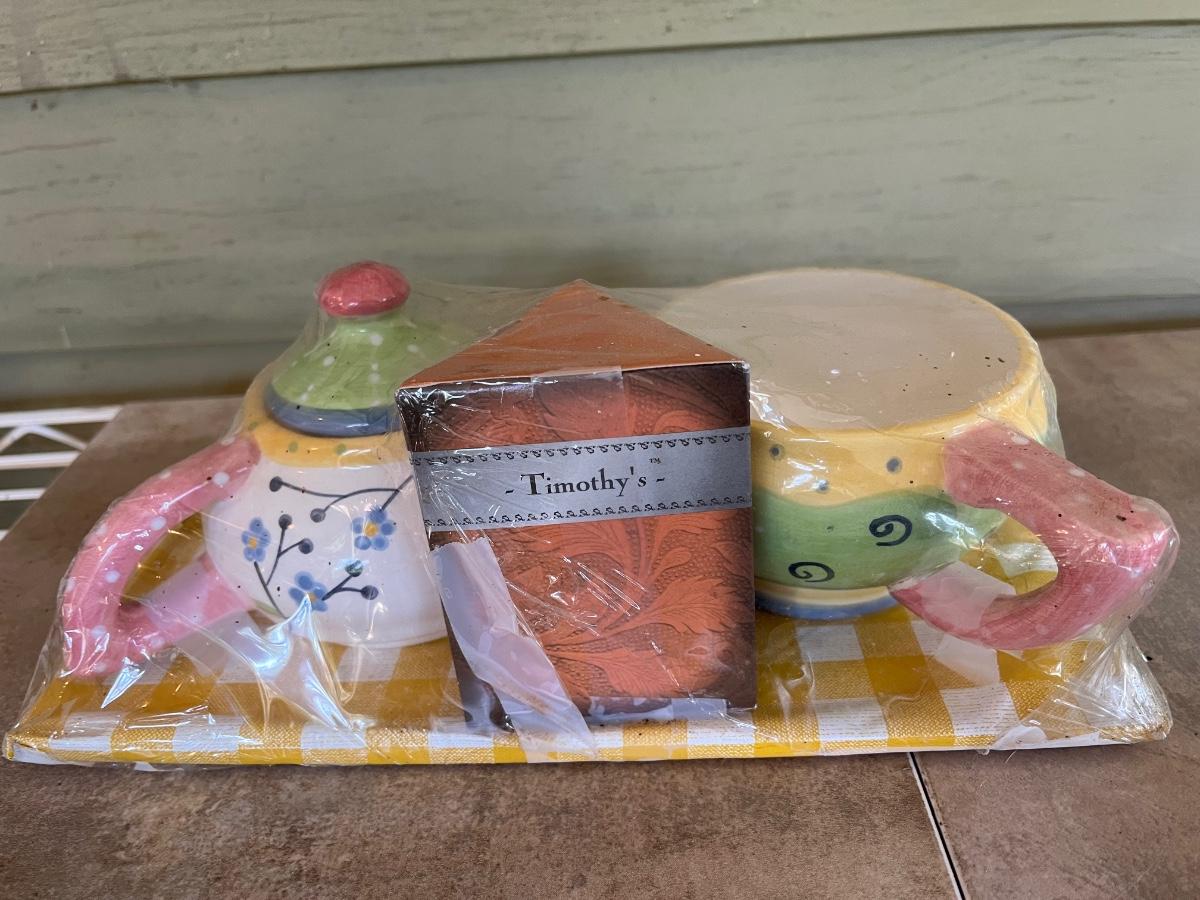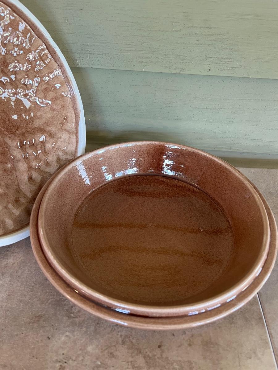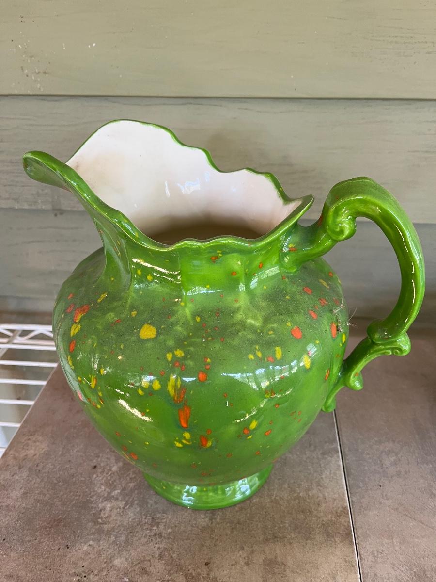 LOT 216P: Ceramic Pieces - Large Basin and Pitcher, Covered Pie Dish, Basket, Sealed Tea Set