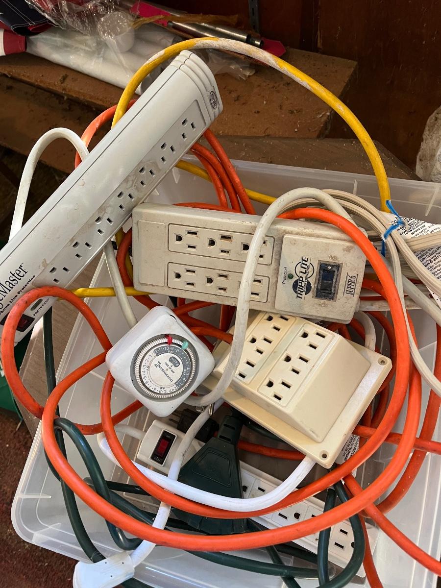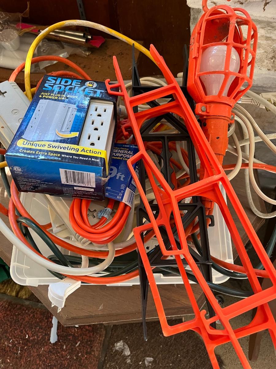 LOT 224P: Electrical Extension Cords, Power Strips, Shop Light