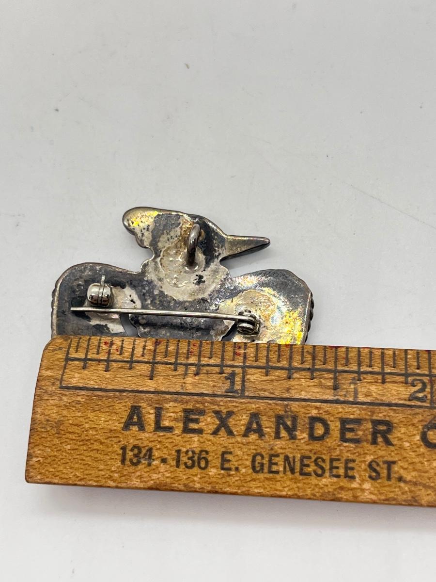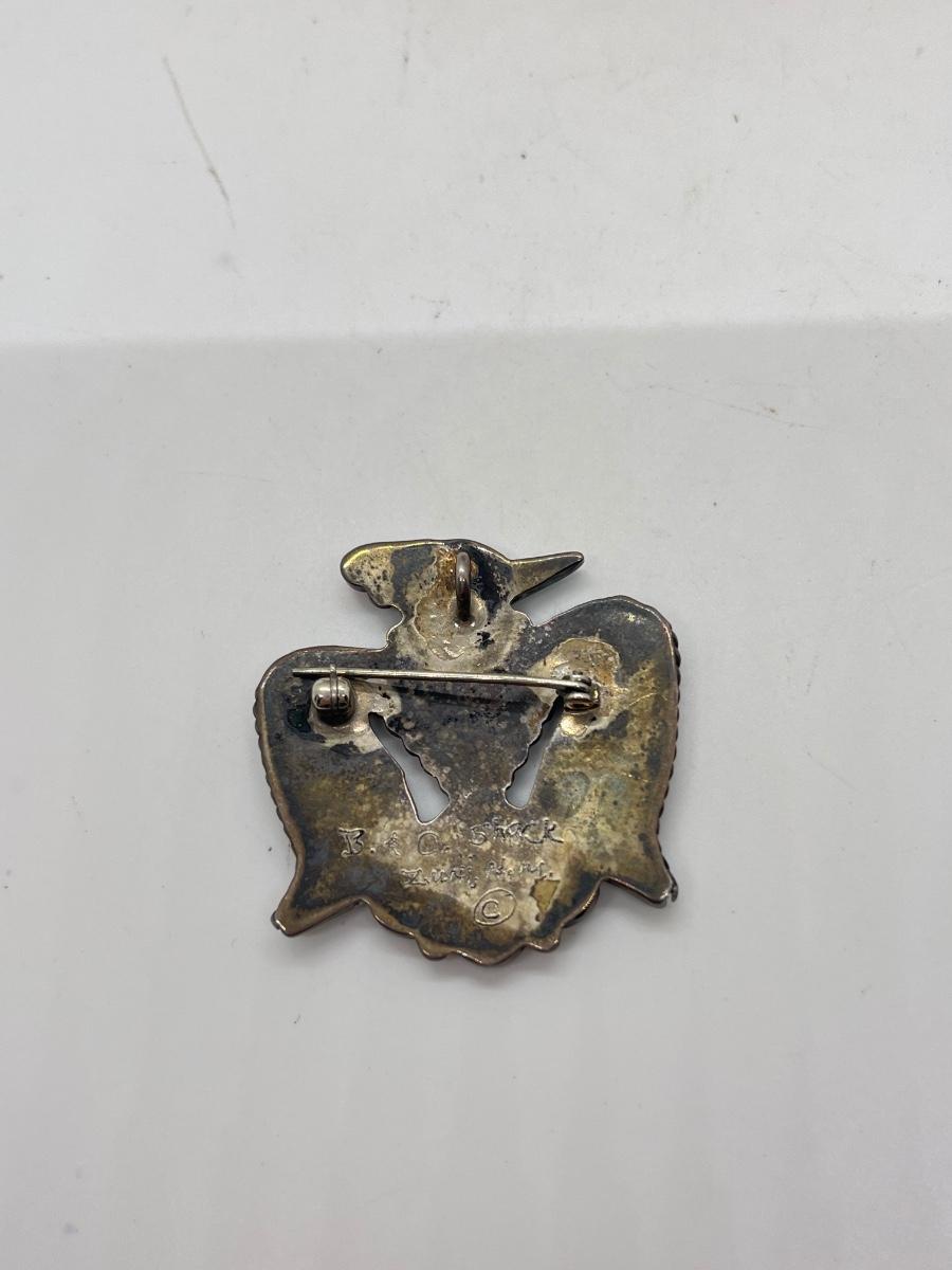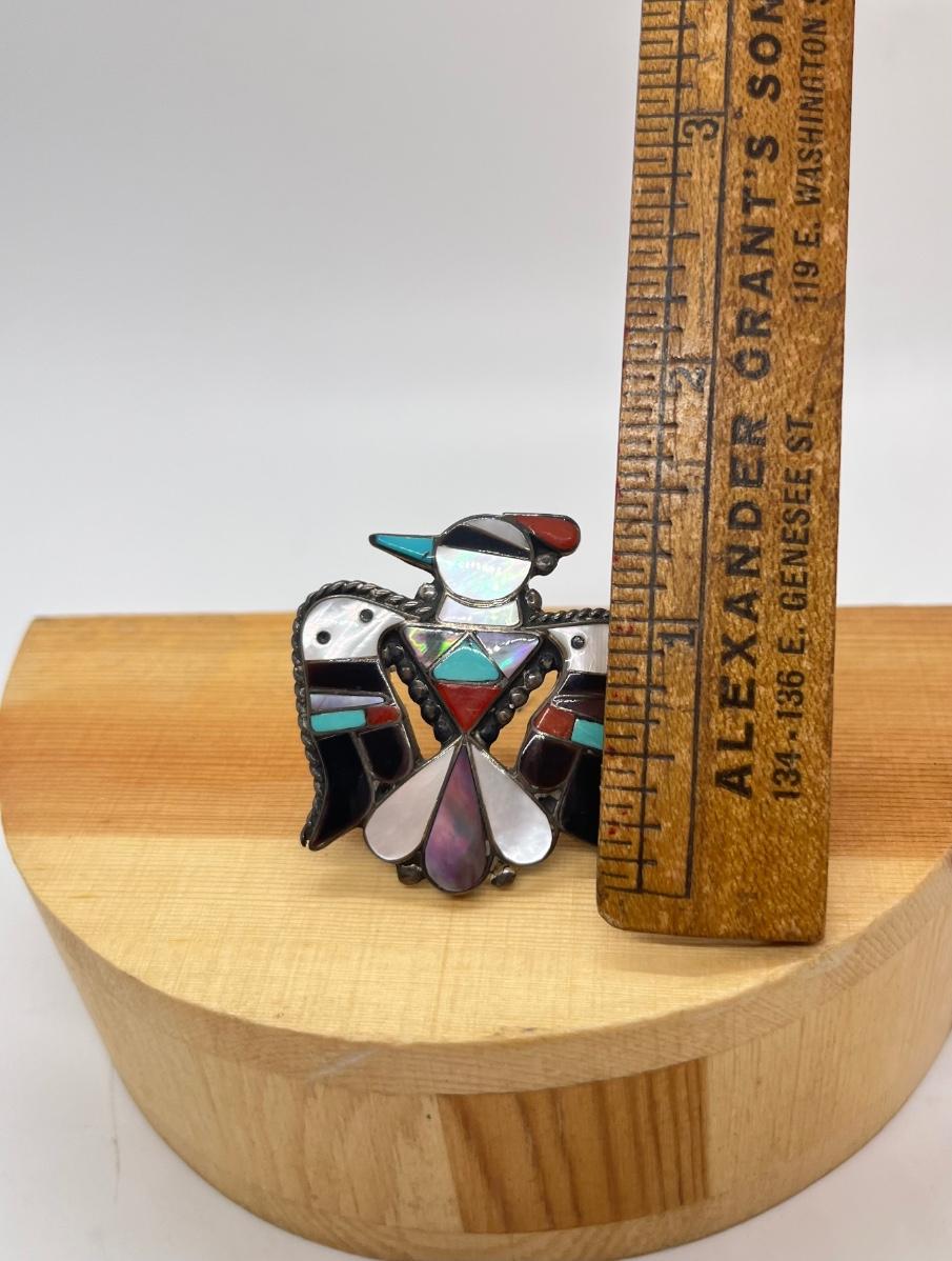 LOT 235J: Bobby and Corraine Shack Zuni Native American Thunderbird Brooch - Silver Inlay