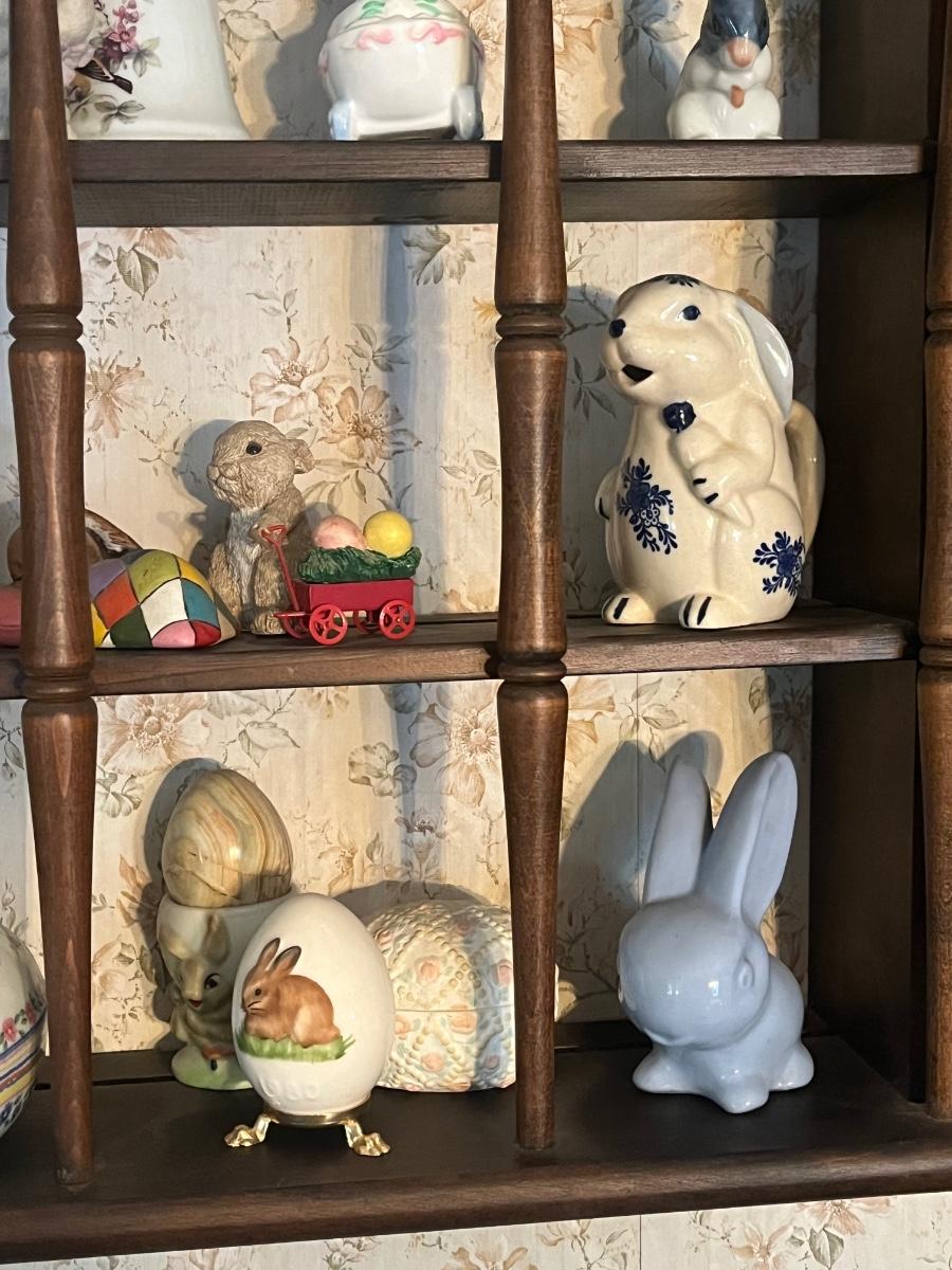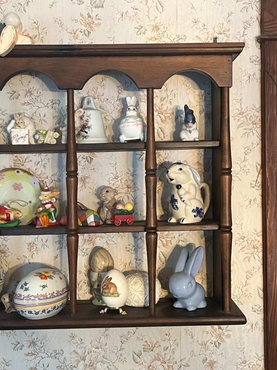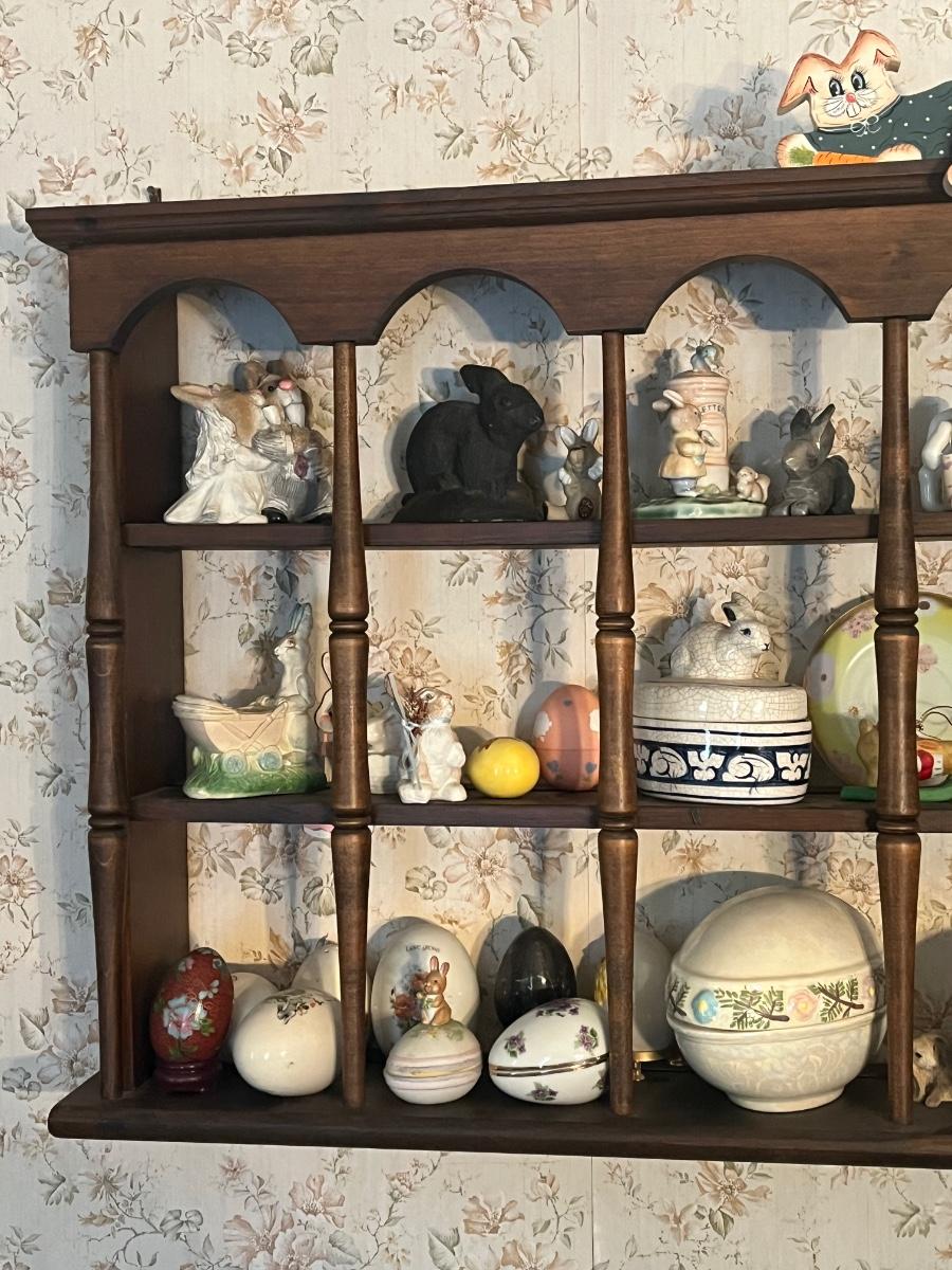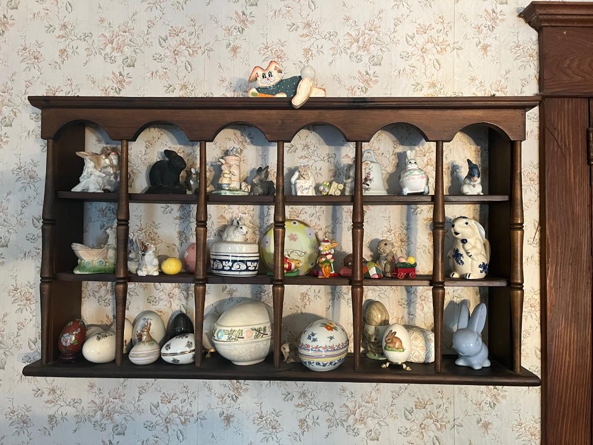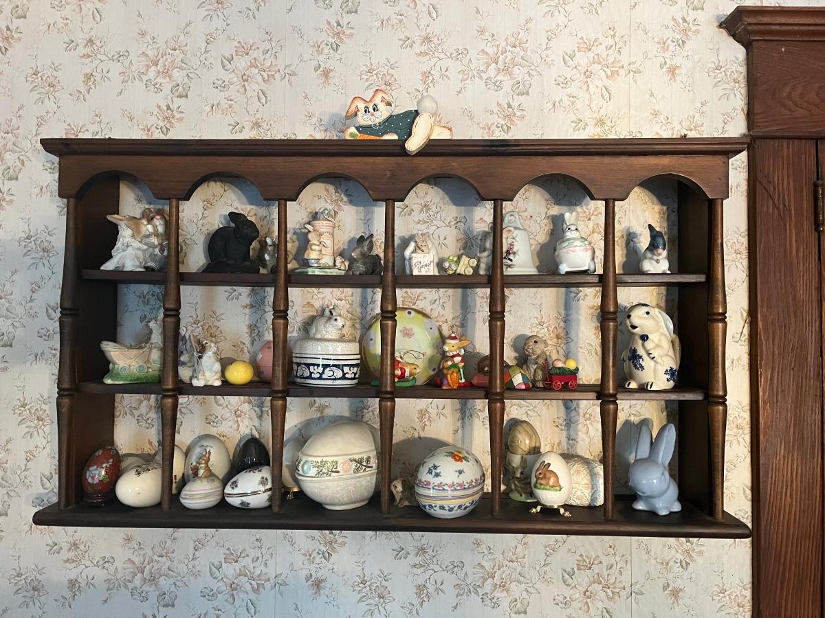 LOT 262D: Bunny Rabbit and Easter Egg Figurines on Decorative Wall Shelf