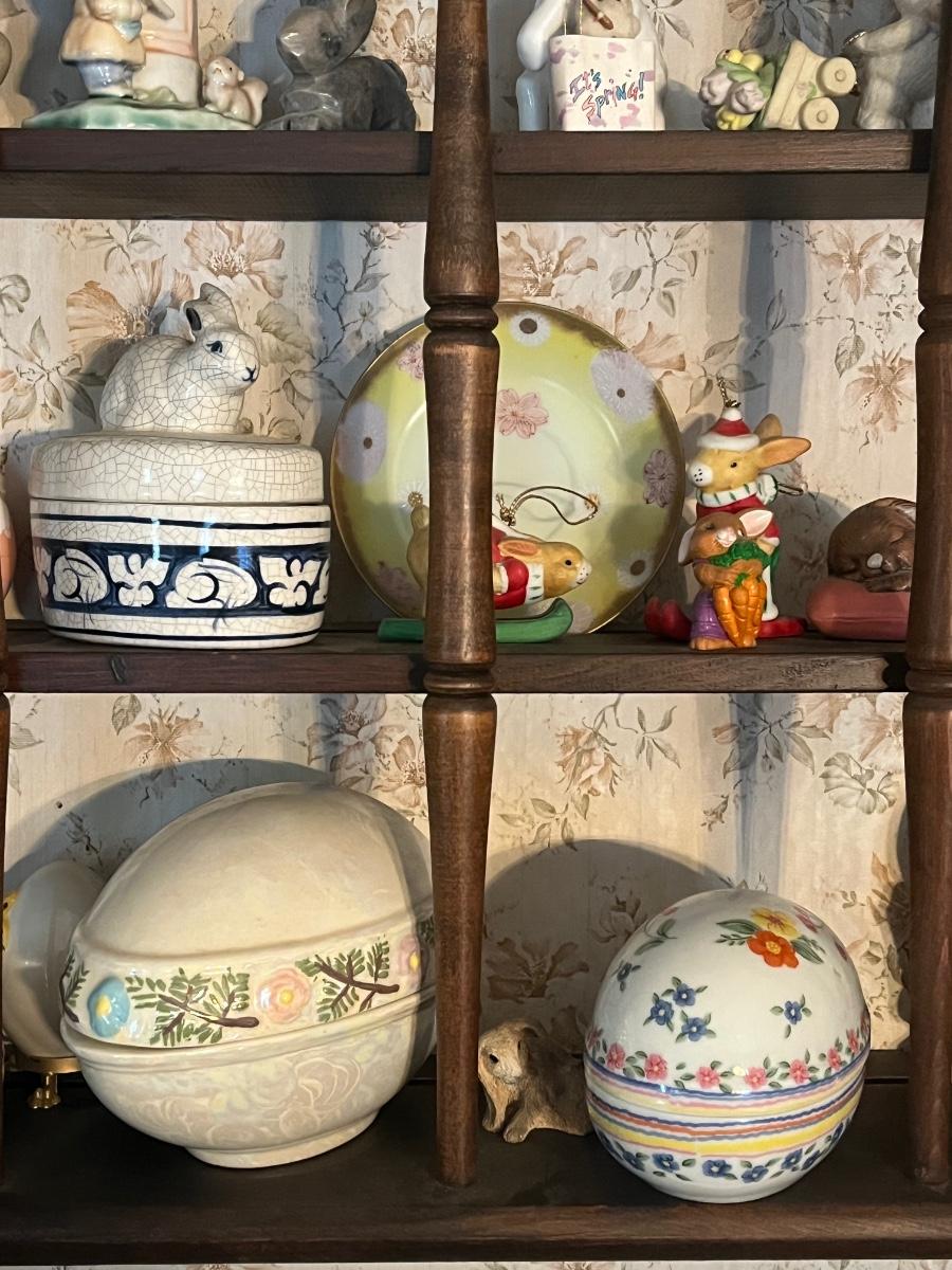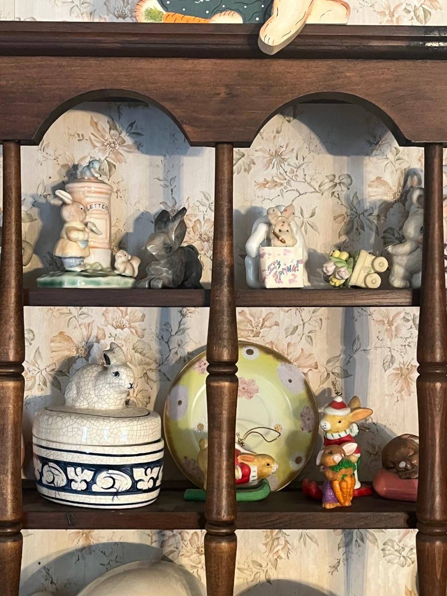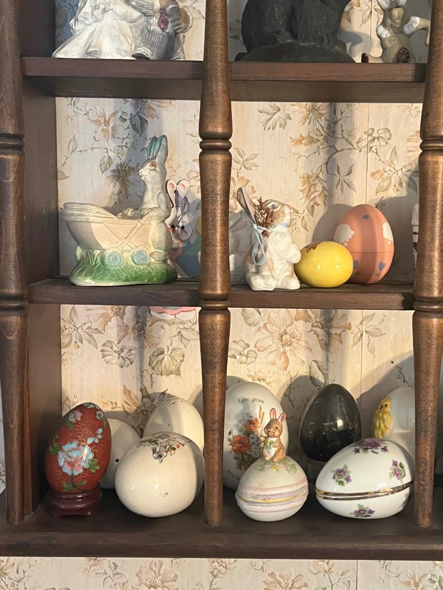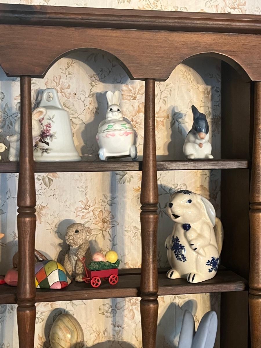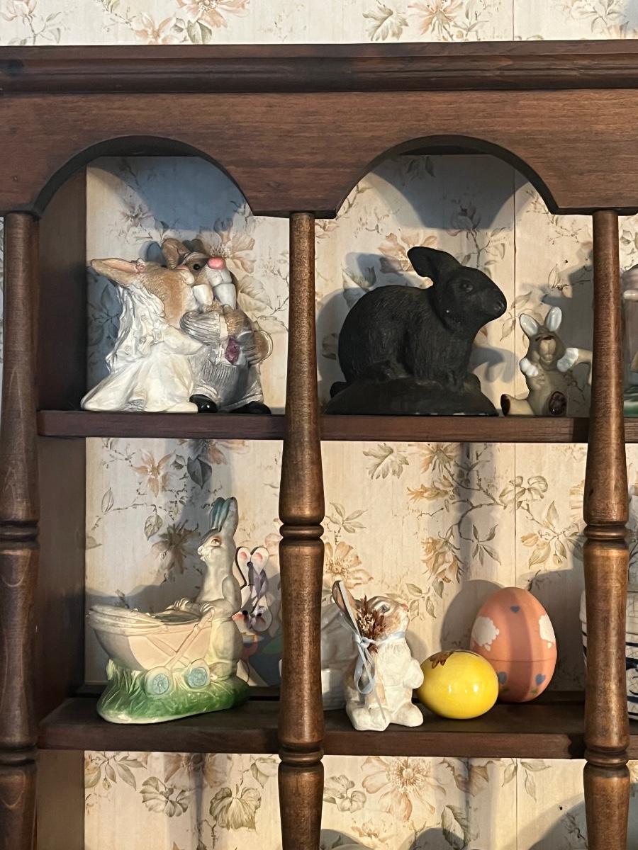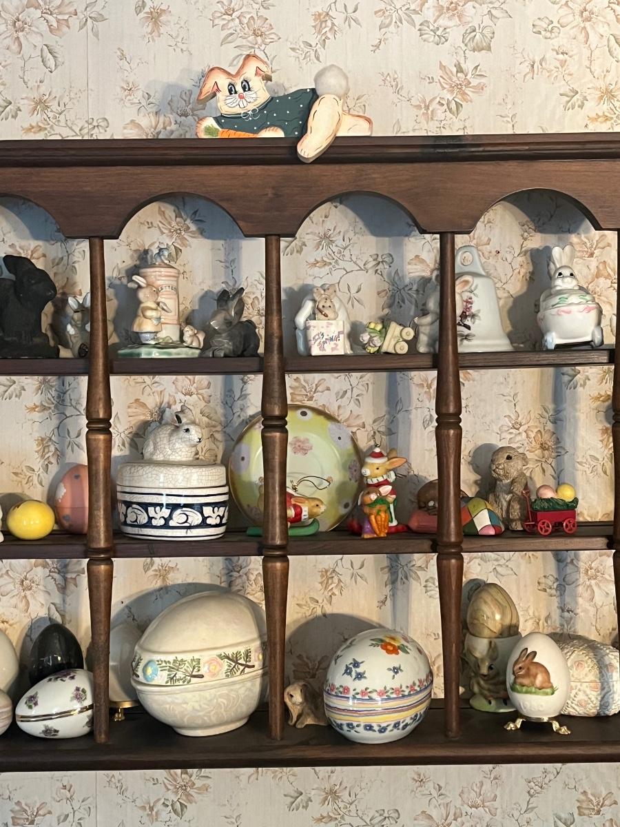 LOT 262D: Bunny Rabbit and Easter Egg Figurines on Decorative Wall Shelf