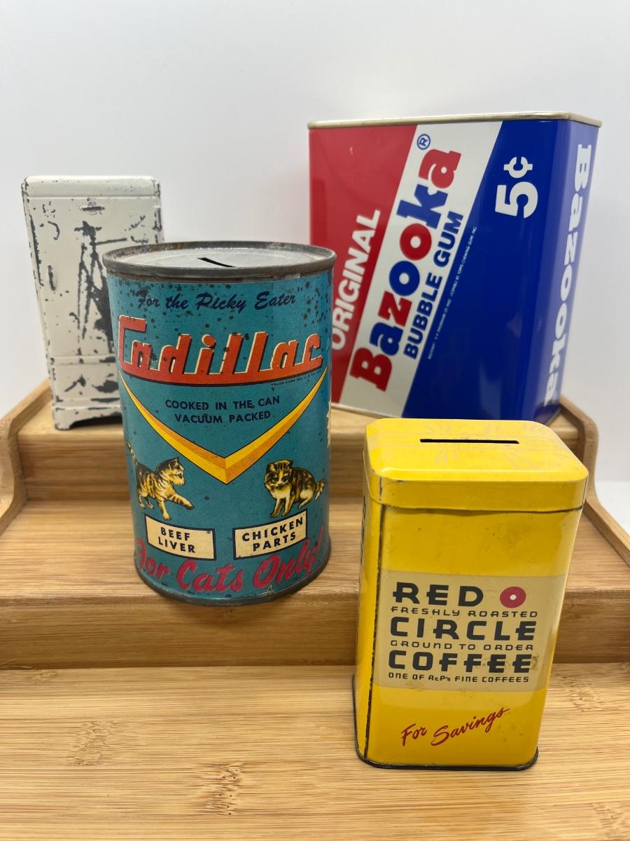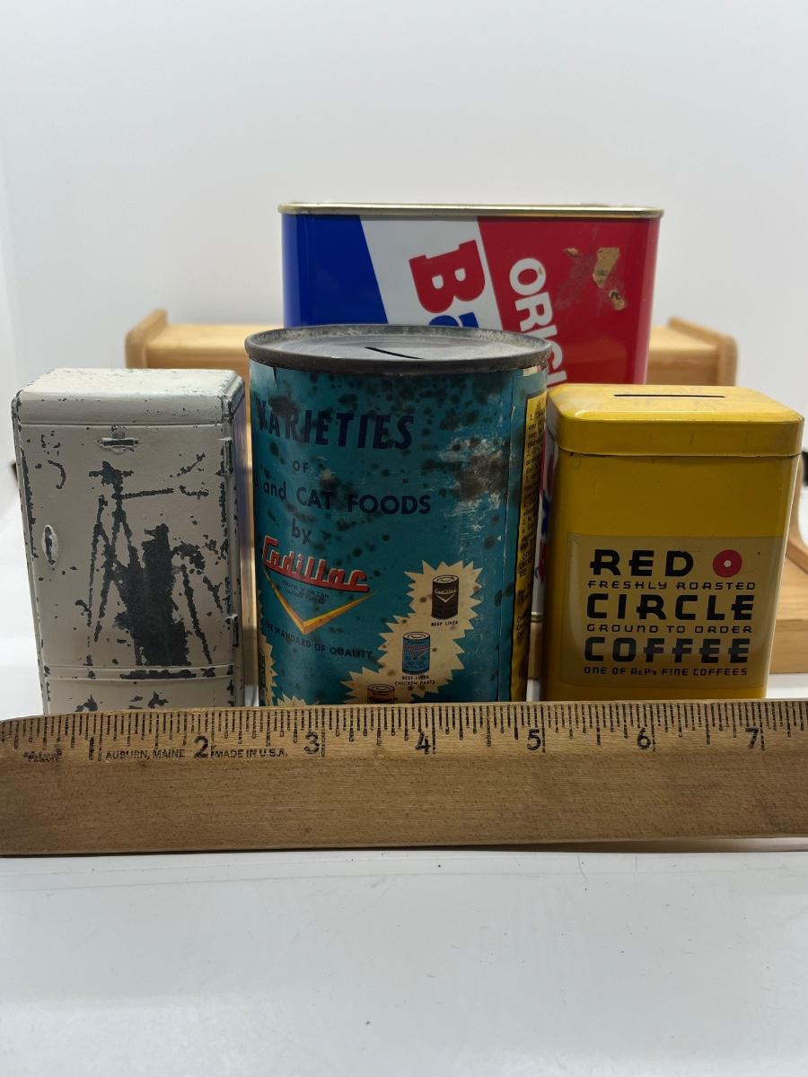 LOT 276T: Advertising Vintage Banks - Frigidaire, Bazooka, Cadillac Cat Food, Red Circle Coffee