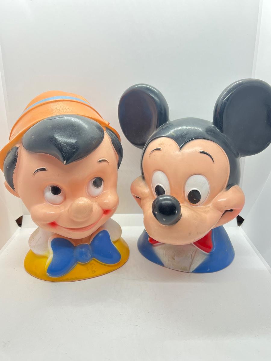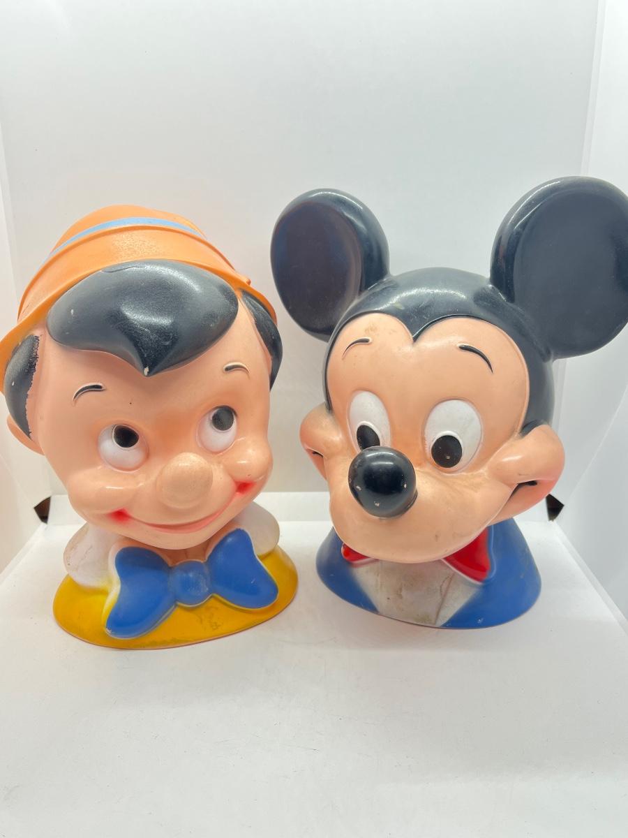 LOT 280T: Vintage 1971 Walt Disney Vinyl Piggy Banks - Mickey Mouse & Pinocchio
