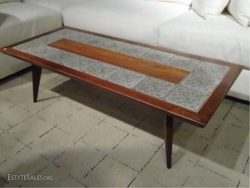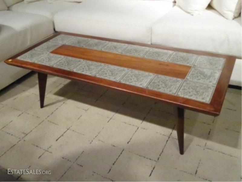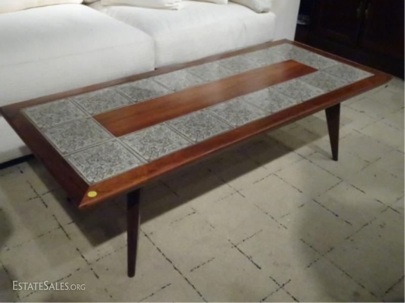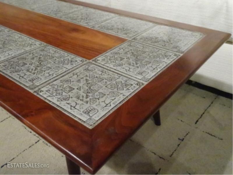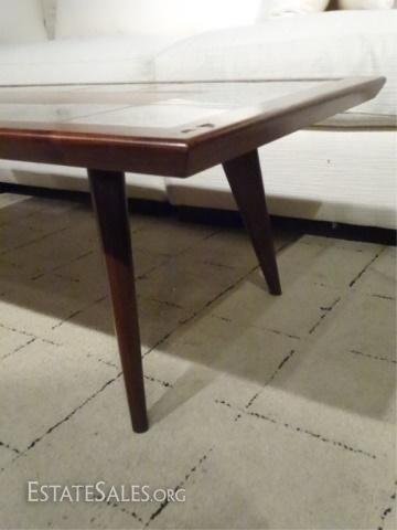 LOT 92C: MID CENTURY DANISH MODERN COFFEE TABLE, INLAID TILE TOP, CIRCA 1960'S, VERY GOOD VINTAGE CONDITION, 52"W X 22"D X 15"H, SKU6023.02 H28