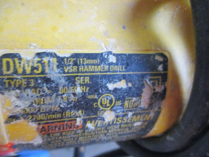Lot 93 - DeWalt DW511 Corded 1/2" (13mm) Variable Speed Hammer Drill
