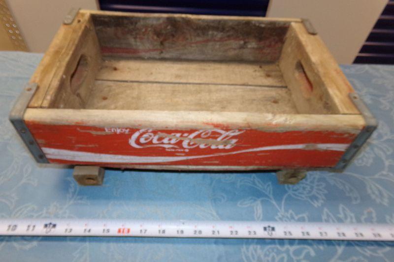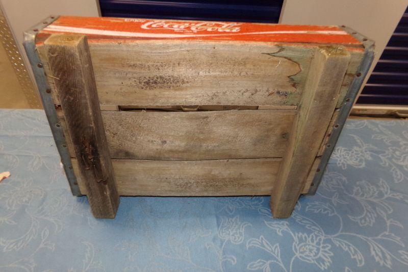 THICK WOODEN COCA COLA CRATE HAS SOME LOSS OF PAINT AND THE WOOD IS CHIPPED IN PLACES