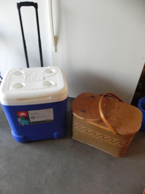 LOT 93 PICNIC BASKET & IGLOO COOLER