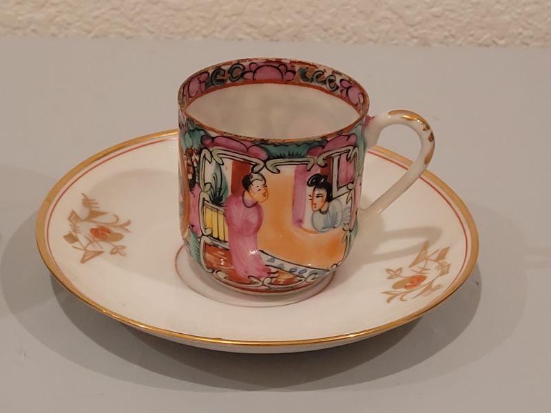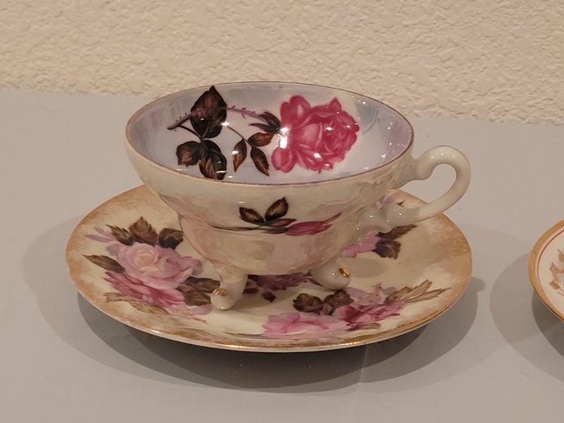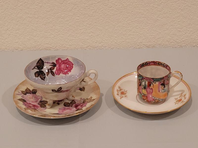 Lot 93: Mixed Matched Rose Teacup and Saucer and Chinese Handpainted Teacup & Saucer (also possibly mix matched)