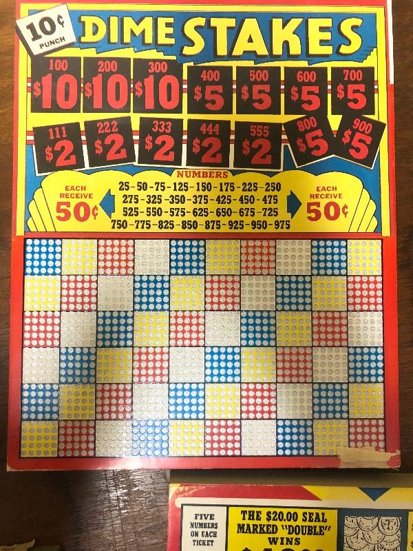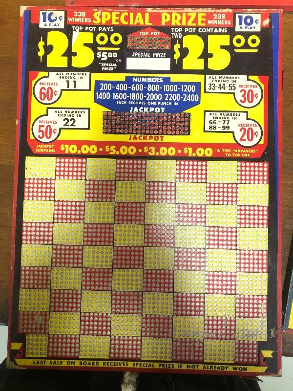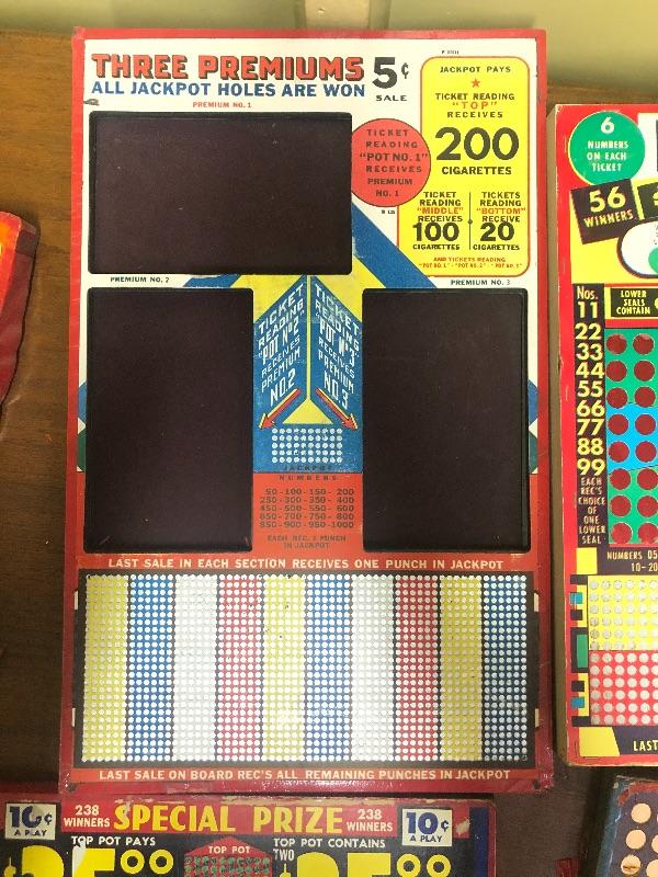 6 boards: three premiums, national winner, dime steaks, special prize, seal happy, double double sawbuck. : Vintage used condition