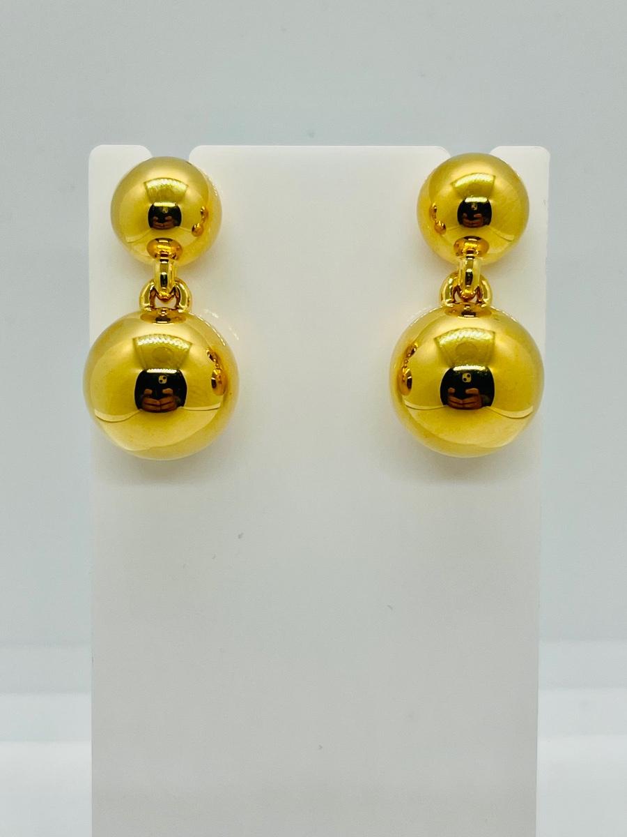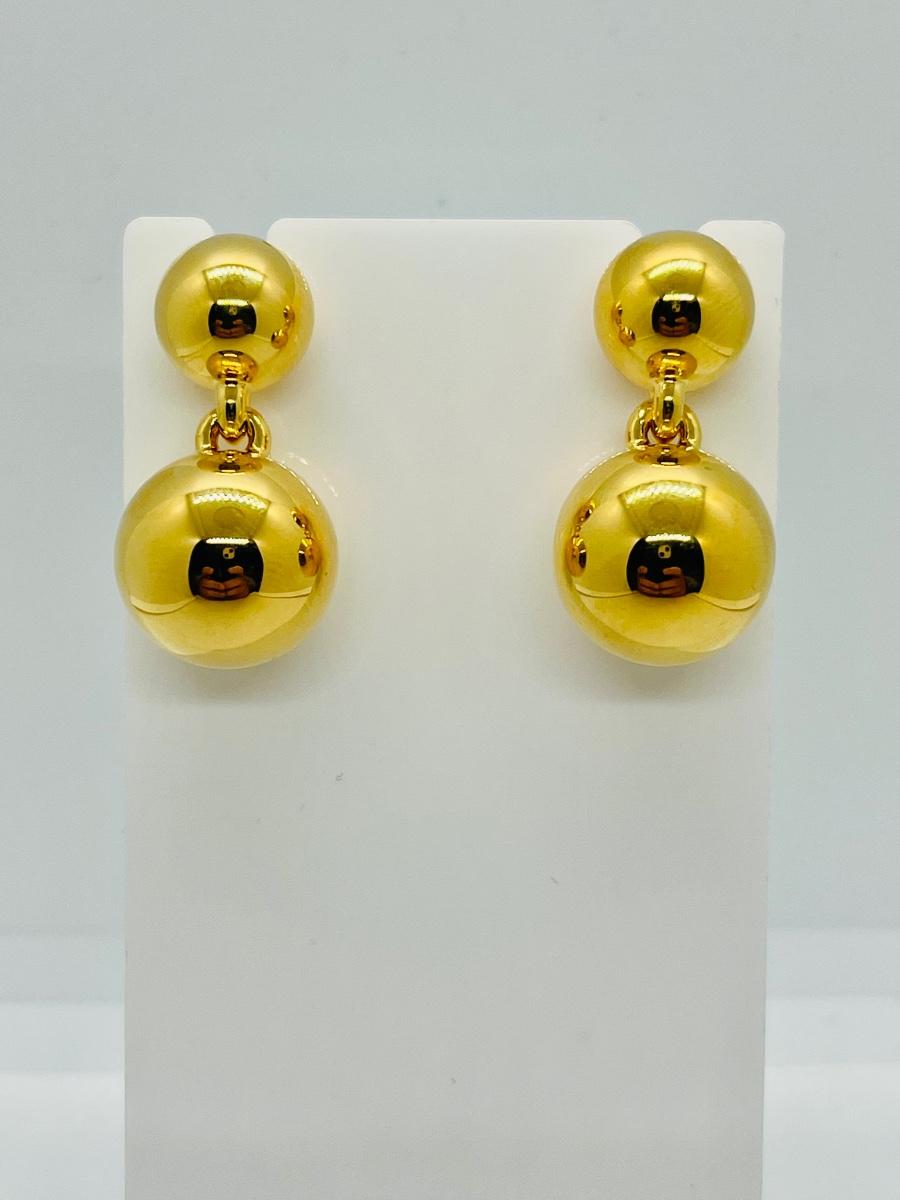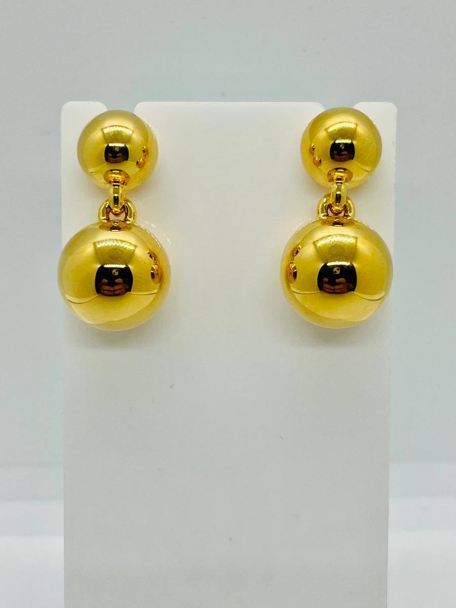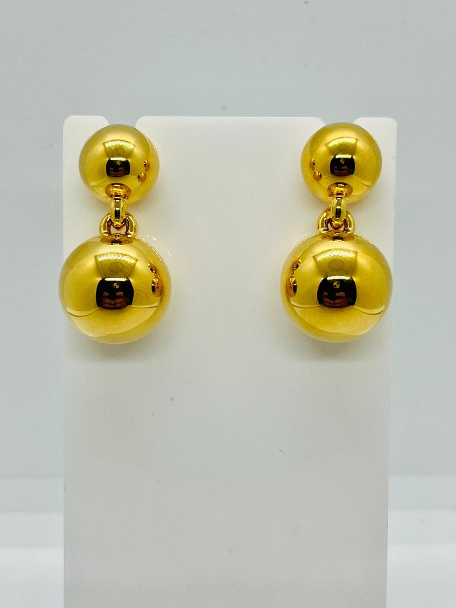 Lot 93: 14k Milor Italy yellow Gold double ball dangle earrings