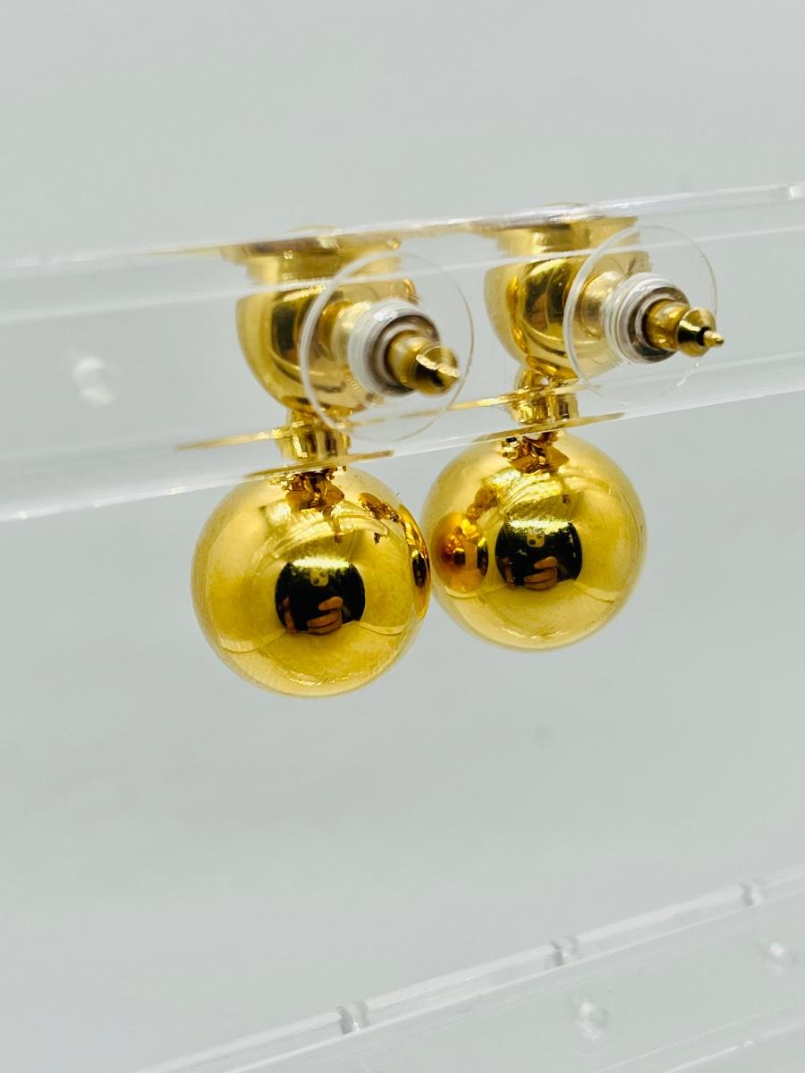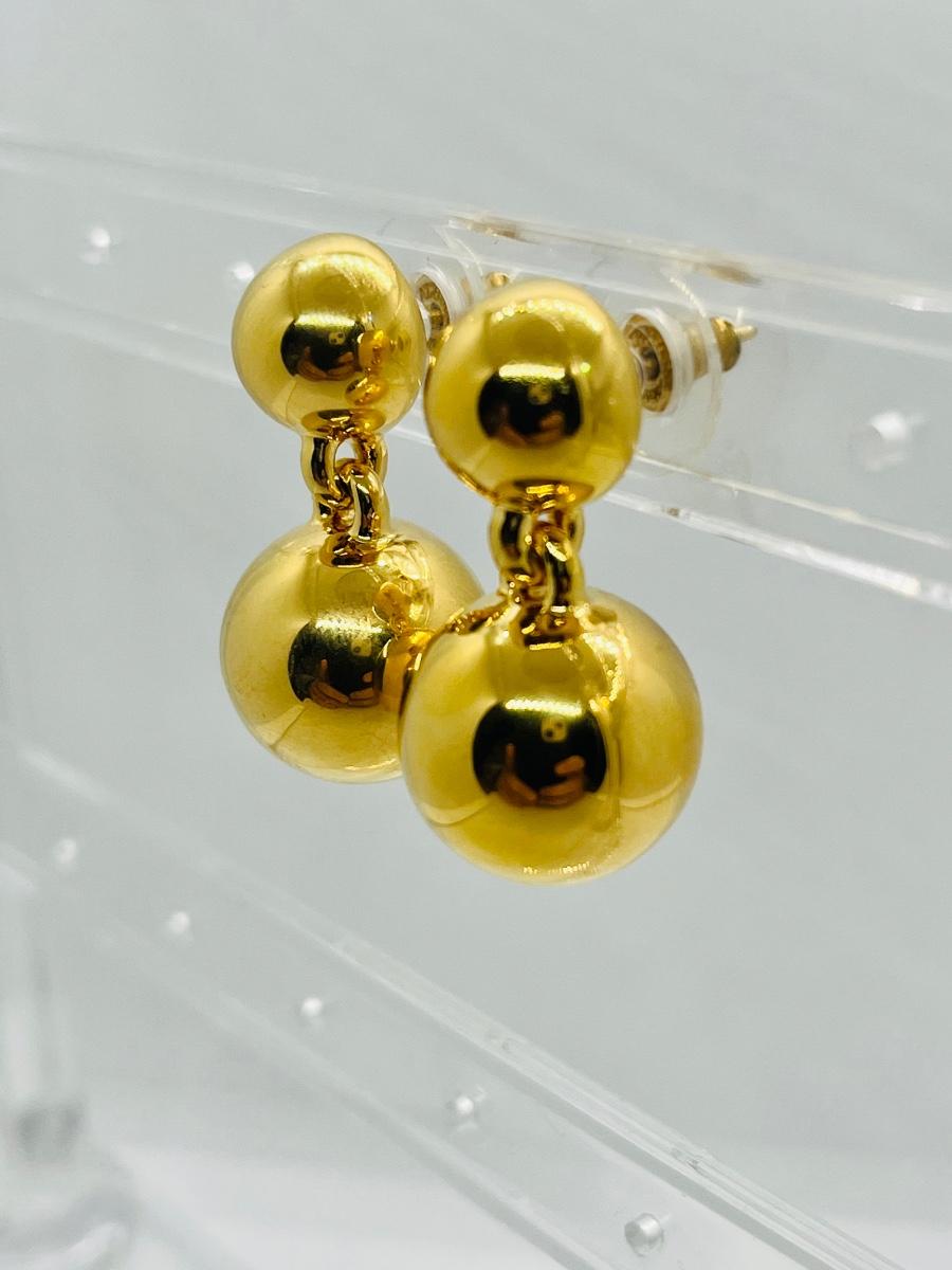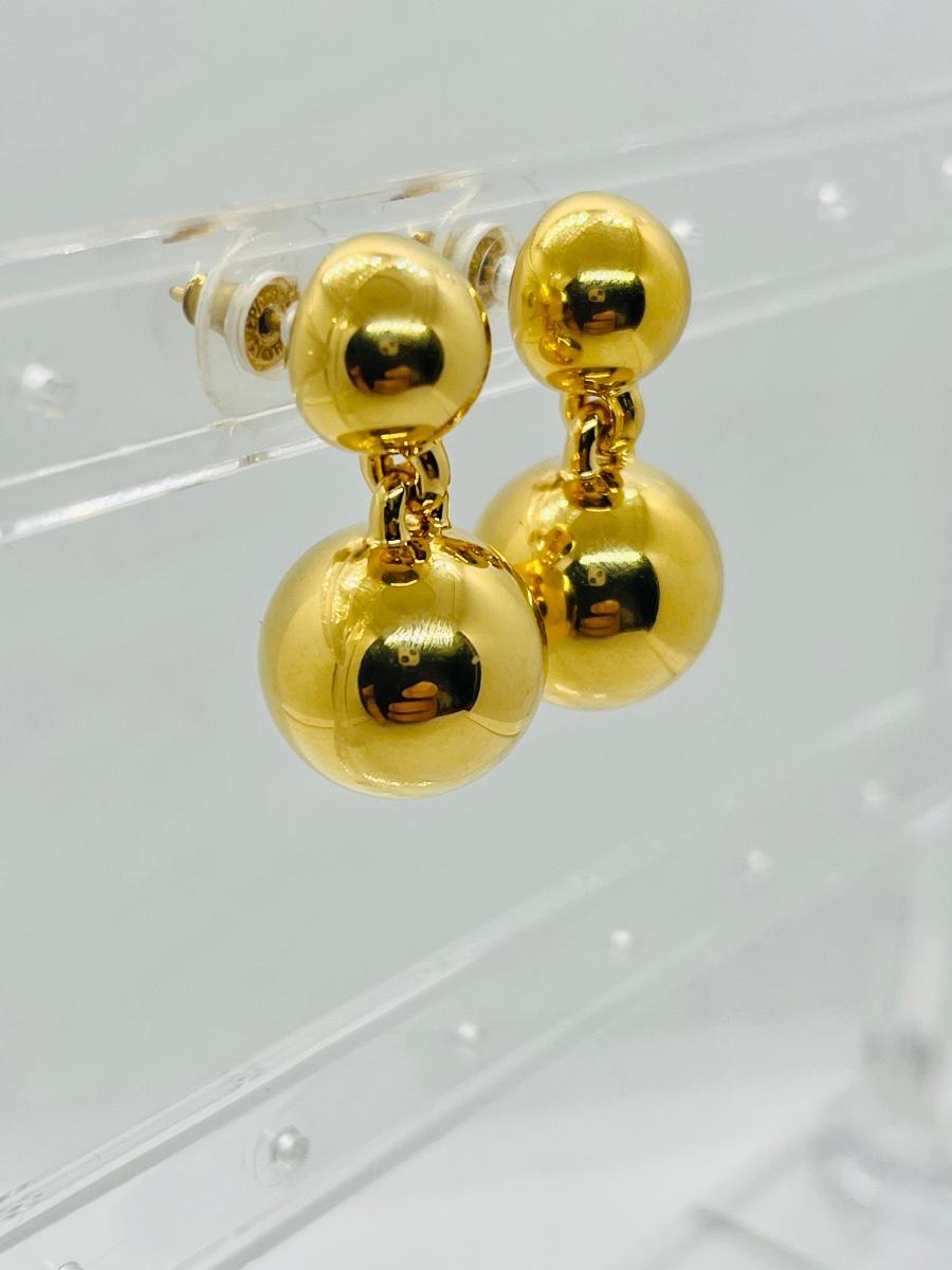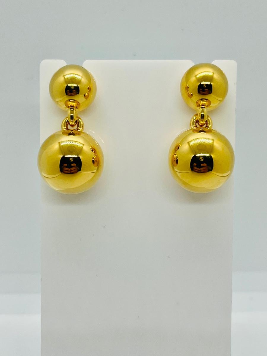 Lot 93: 14k Milor Italy yellow Gold double ball dangle earrings