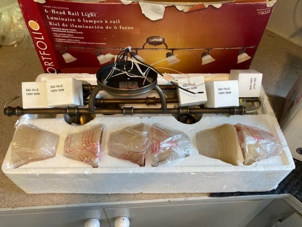 6 HEAD RAIL LIGHT, WALL SCONCE AND CAN LIGHT