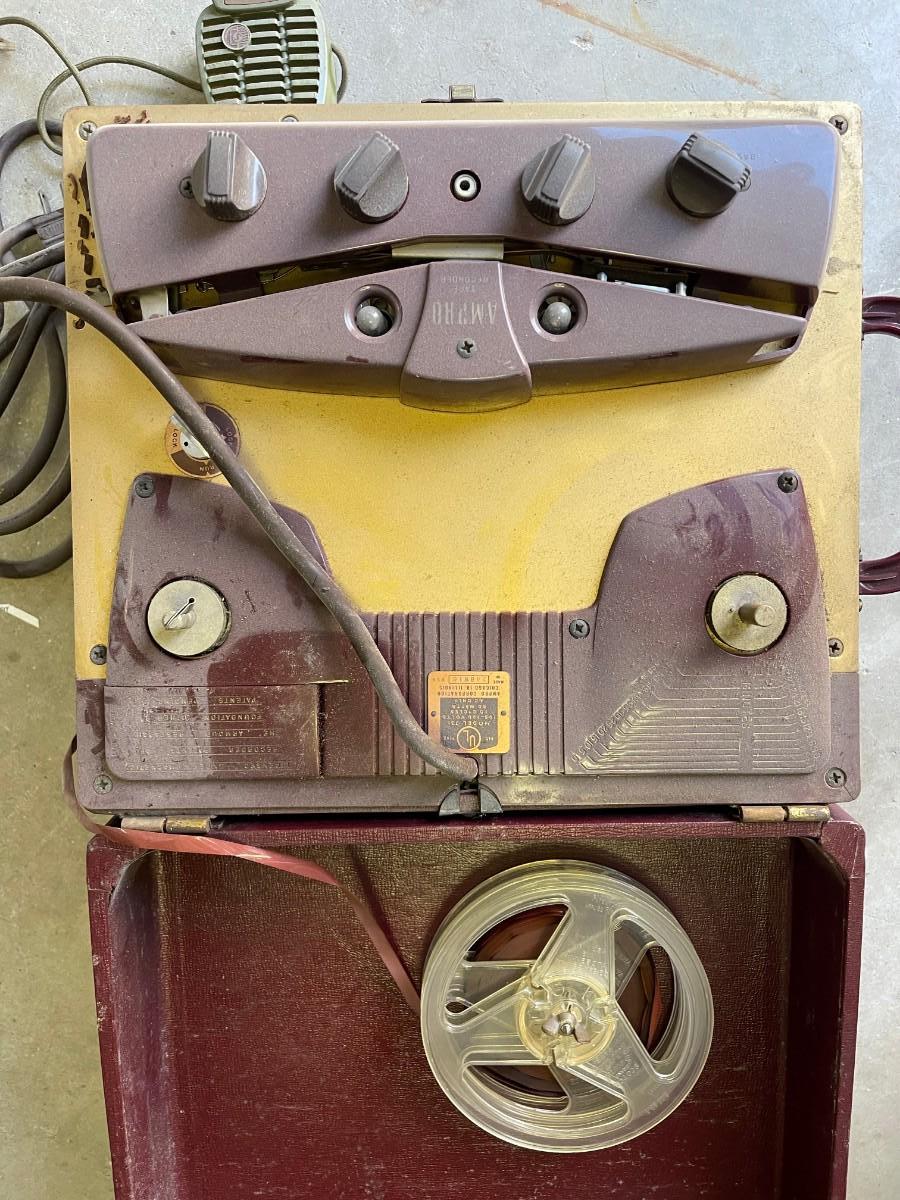 Ampora tape recording in original case, complete with dust but wait look at the green microphone ! It's an original Shure microphone Harp, that alone is worth $110-150!