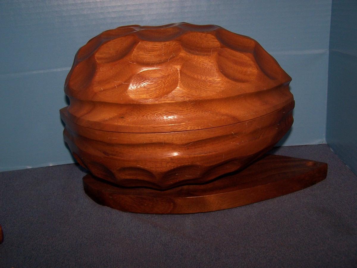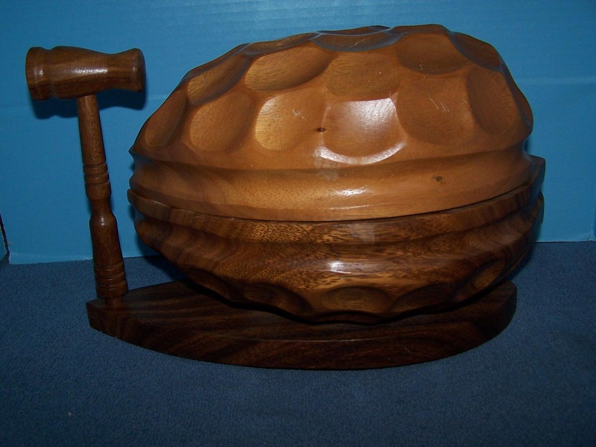 THIS IS A AMAZING VINTAGE MCM GIANT WALNUT NUT BOWL & MALLET!!! IT IS WOODEN! UNMARKED.. 13 3/8'' LONG.. HAS SOME SCRATCHES/WEAR...