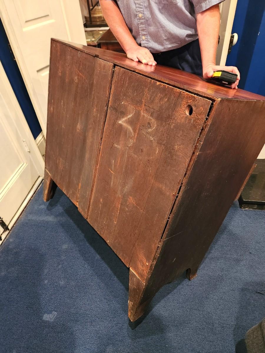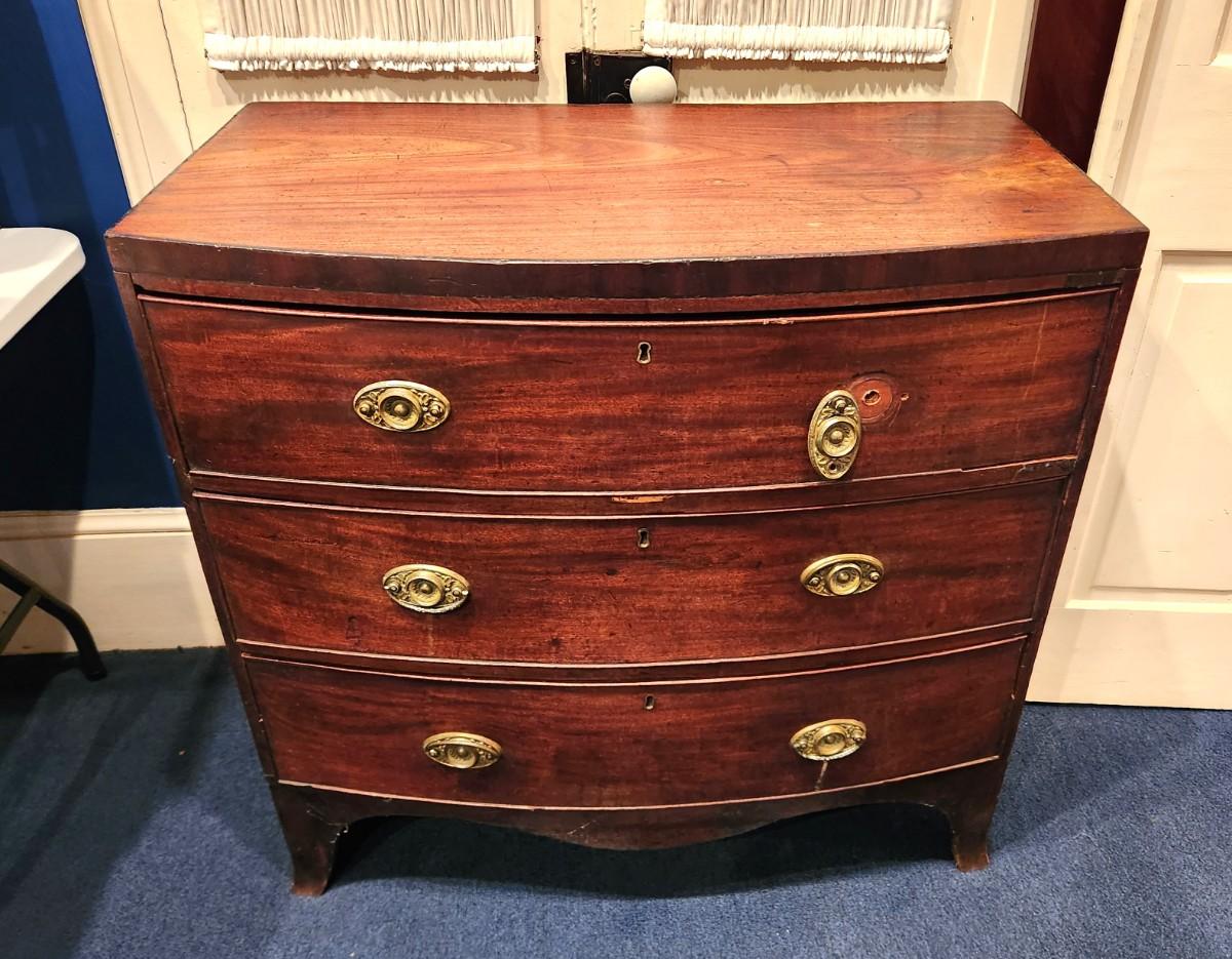 Antique 3 drawer dresser - a versatile piece of furniture, could also be used in a bathroom or living room. Original hardware (note one piece needs a screw). Smells a bit of moth balls. 35" tall, 36" across, 19.5" deep. Needs a bit of love.