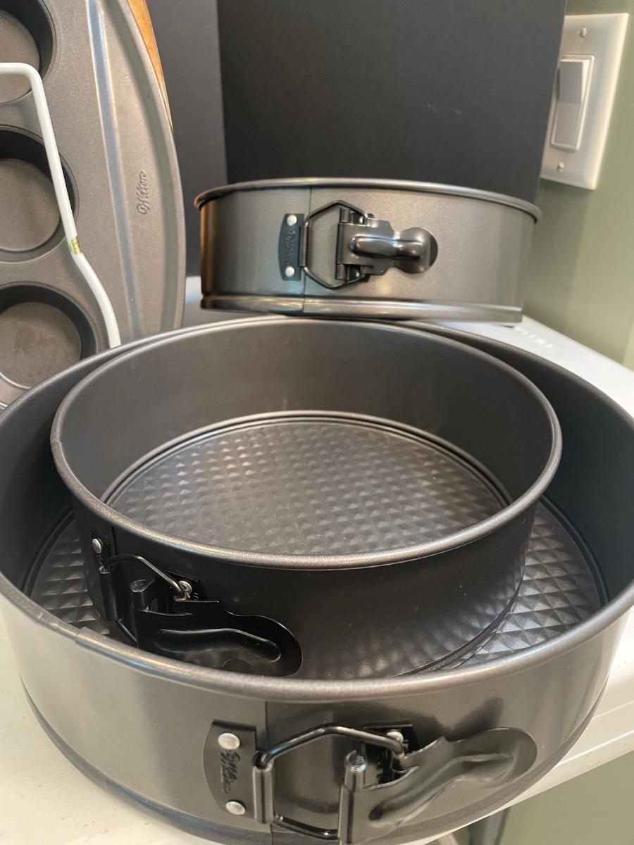 Includes 3 cookie sheets, 1 12 muffin pan, 1 bundt cake pan, 3 springform cake pans in different sizes.