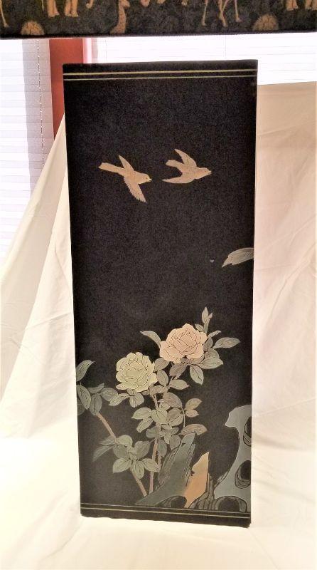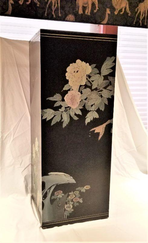 Resin/composite pedestal with Asian styling - different design all around. Measures about 36 1/4" tall x 14 1/4" across. Good used condition.