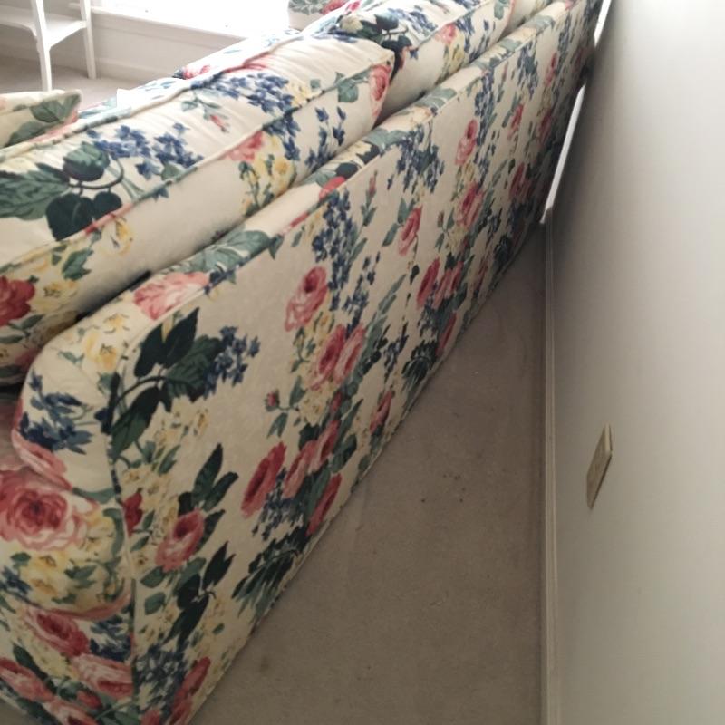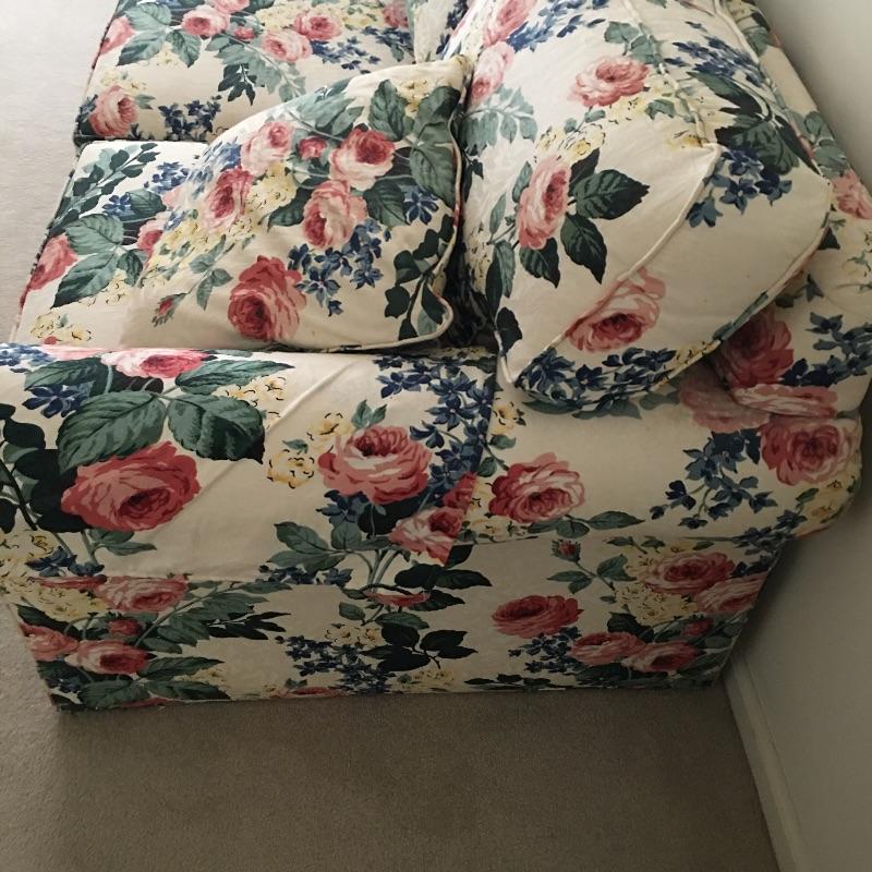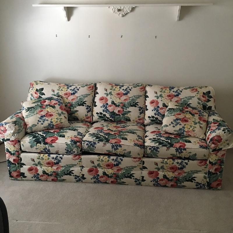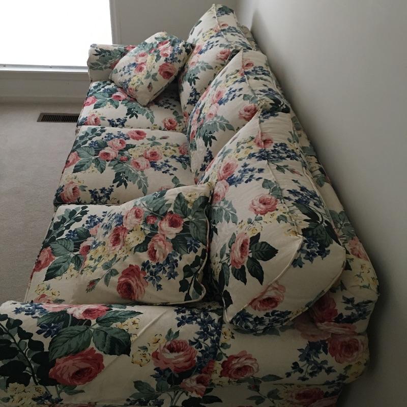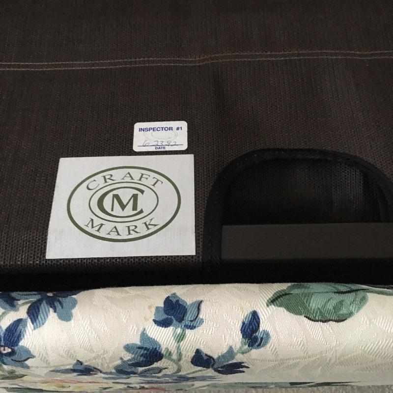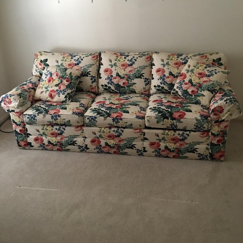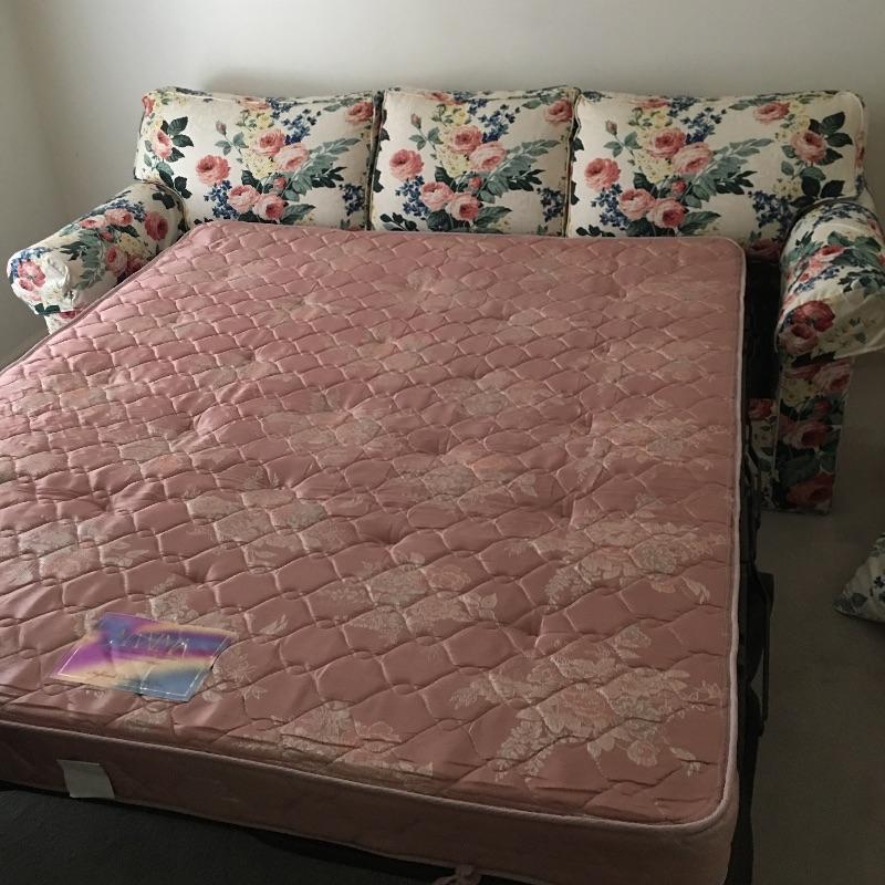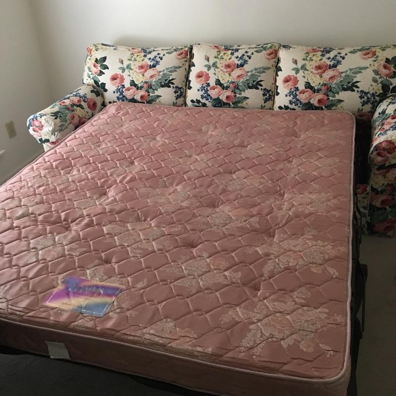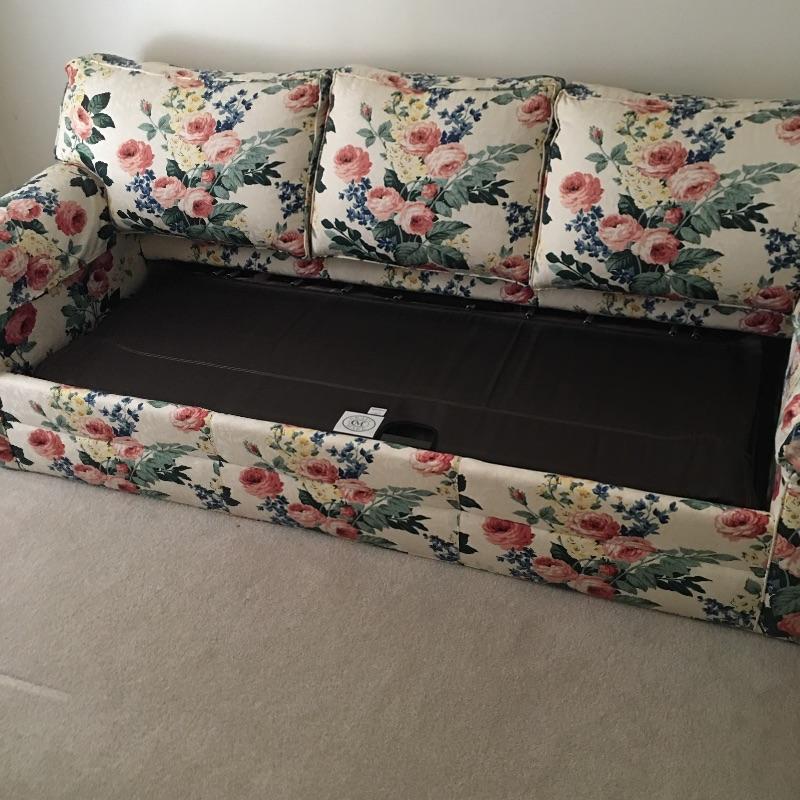 Craft Mark sleeper sofa with a floral pattern design. A great way to use a bedroom as an office and fold out the mattress when you need a bed. One arm cover has stain, see pictures.