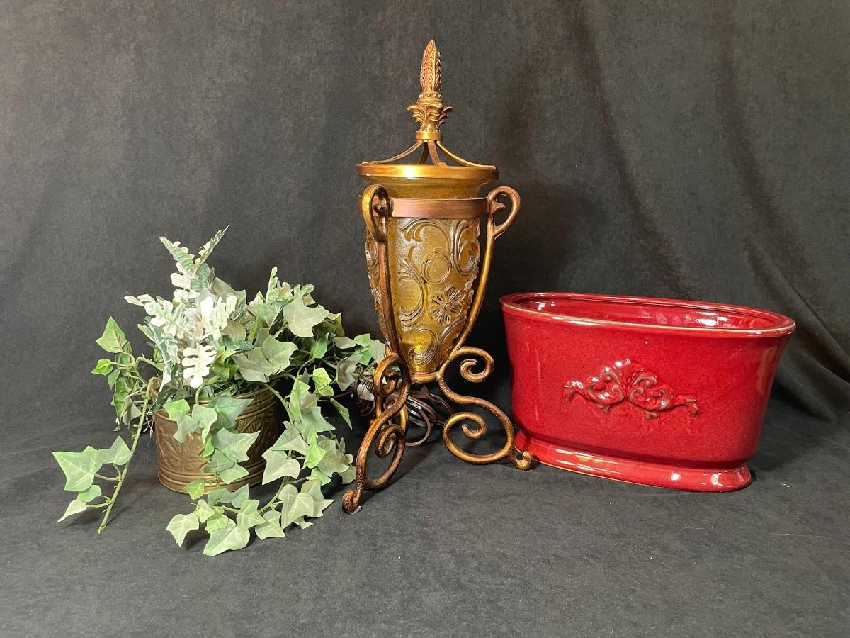 Lot 93  Decor Lot with Red Planter