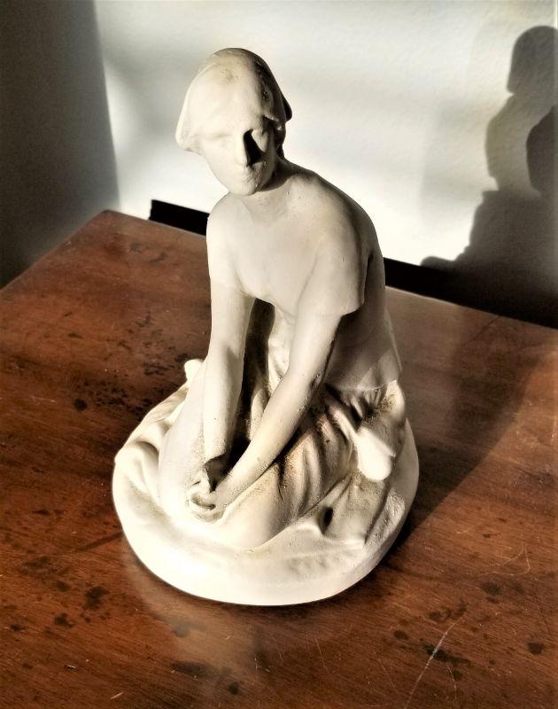 This is a Design Toscano-type repop of a famous statue of Joan of Arc, the Maid of Orleans, as she was awaiting trial. Felt bottom Measures about 4.5" tall. Heavy.