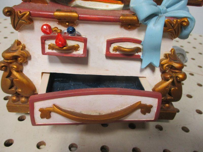 Music plays when drawer opens. Items were displayed in home and may need cleaning. Please review pictures for condition. For shipping please keep in mind that you will pay for the item first and then we will take the item to the local UPS store for shipping. Please bid accordingly.